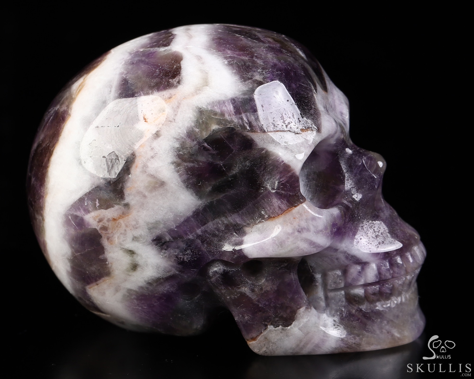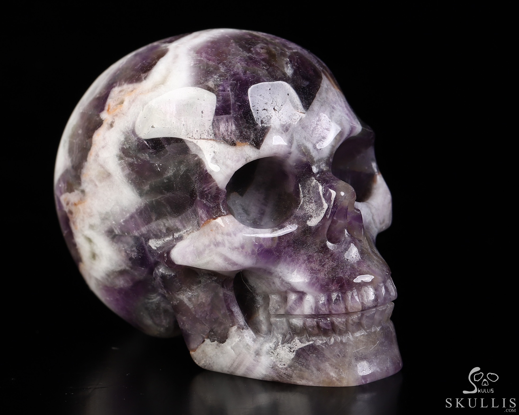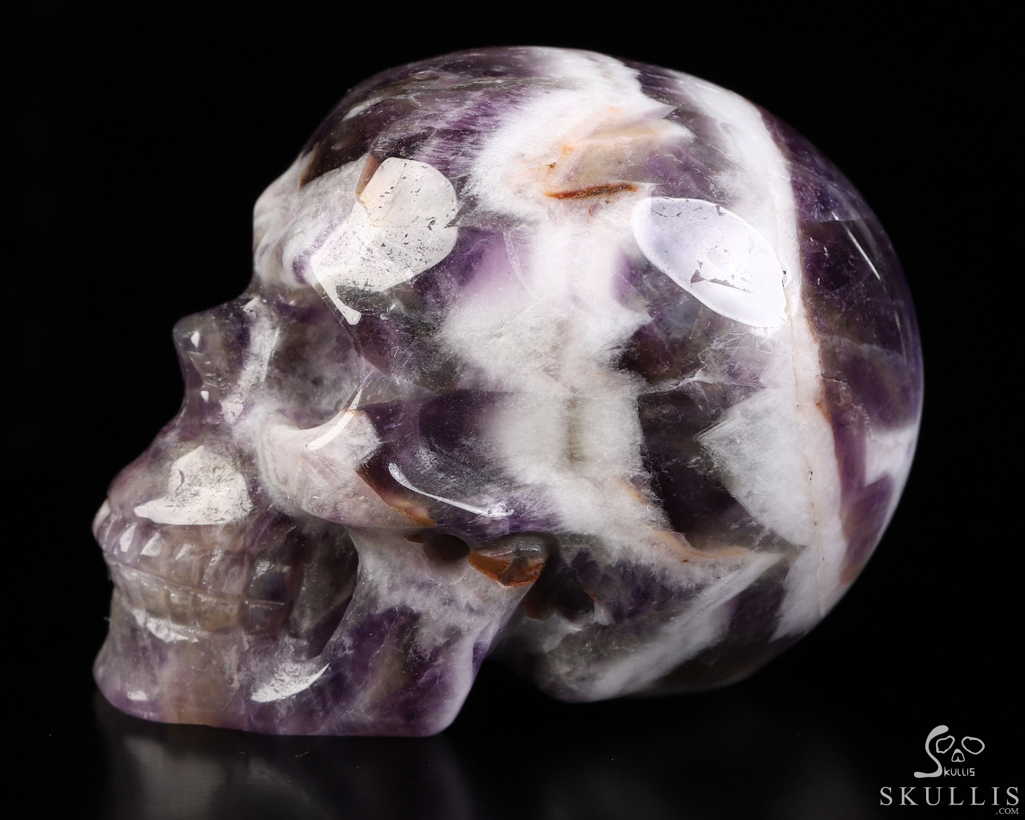 Lifesized 6.7" Dream Chevron Amethyst Hand Carved Crystal Skull, Super Realistic, Crystal Healing