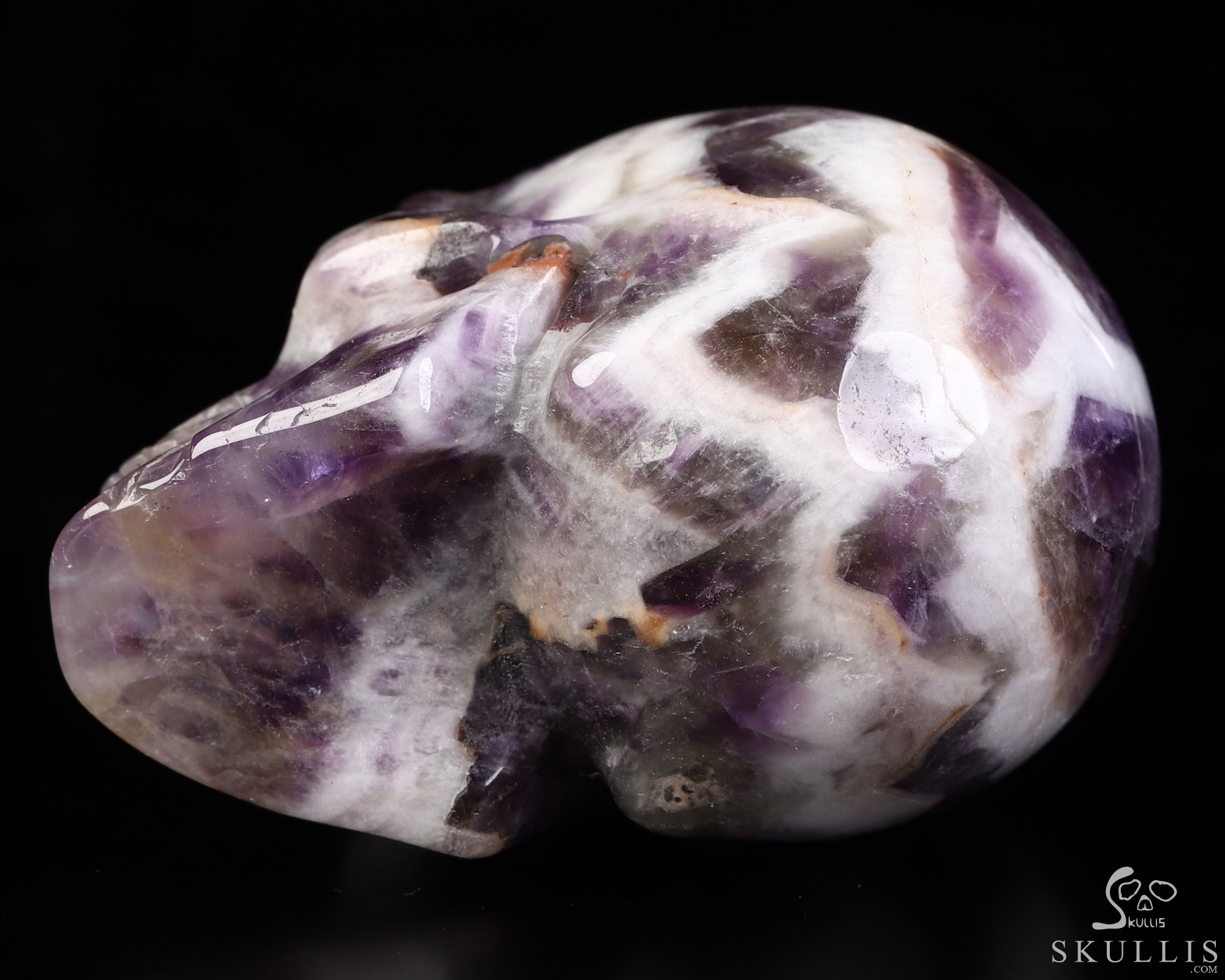 You are looking at a Dream Chevron Amethyst skull. The skull is 2 inches from front to back.