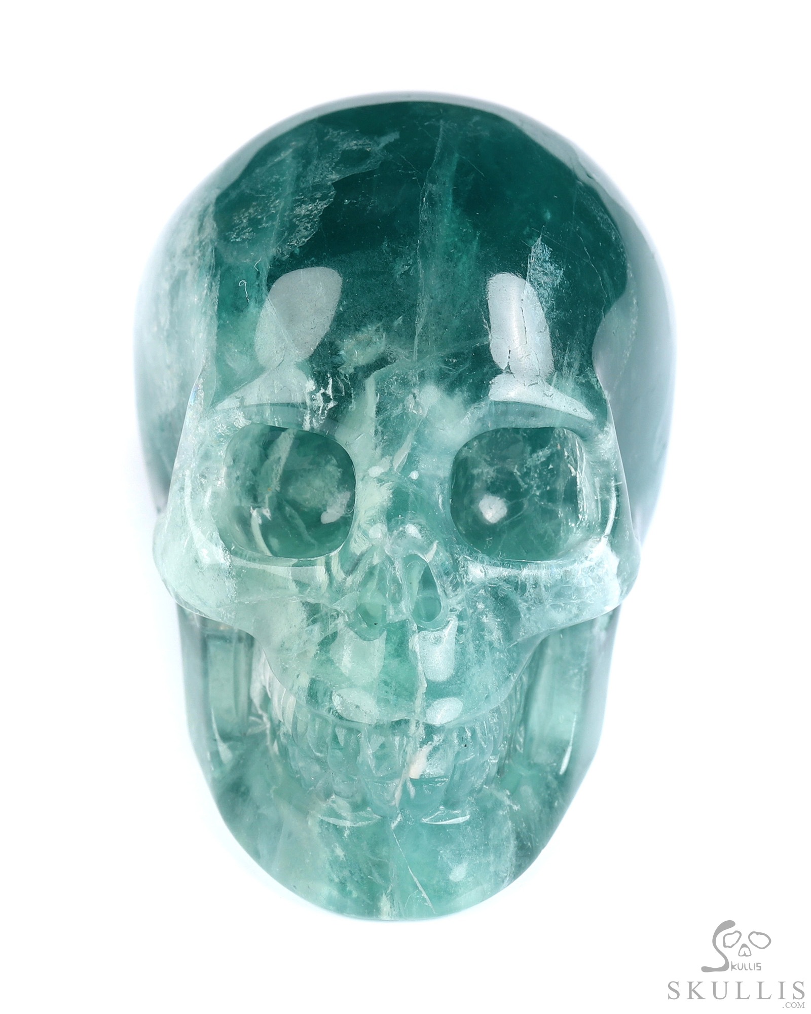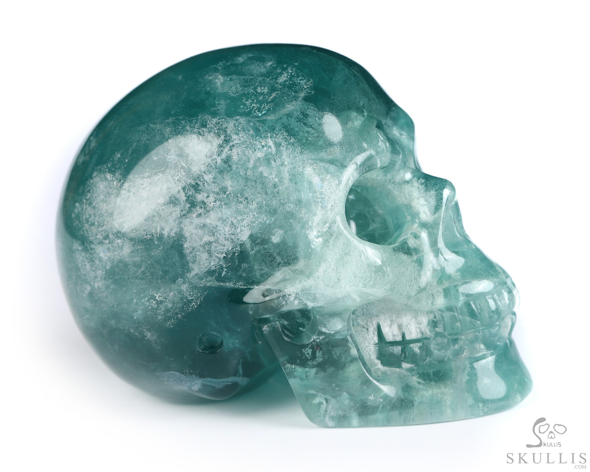 5.1" Fluorite Carved Crystal Headset Skull, Crystal Healing