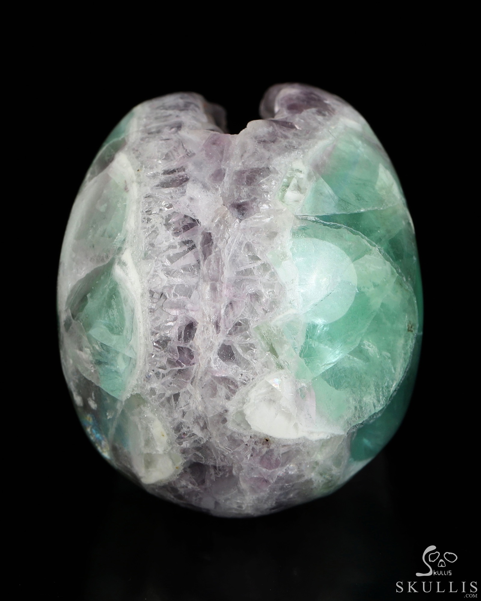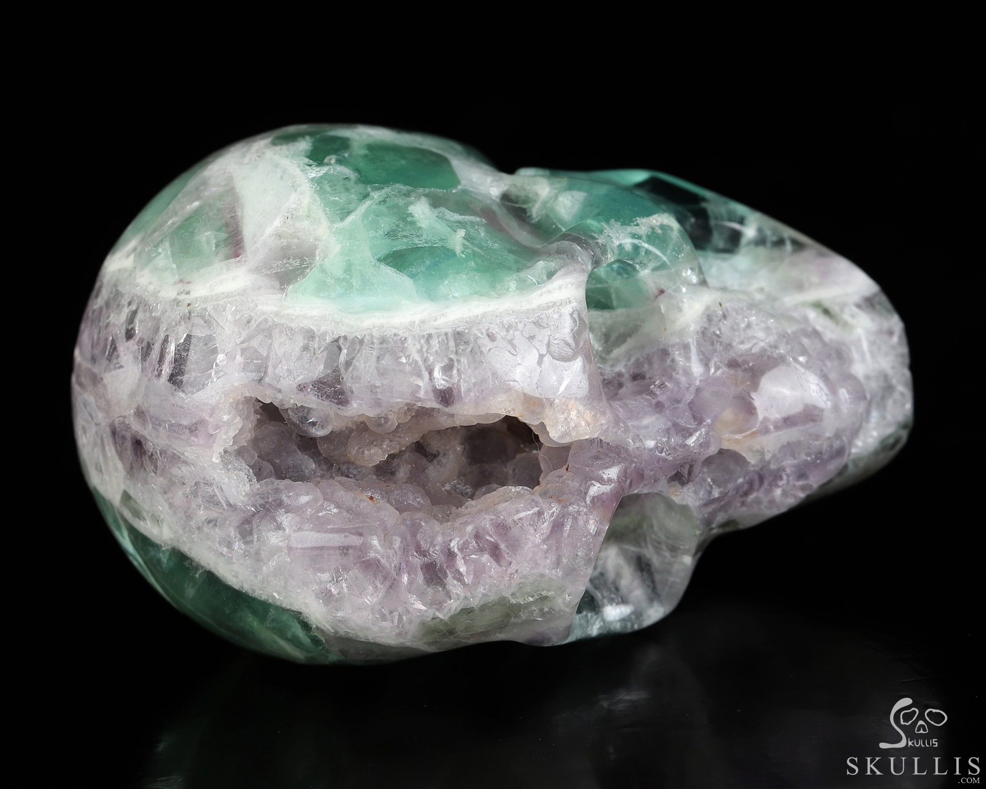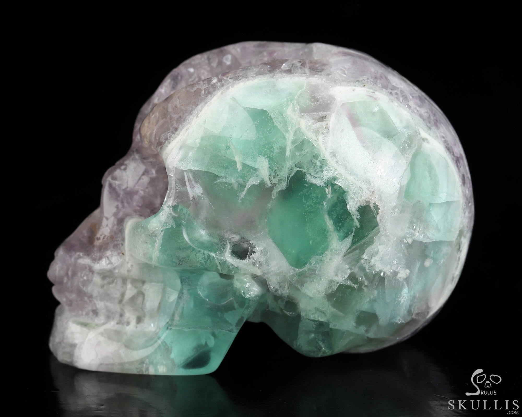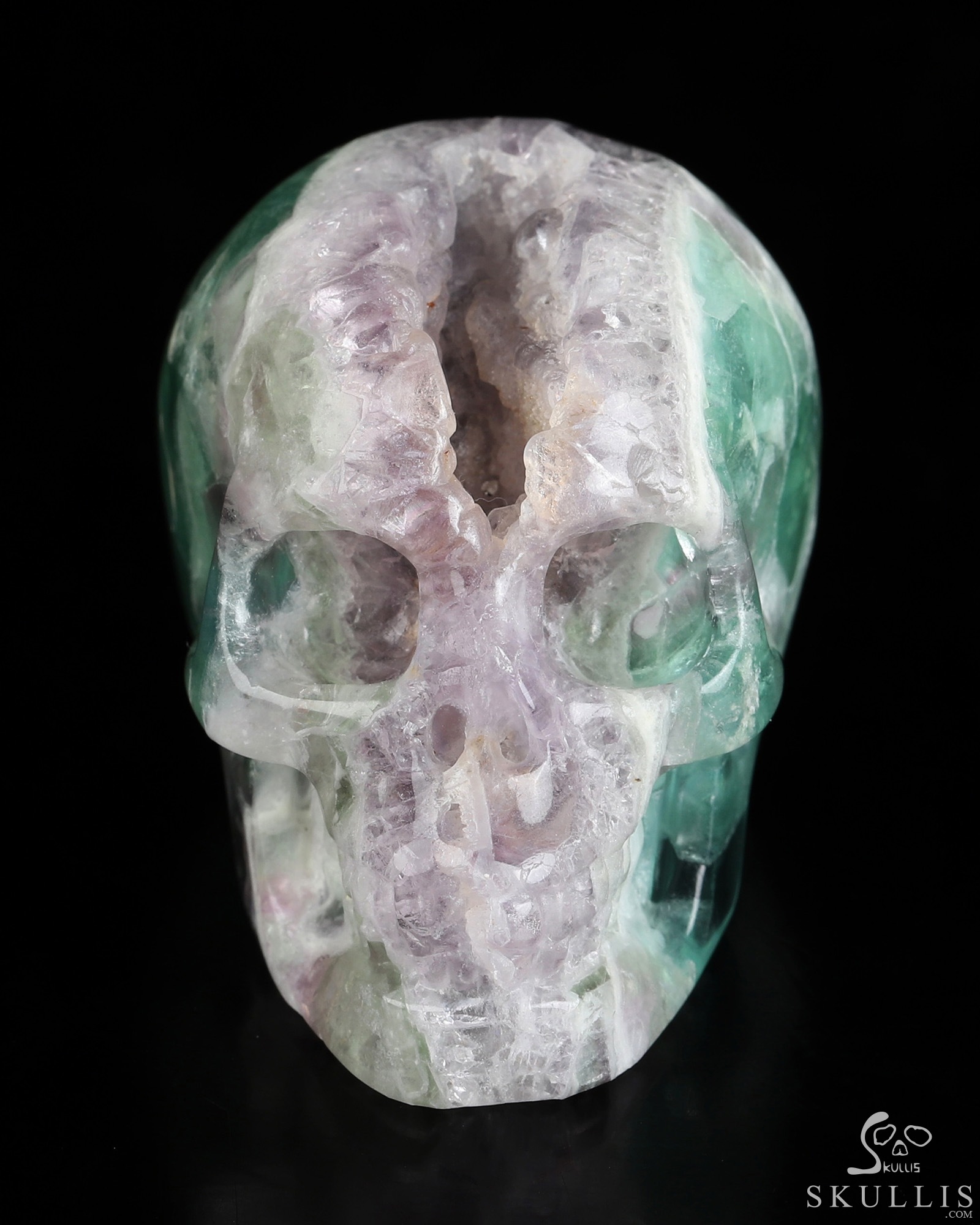 5.7" Fluorite Hand Carved Crystal Skull Fine Art Sculpture, Crystal Healing