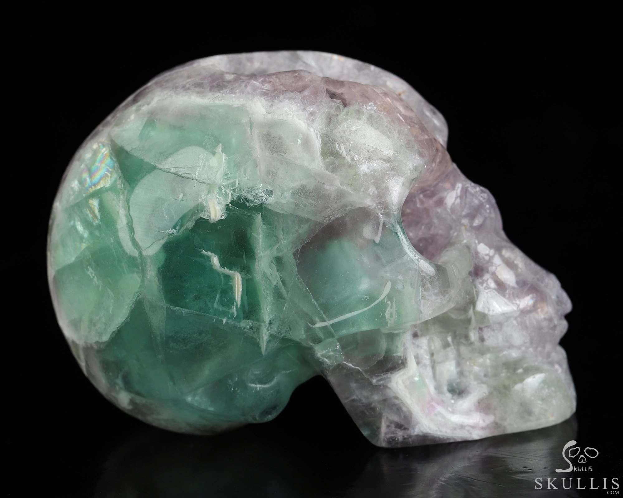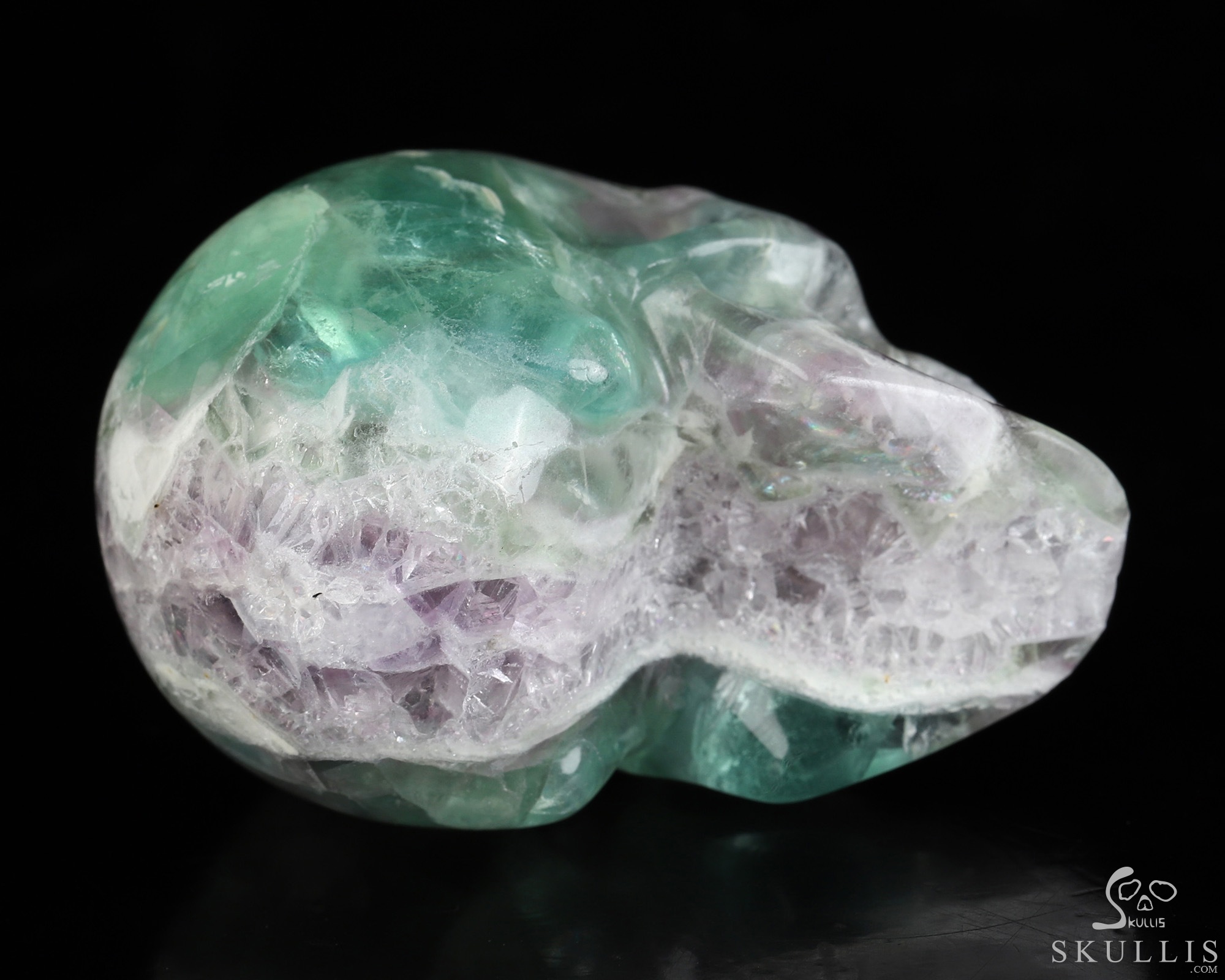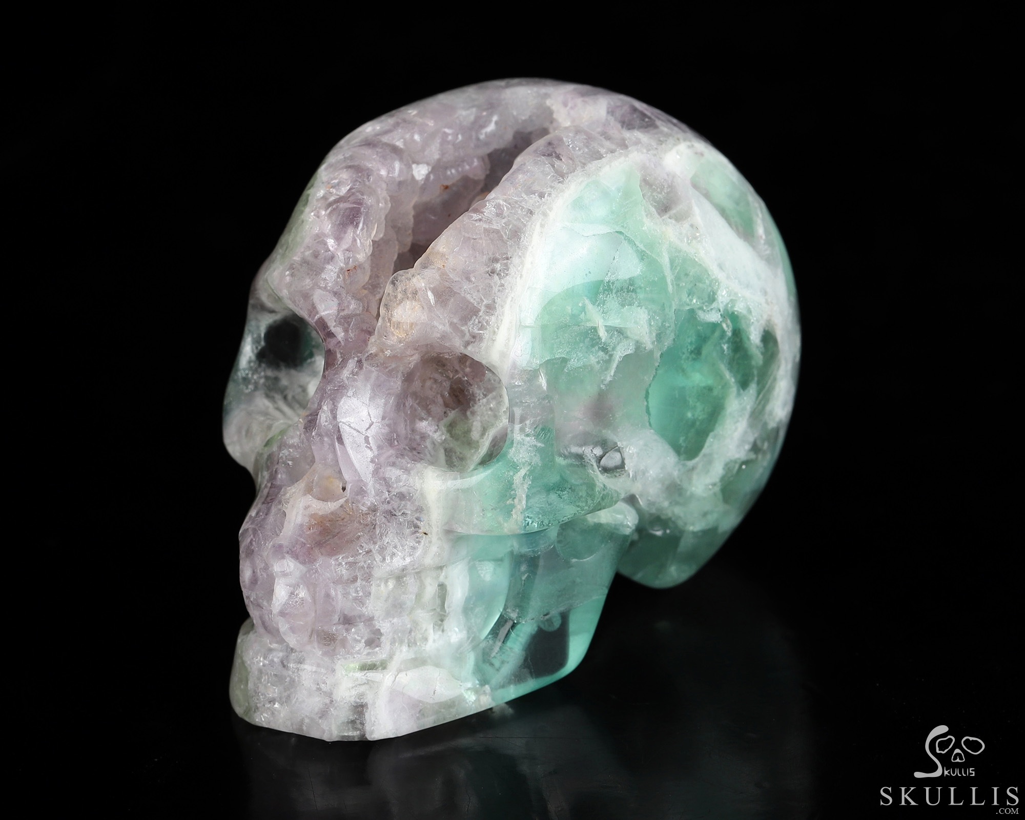4.6" Fluorite Hand Carved Crystal Skull, Super Realistic, Crystal Healing