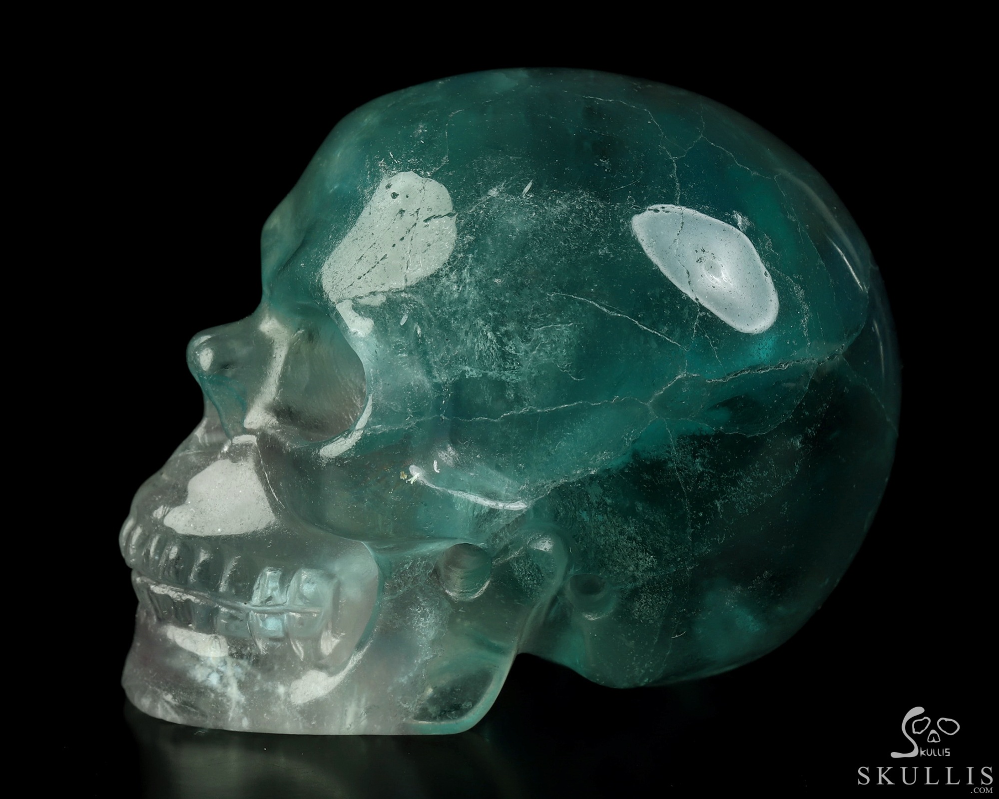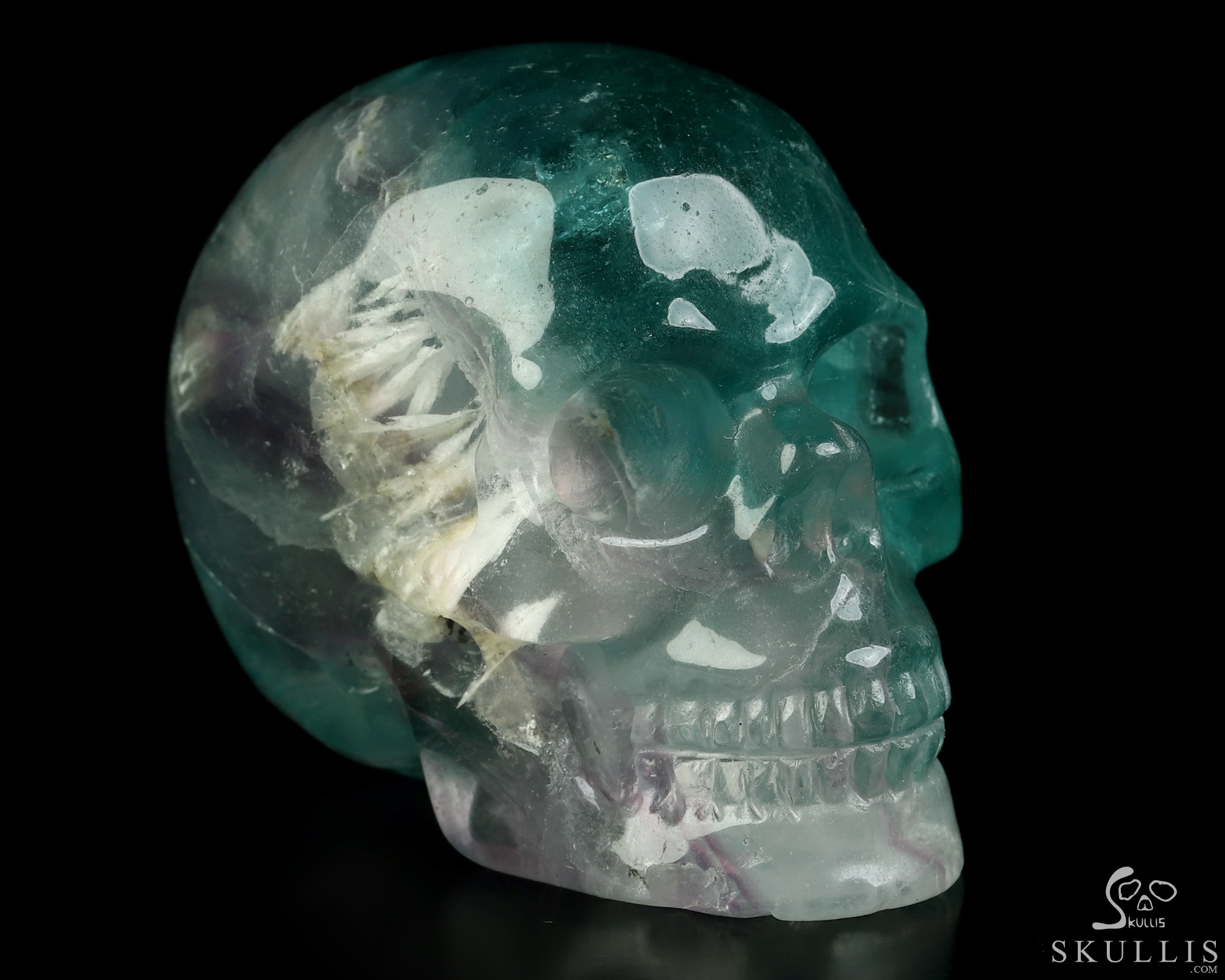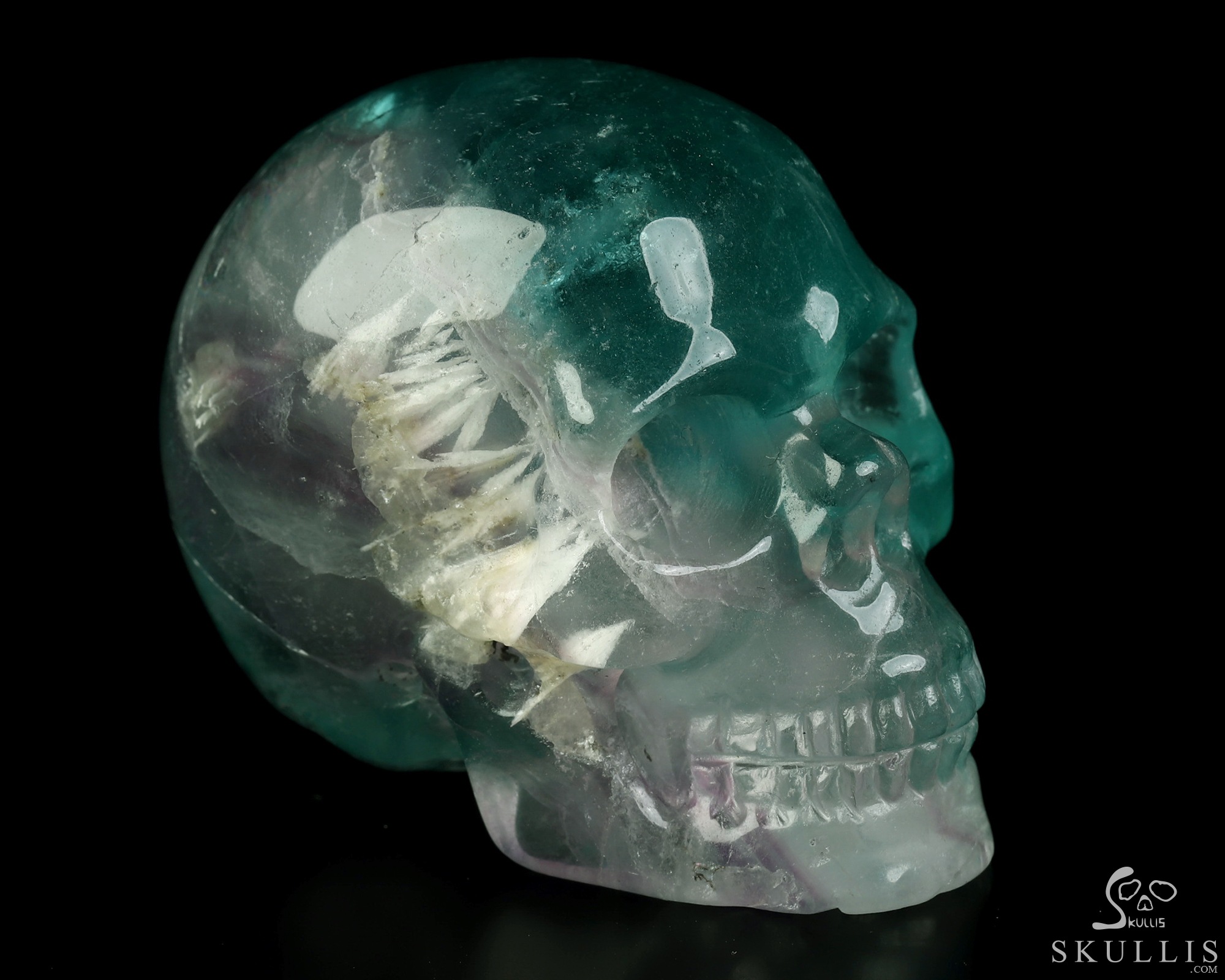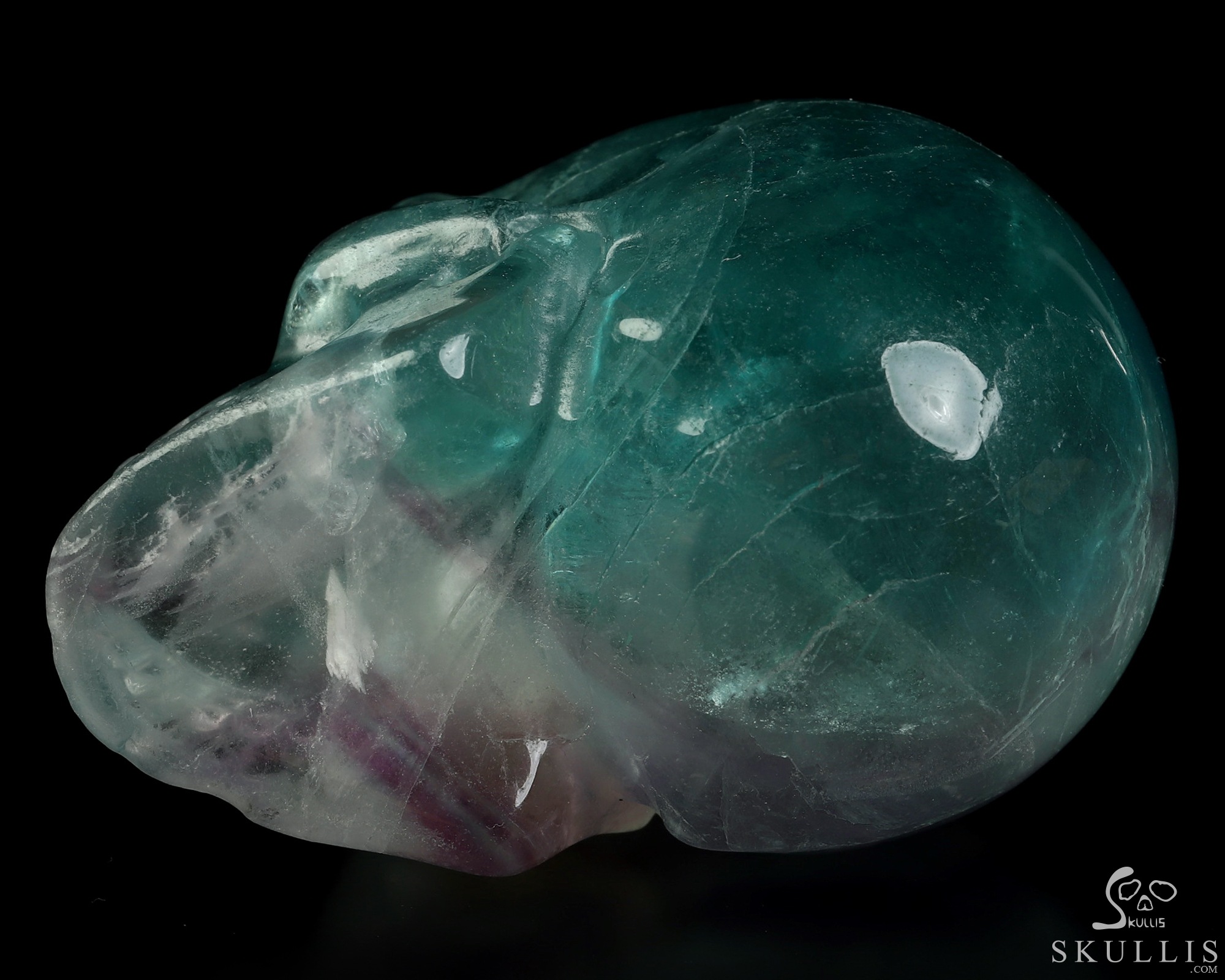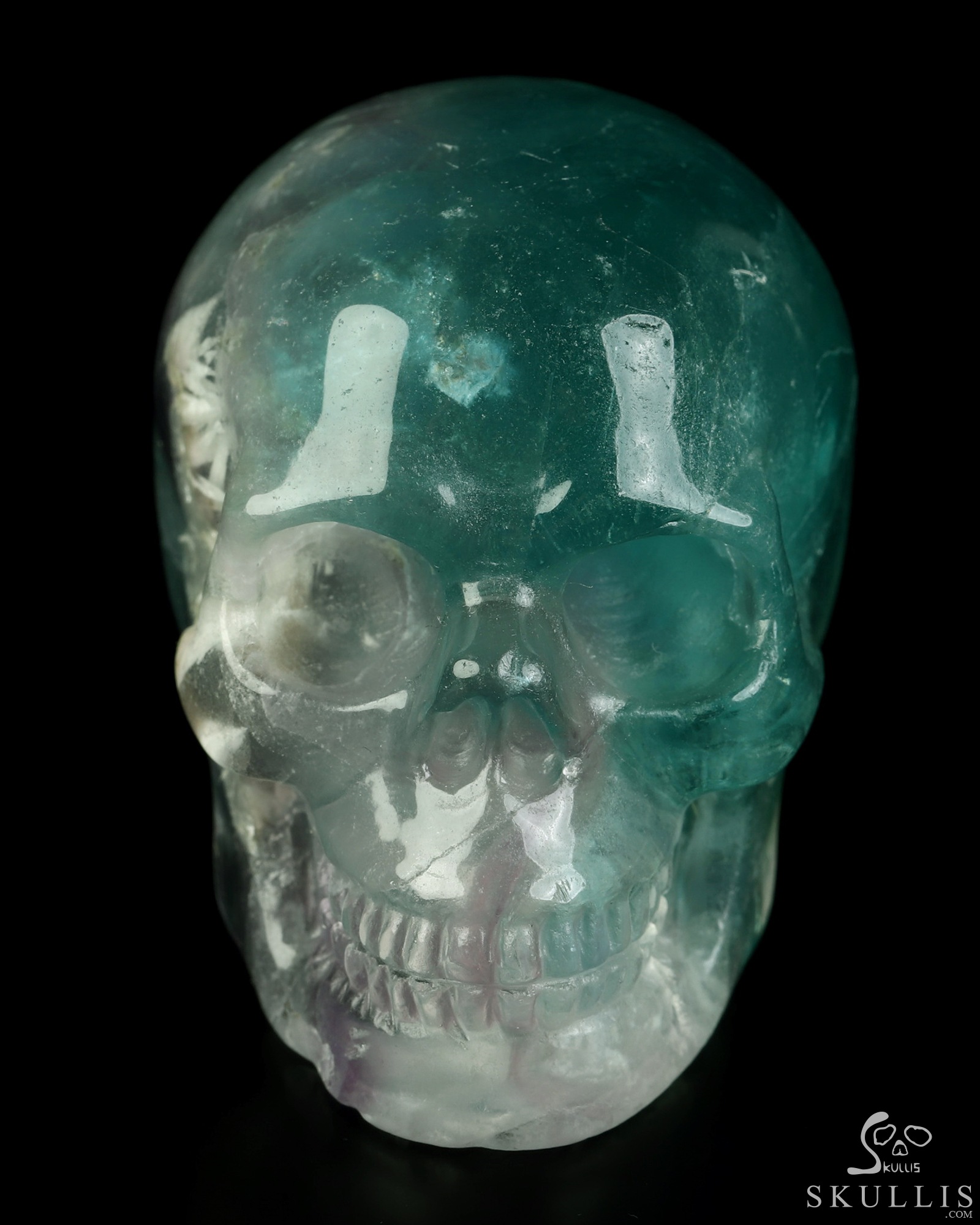 4.6" Fluorite Hand Carved Crystal Skull, Super Realistic, Crystal Healing
