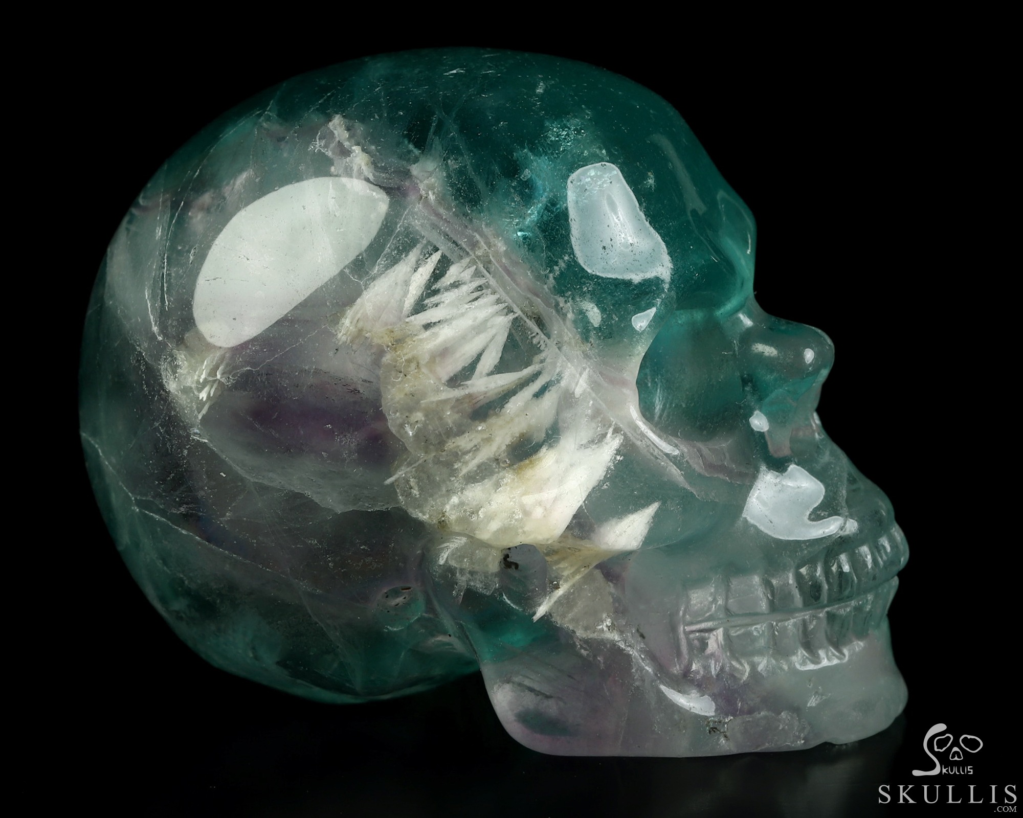 6.0" Fluorite Hand Carved Guardian Crystal Skull Sculpture, Crystal Healing