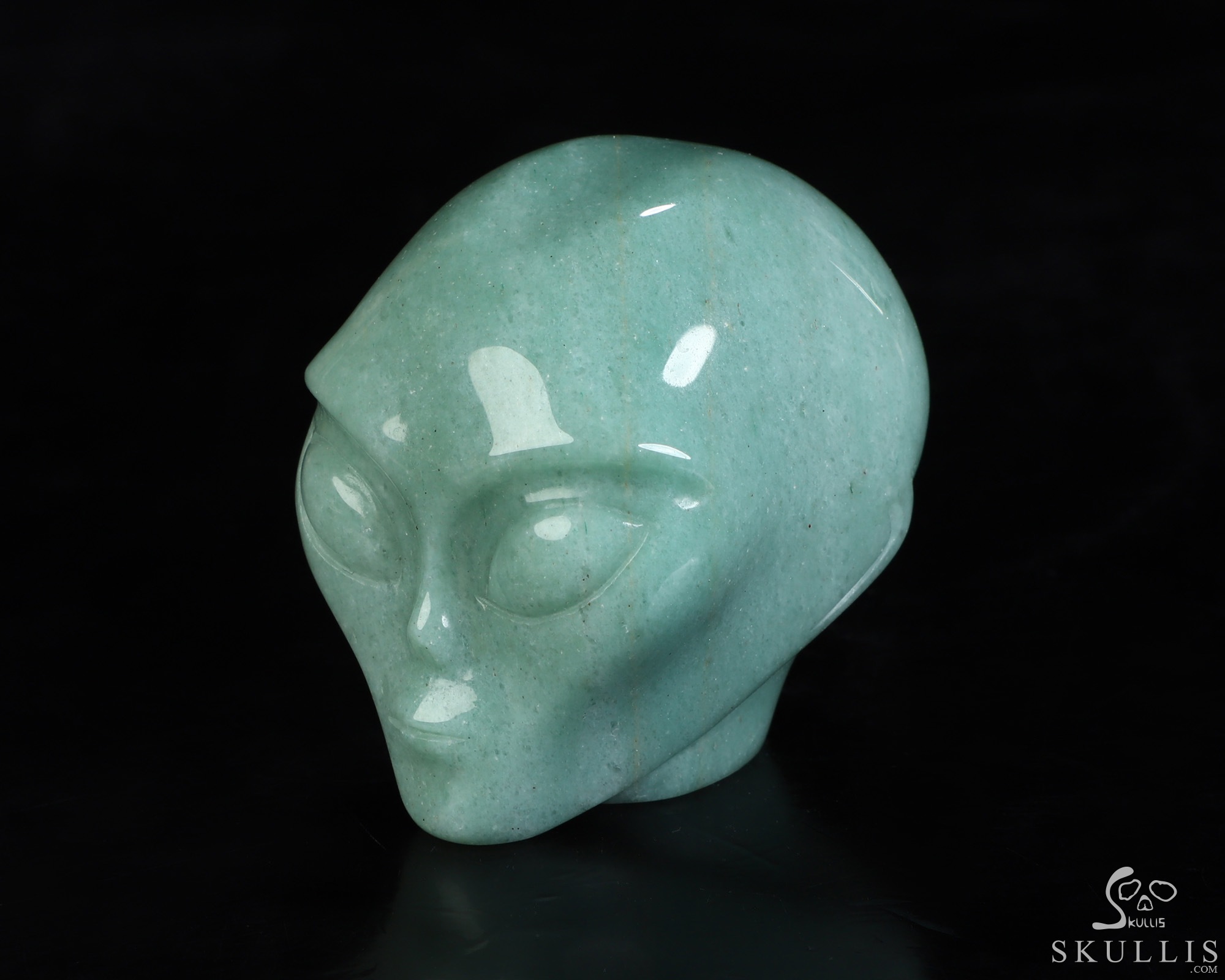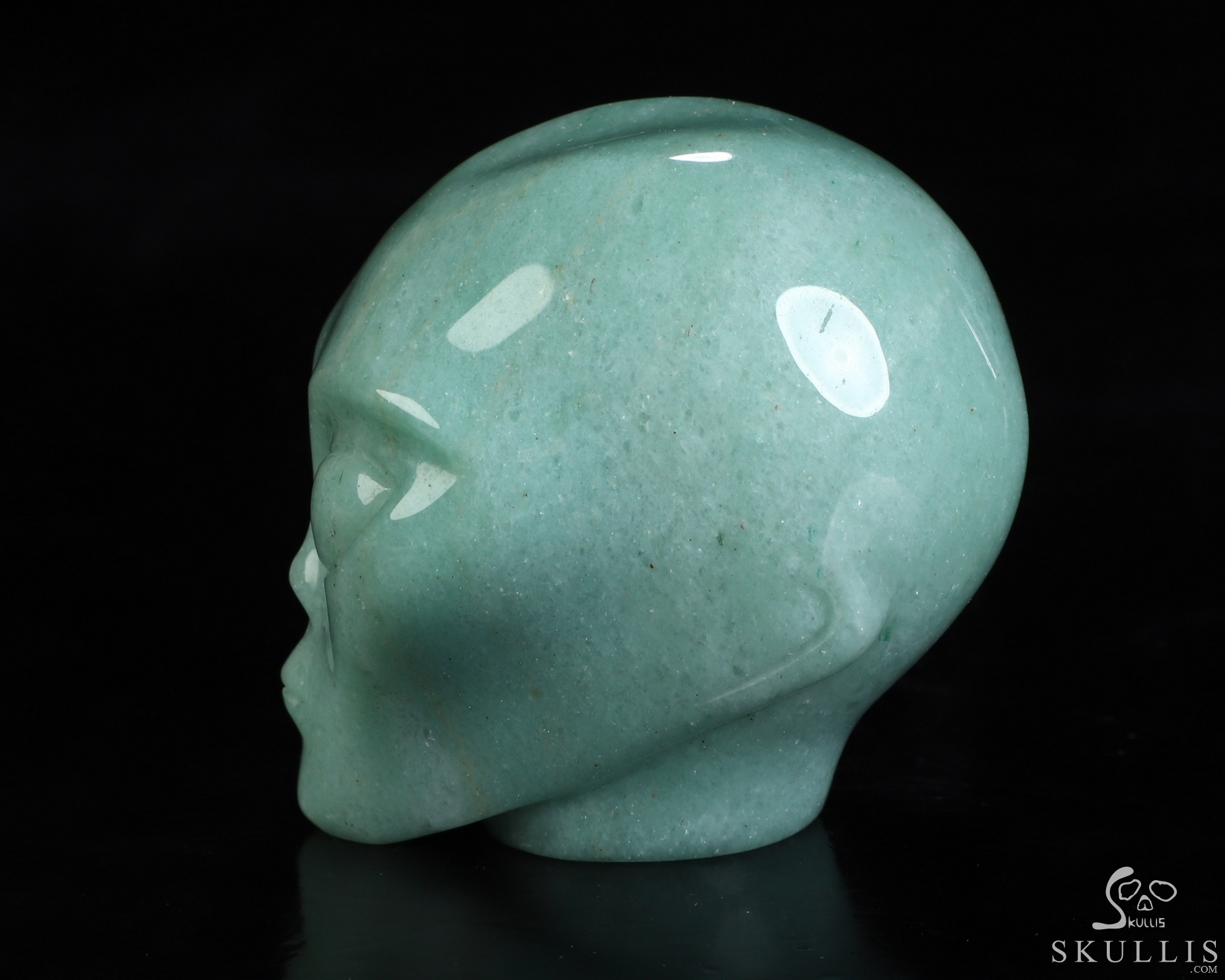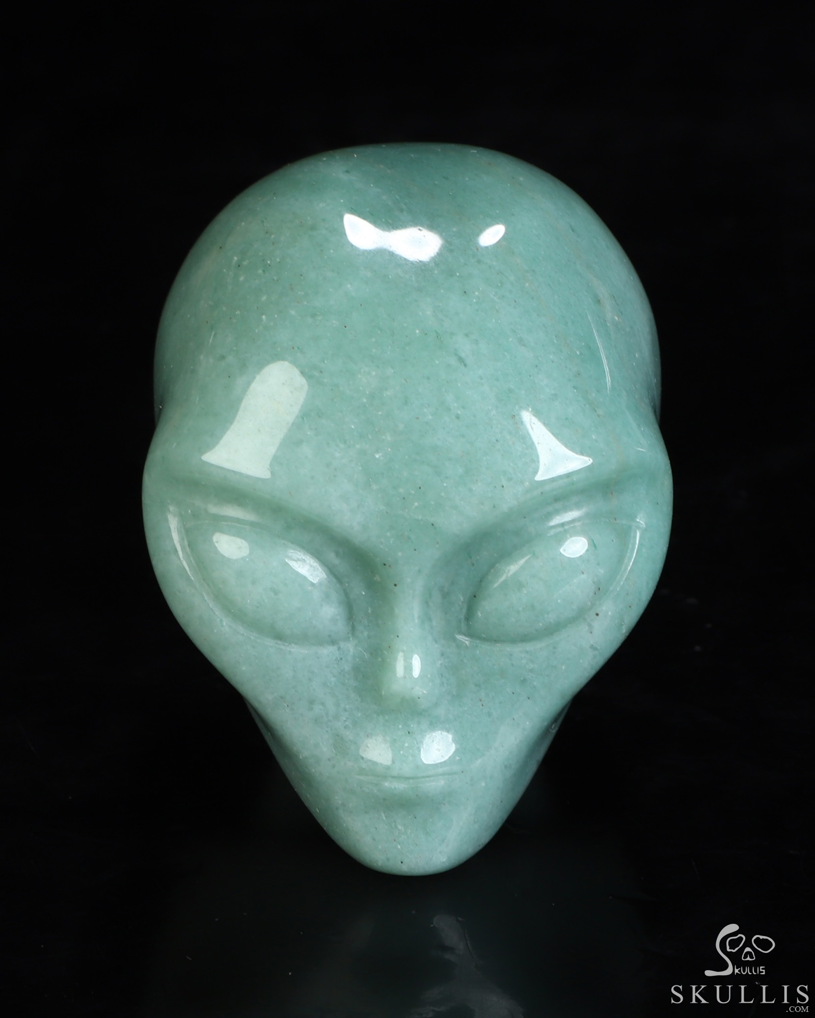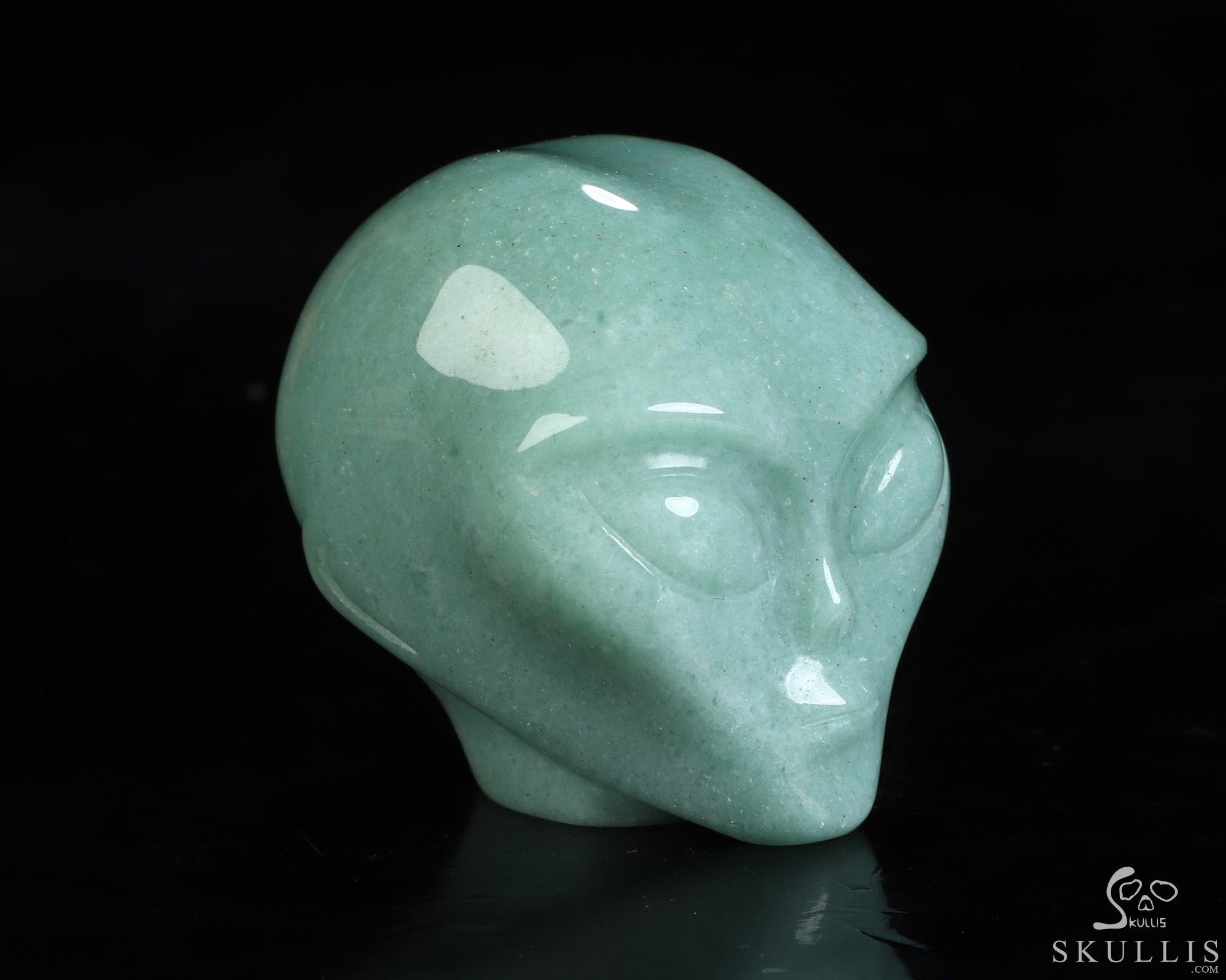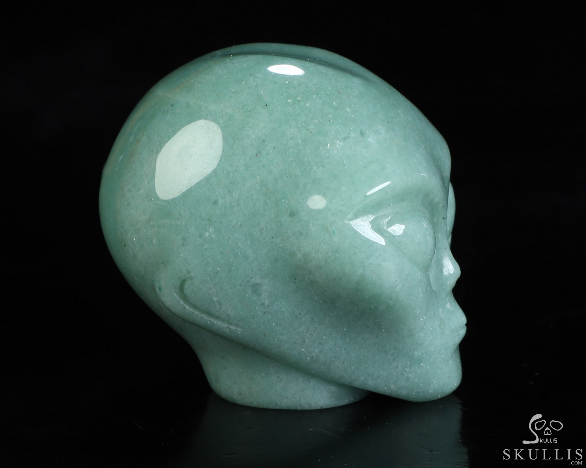 2.0" Green Aventurine Star Being Female Alien Crystal Skull Companion, Hand Carved Gemstone Fine Art Sculpture, Reiki Healing Stone Statue