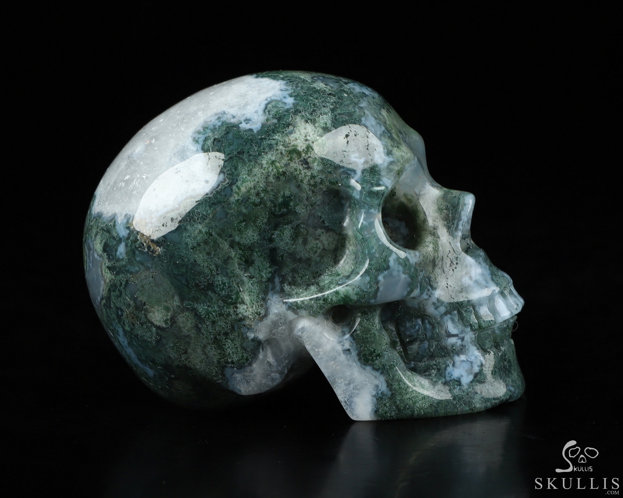 5.1" Green Moss Agate Hand Carved Crystal Skull, Super Realistic, Crystal Healing