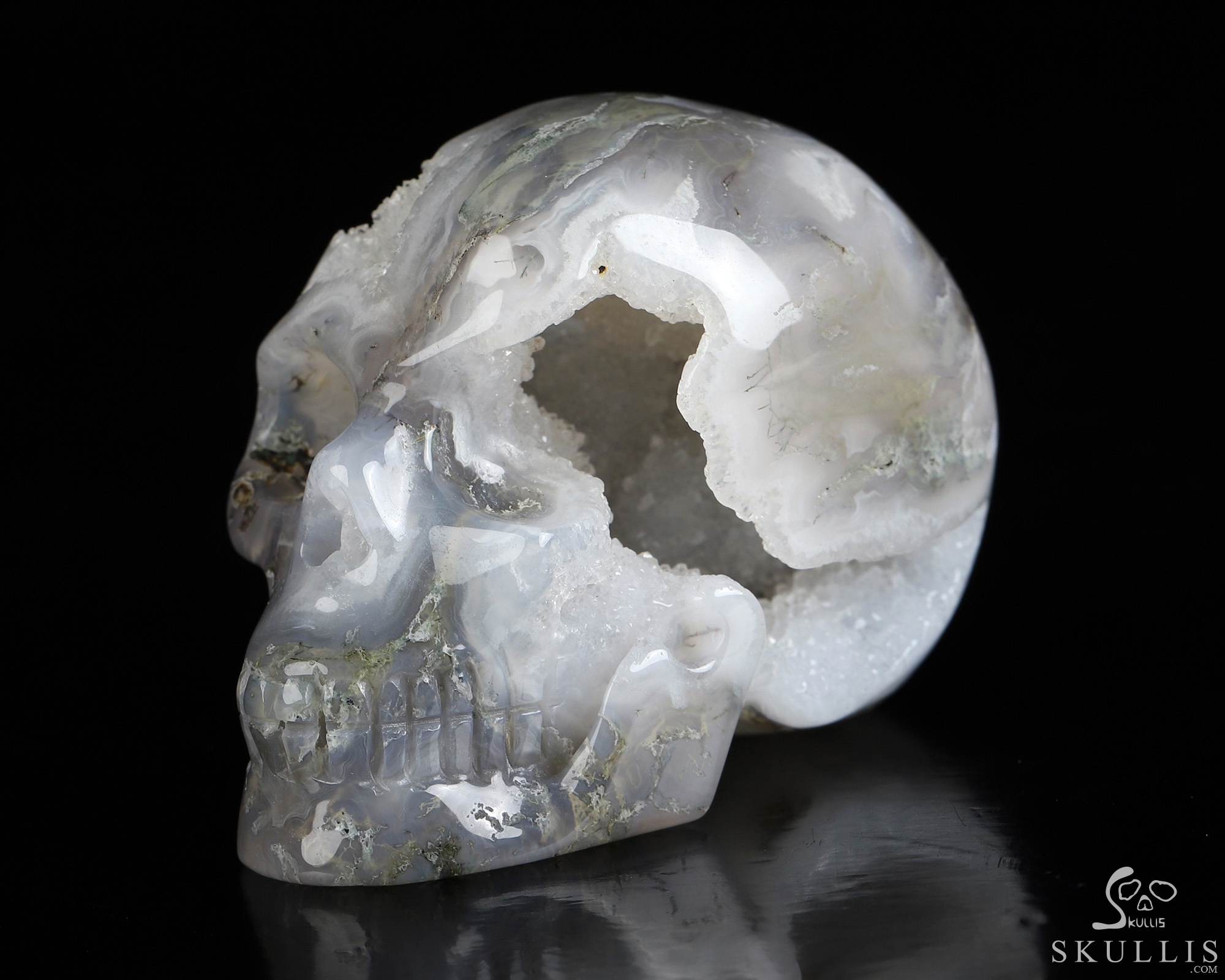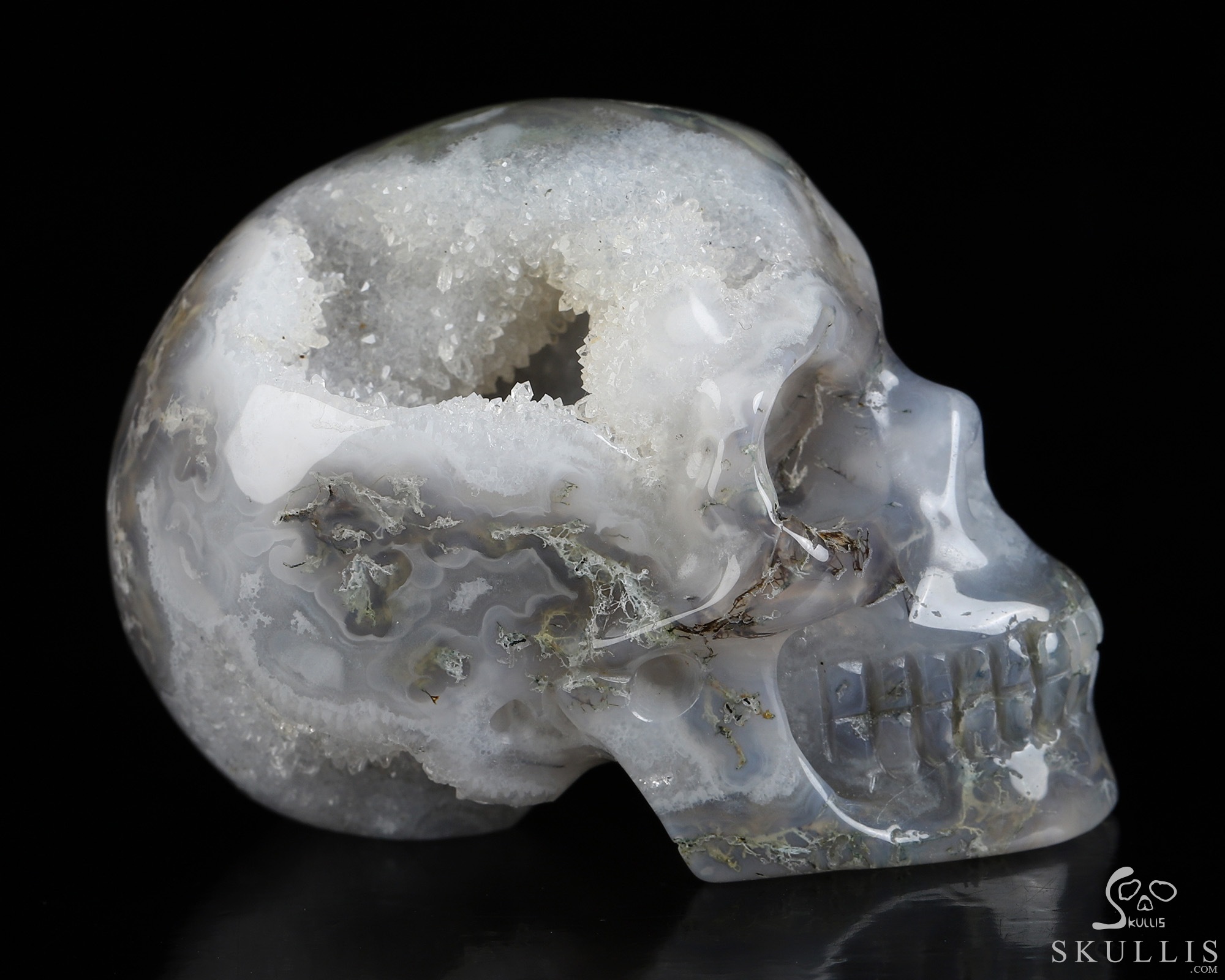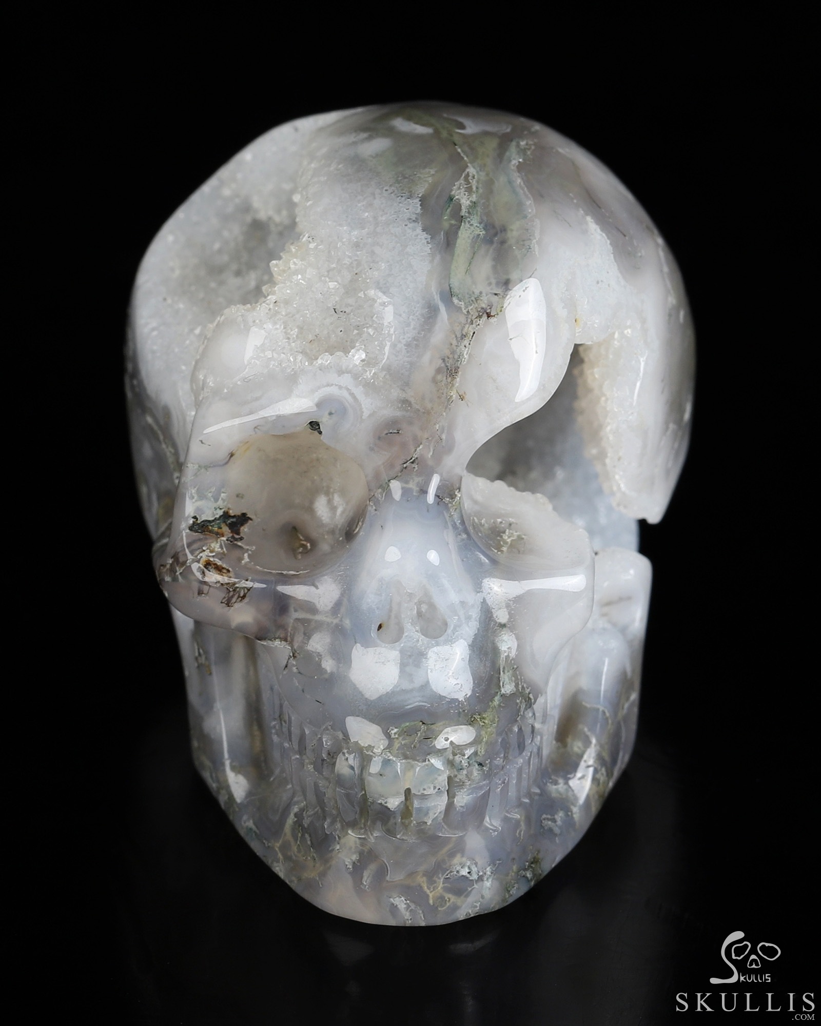 3.5" Green Moss Agate Geode Hand Carved Crystal Skull, Super Realistic, Crystal Healing