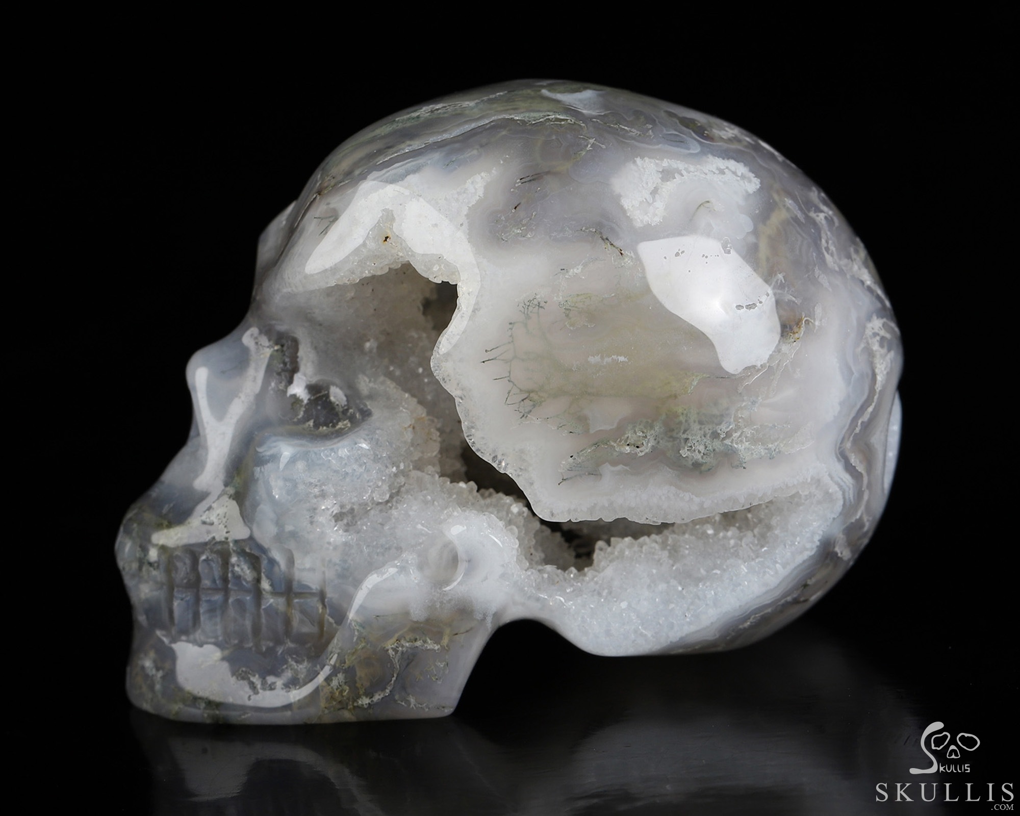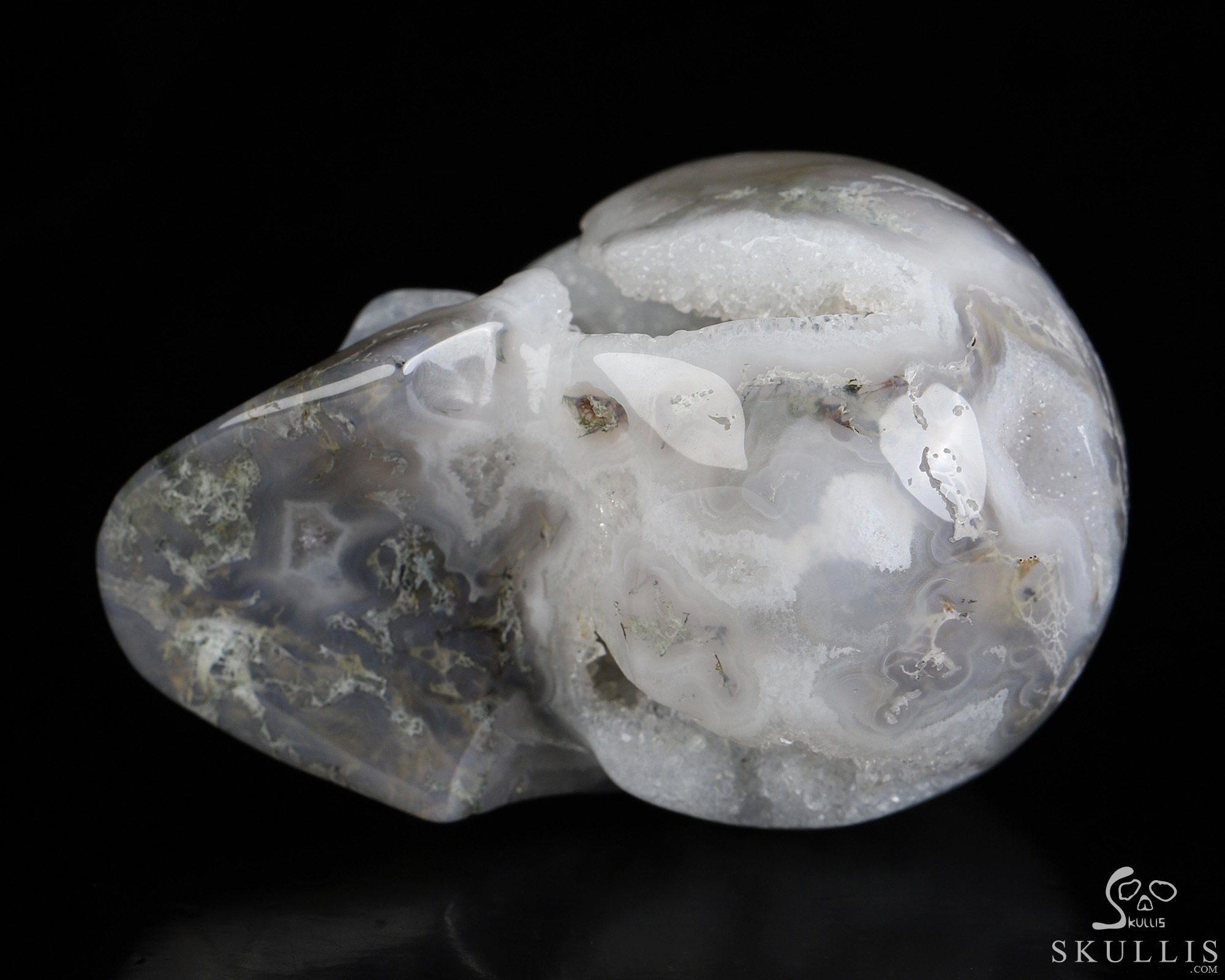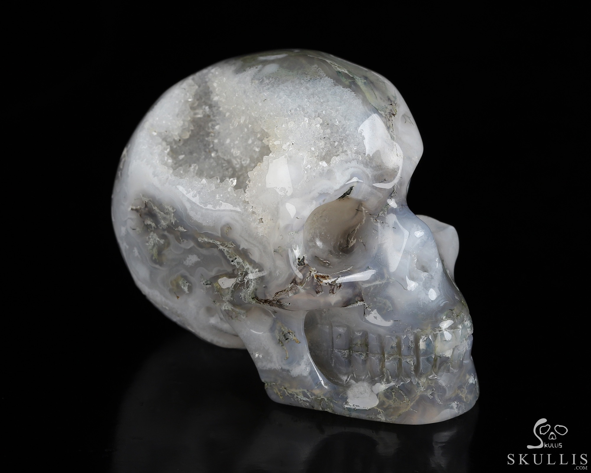 3.5" Green Moss Agate Geode Hand Carved Crystal Skull, Super Realistic, Crystal Healing