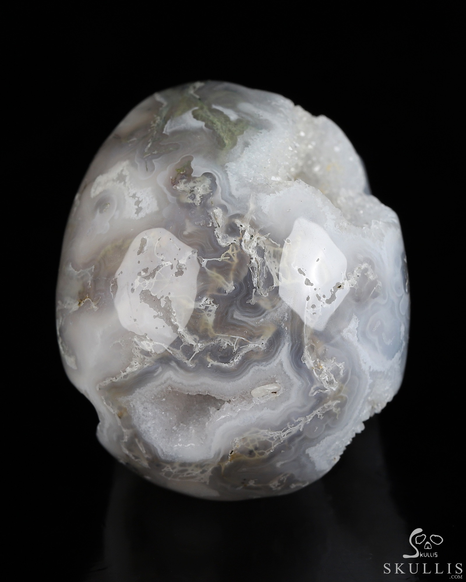 You are looking at a Green Moss Agate skull. The skull is 2 inches from front to back.