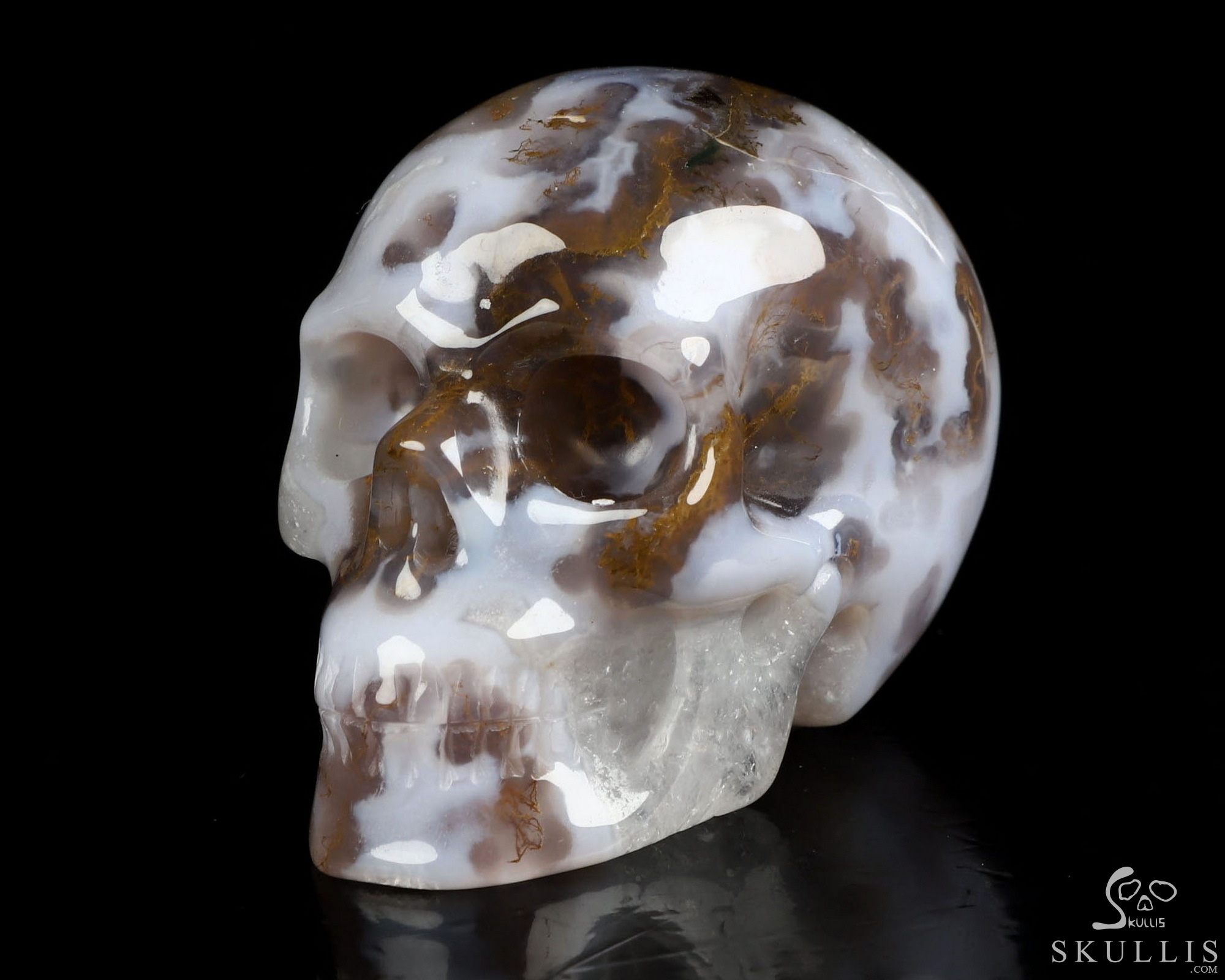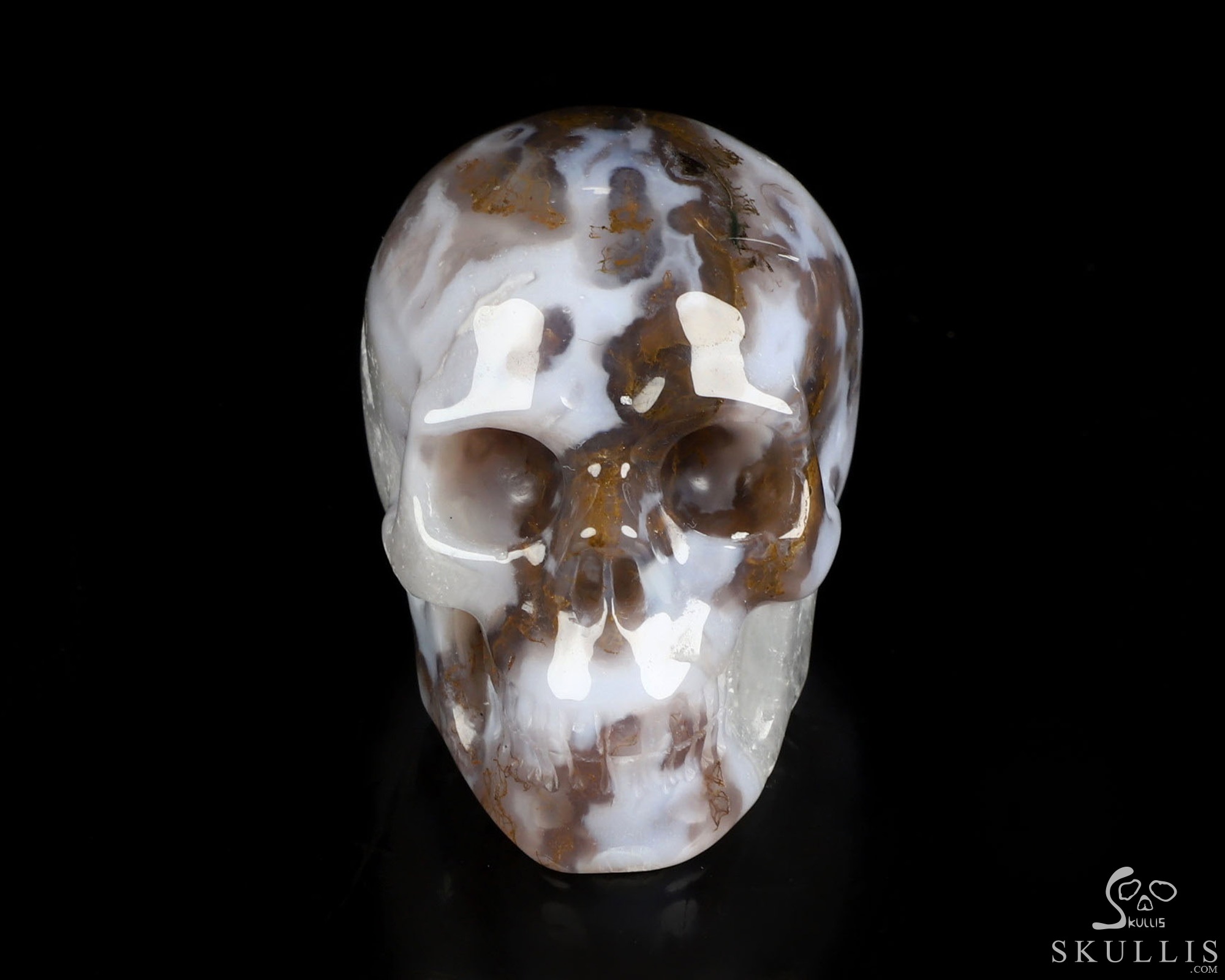 Lifesized 6.2" Green Moss Agate Carved Crystal Skull, Super Realistic