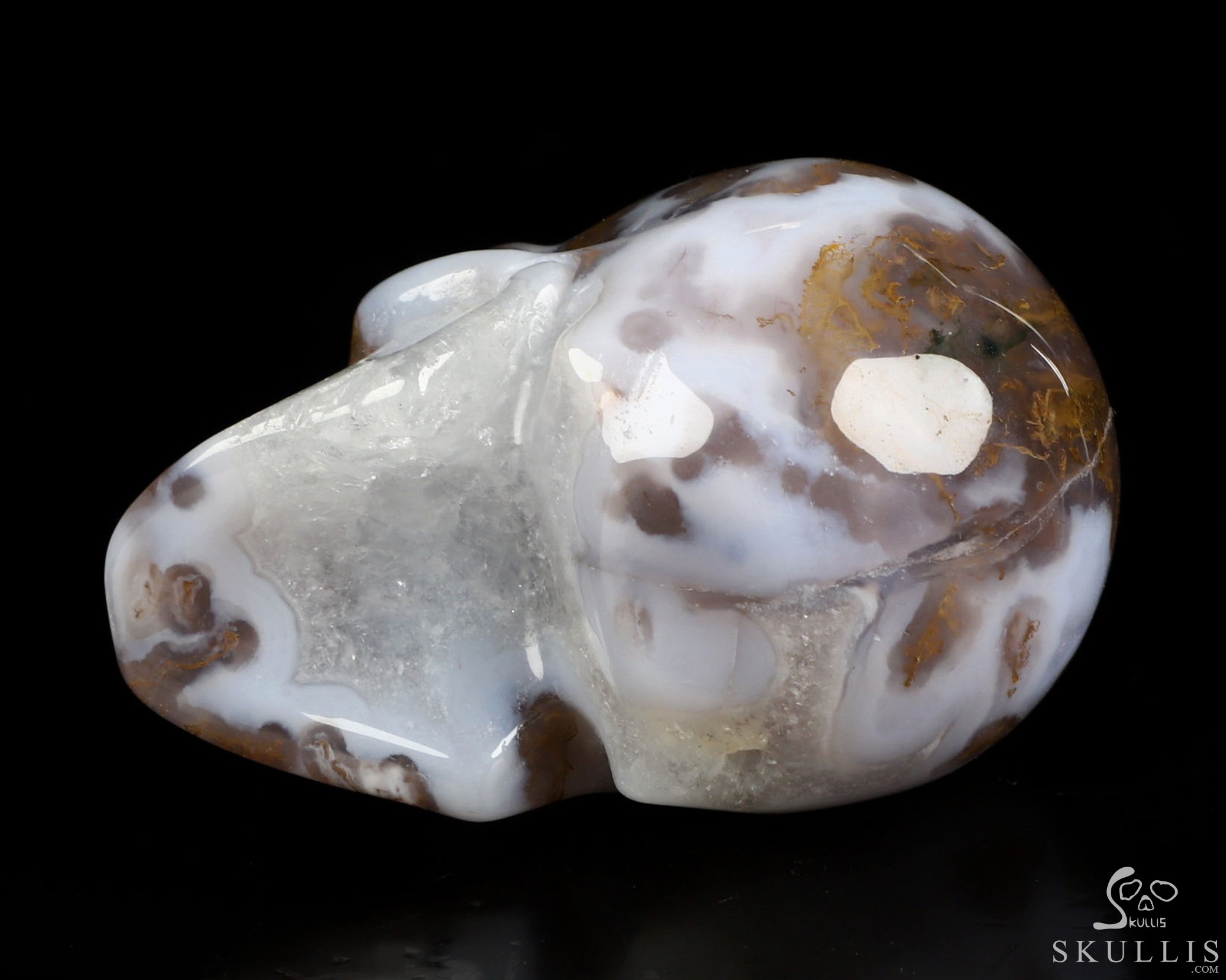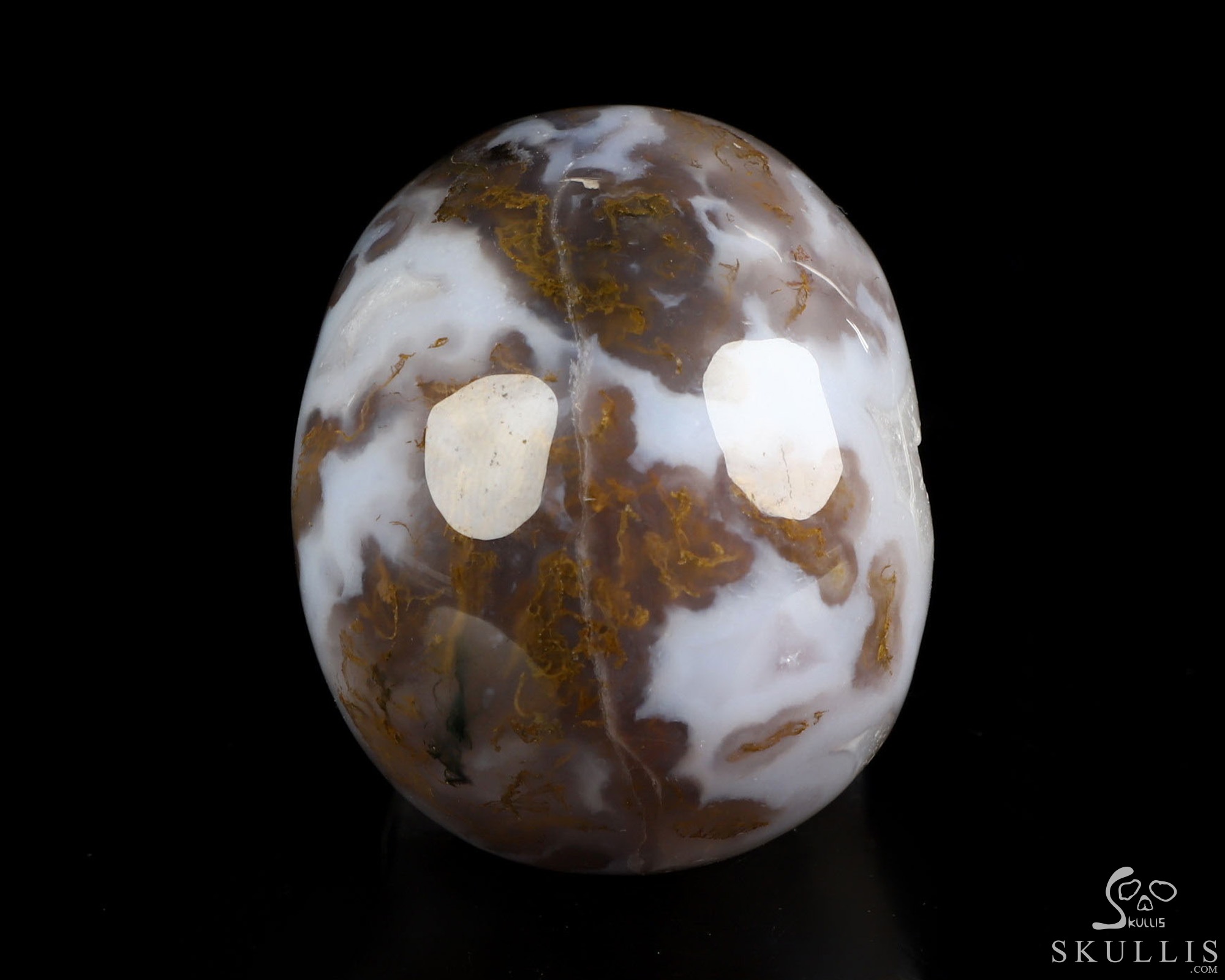 You are looking at a Green Moss Agate skull. The skull is 2 inches from front to back.