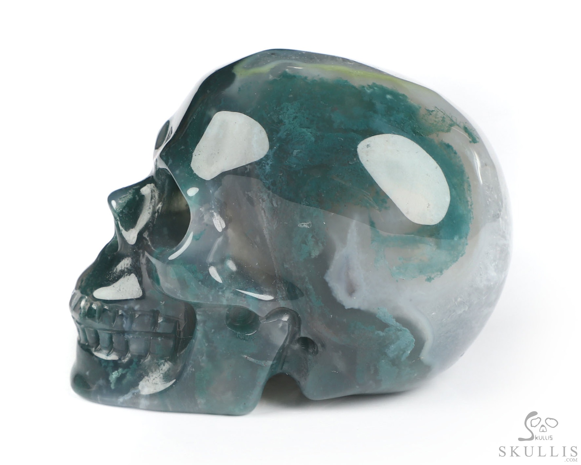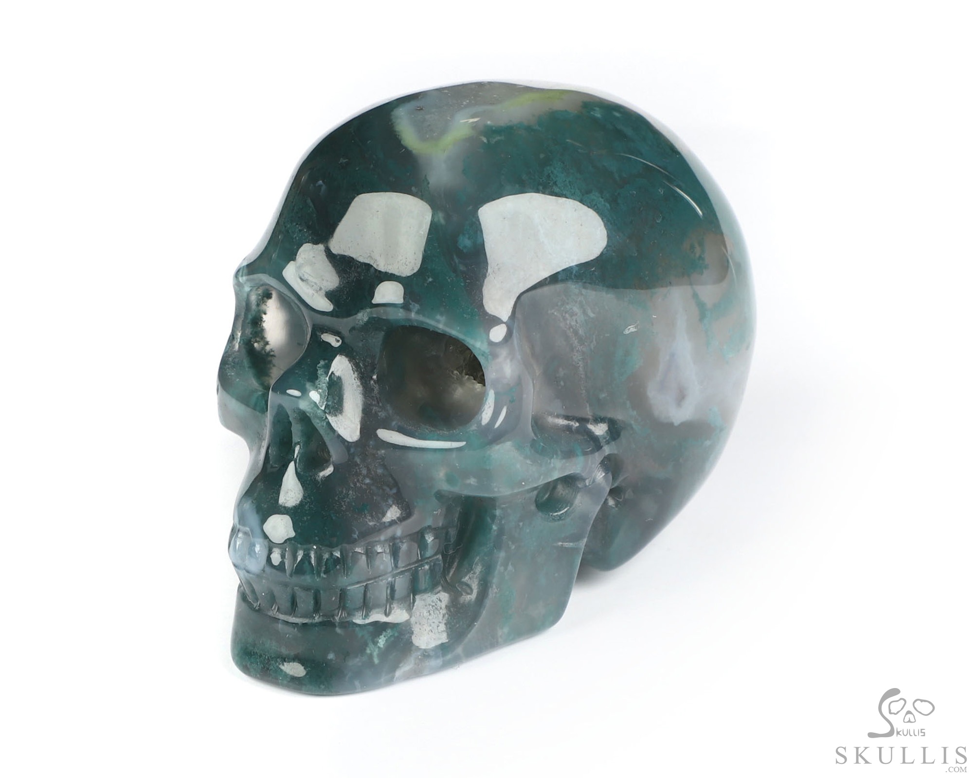 Huge 5.0" Green Moss Agate Carved Crystal Skull, Realistic, Crystal Healing