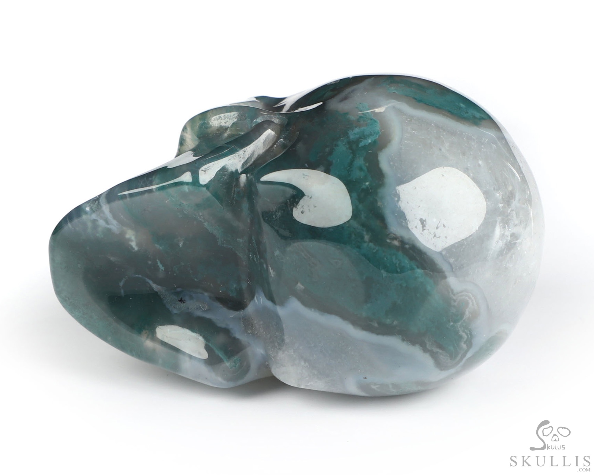 5.1" Green Moss Agate Hand Carved Crystal Skull, Realistic, Crystal Healing