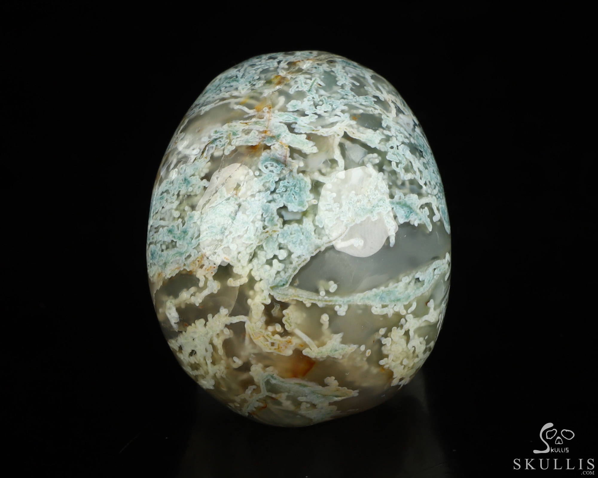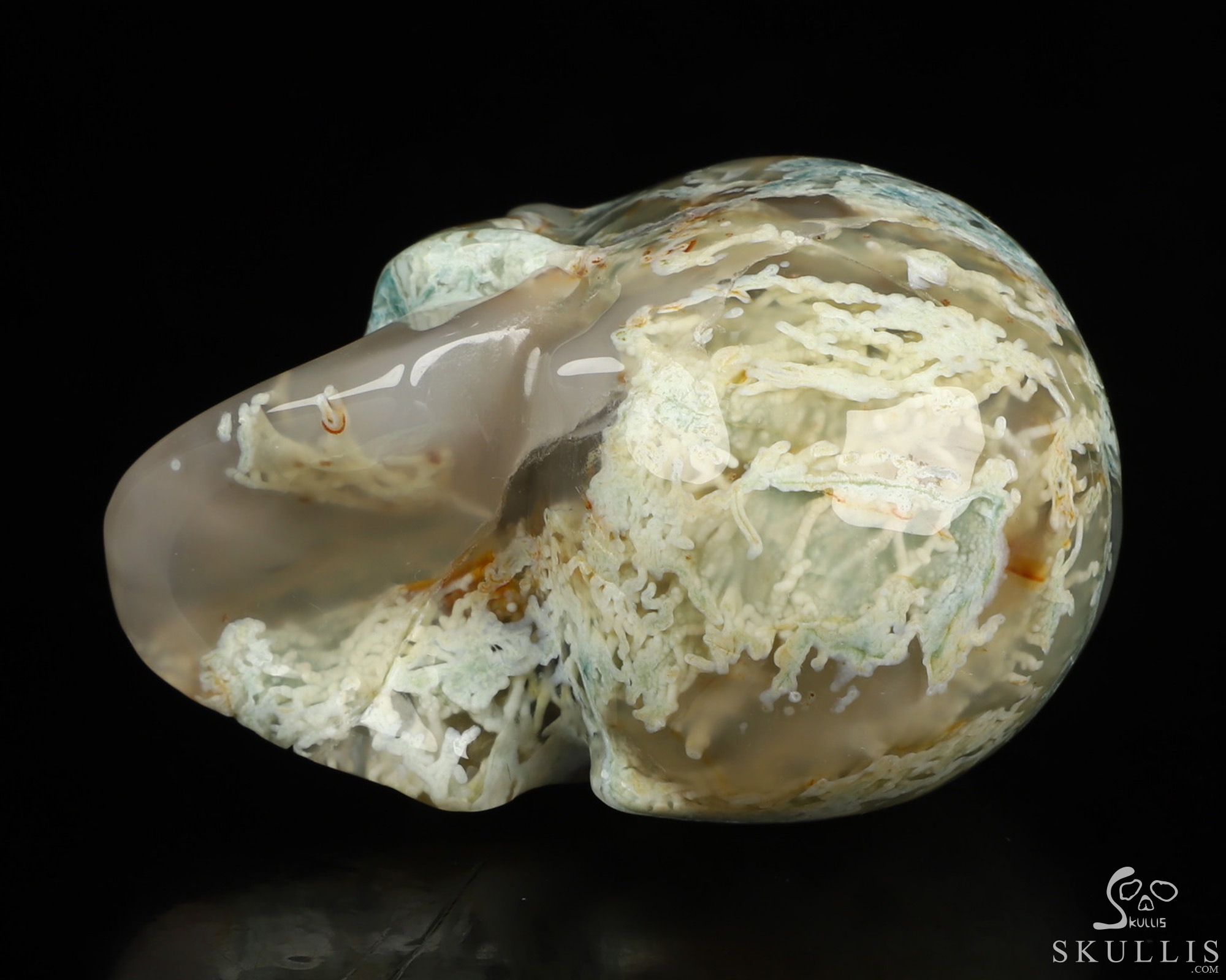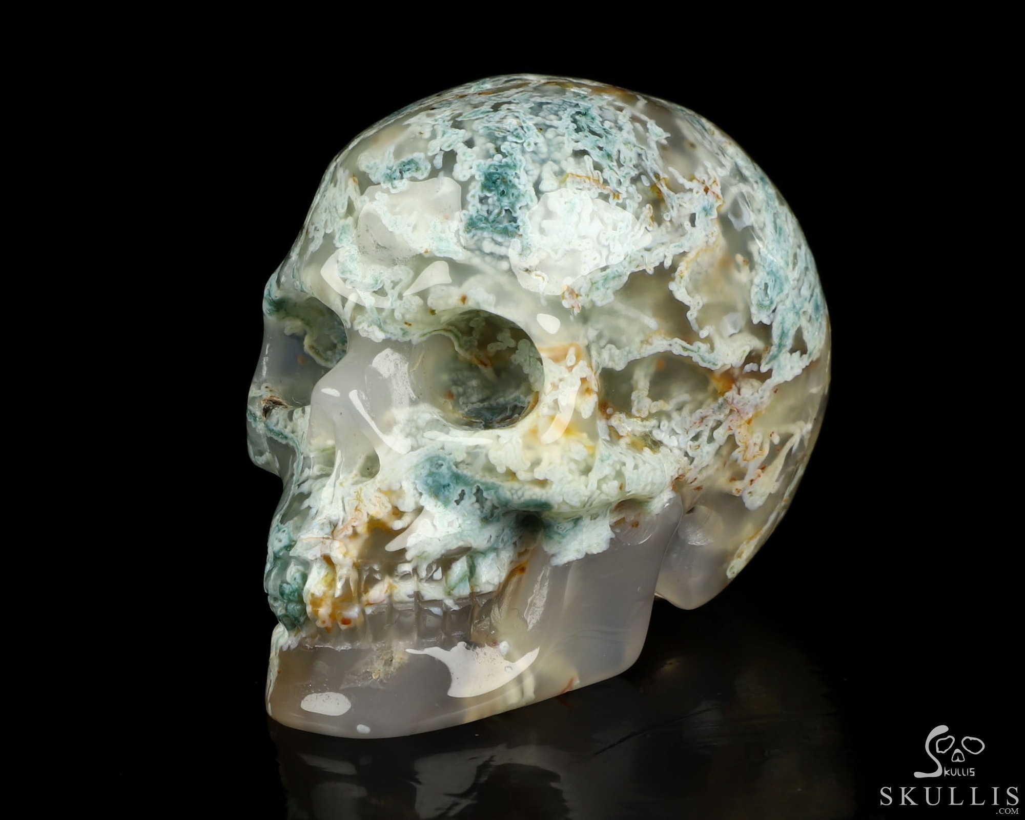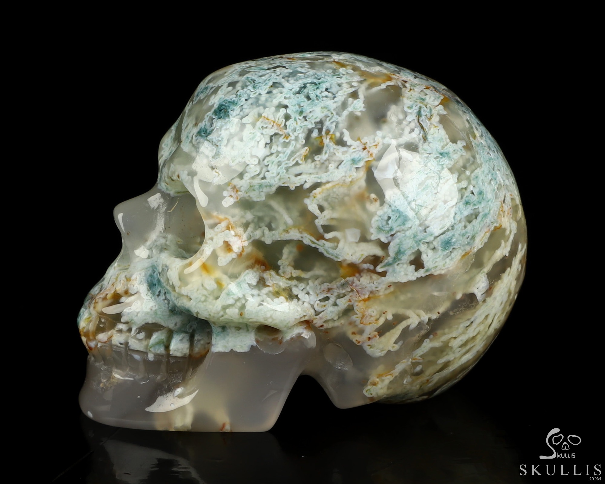 3.6" Colorful Green Moss Agate Hand Carved Crystal Skull, Realistic, Crystal Healing