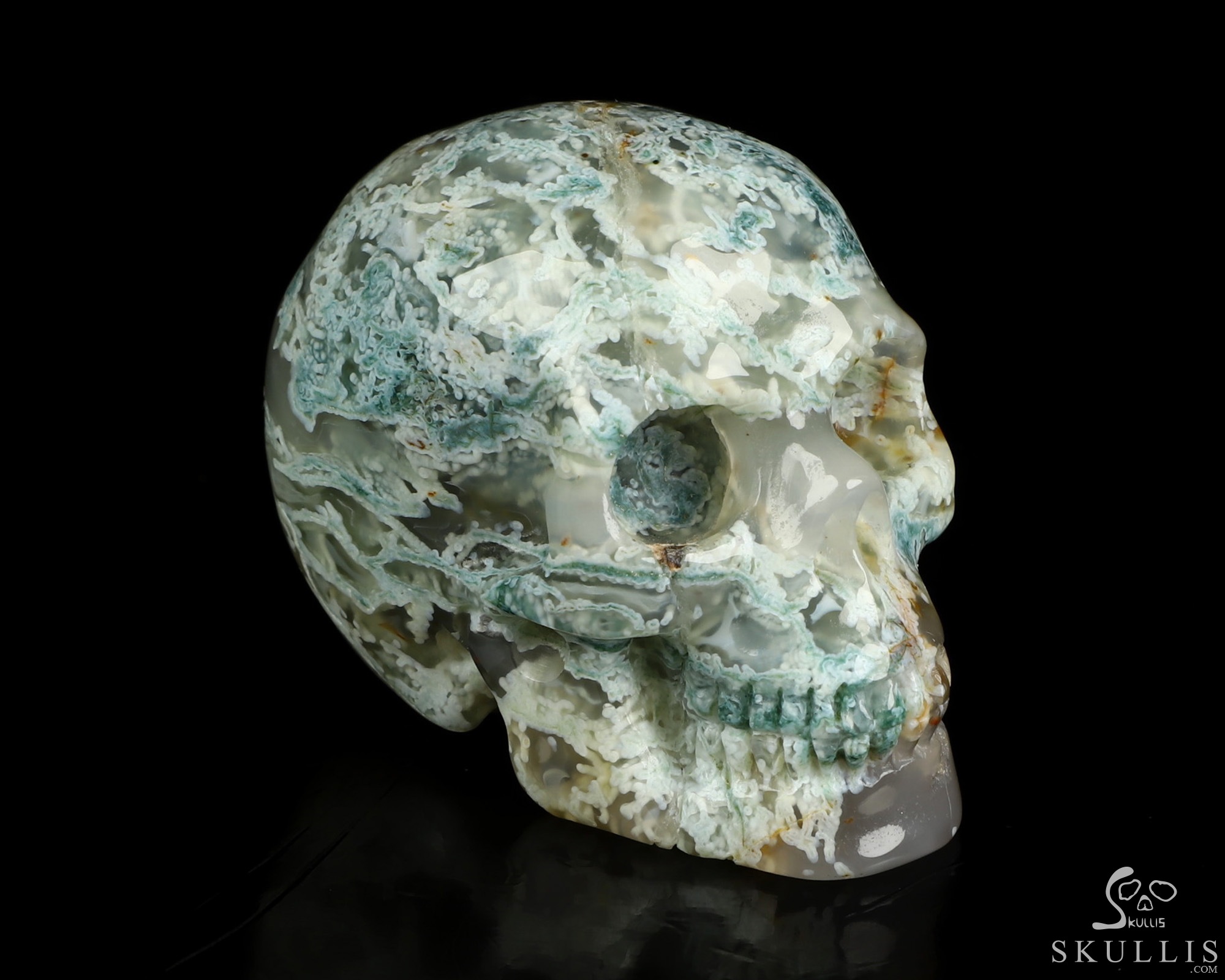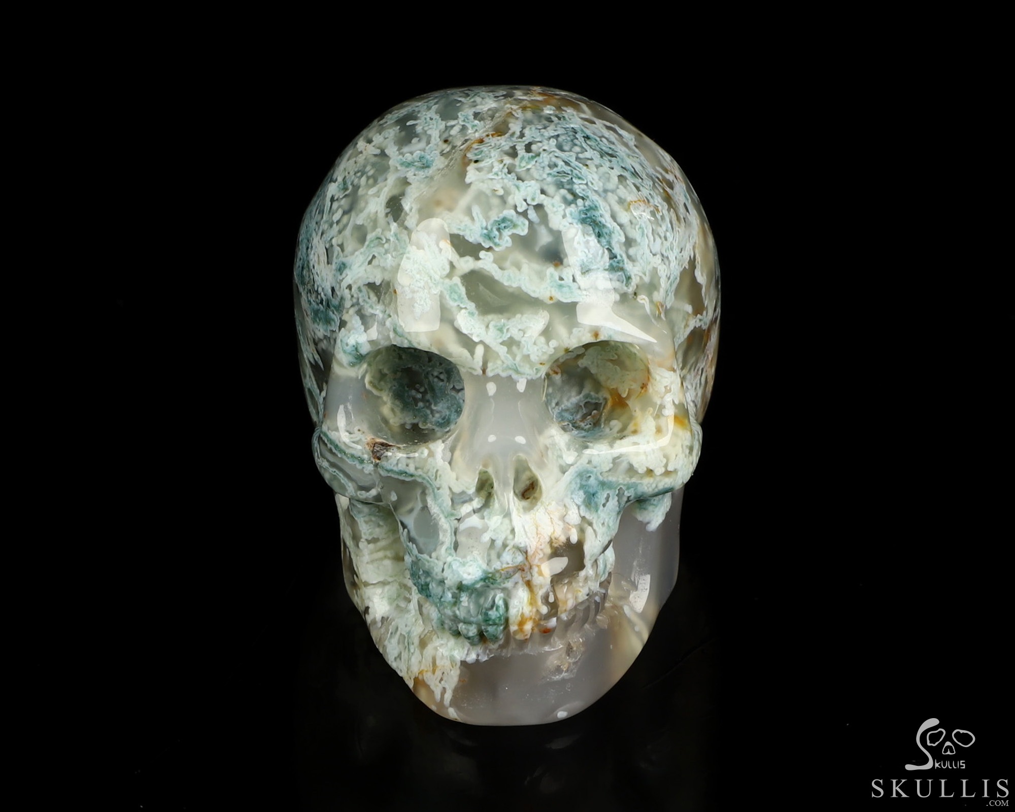 4.1" Green Moss Agate Hand Carved Crystal Skull, Super Realistic, Crystal Healing