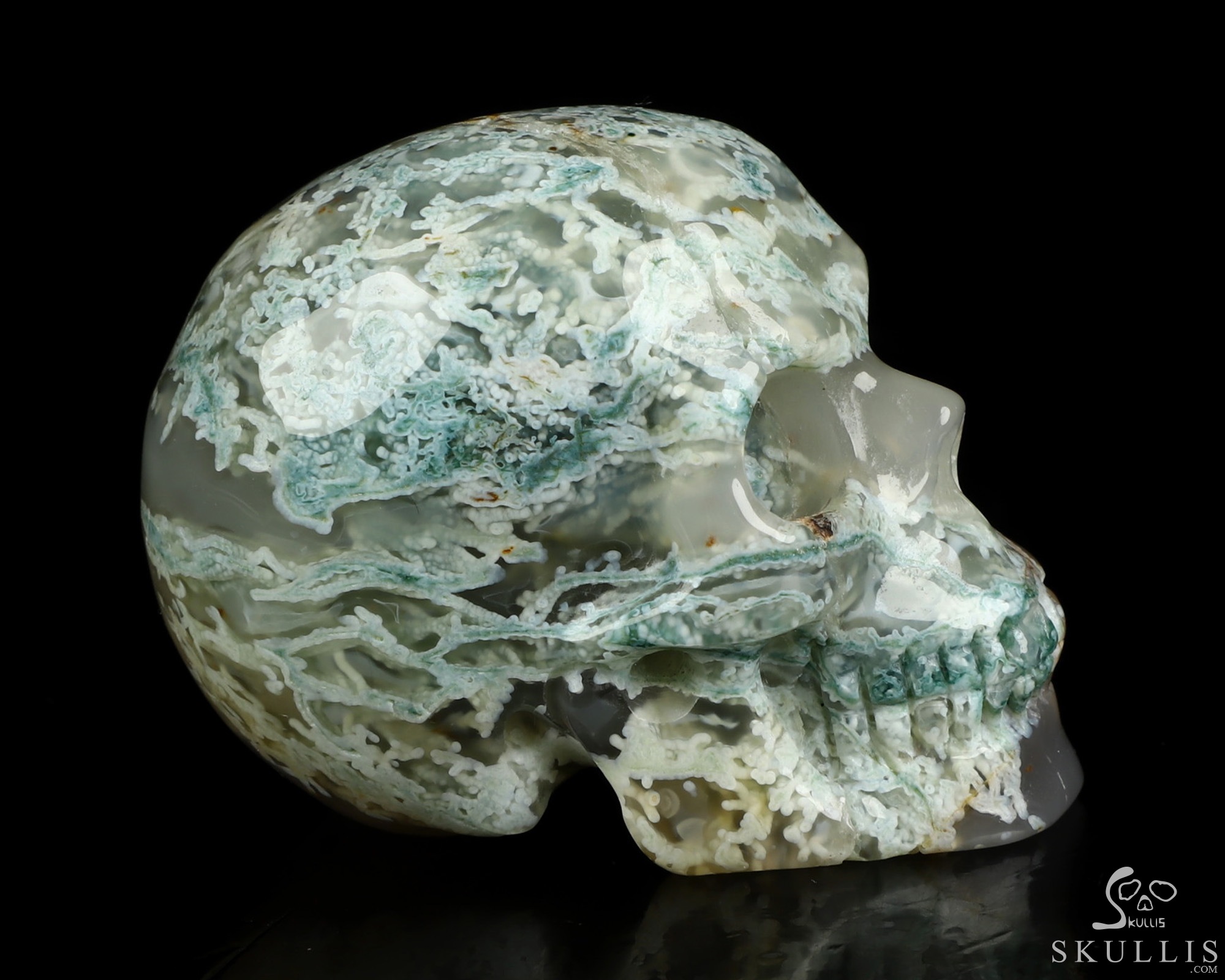 2.0" Green Moss Agate Hand Carved Crystal Skull, Realistic, Crystal Healing