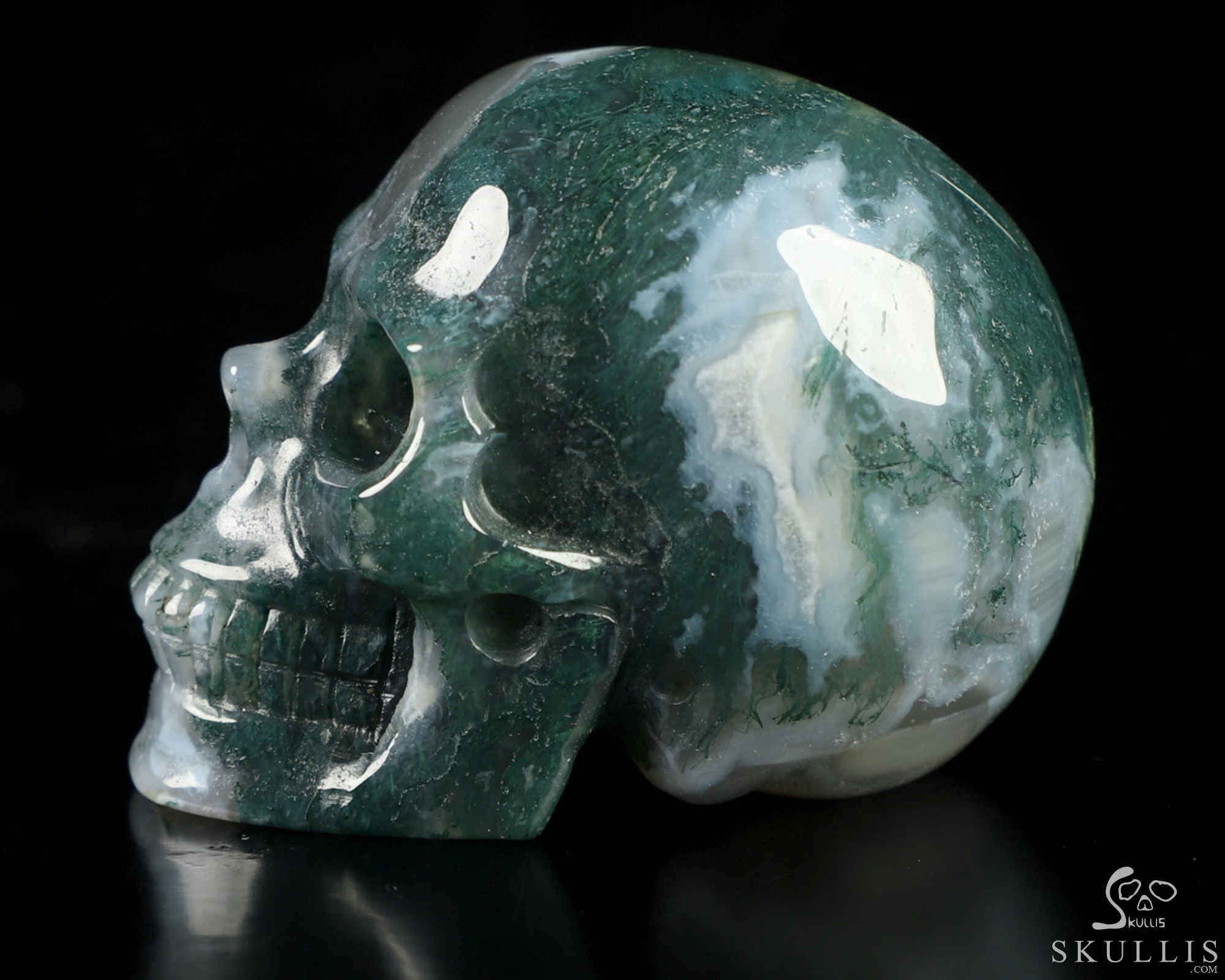 2.0" Green Moss Agate Hand Carved Crystal Skull, Realistic, Crystal Healing