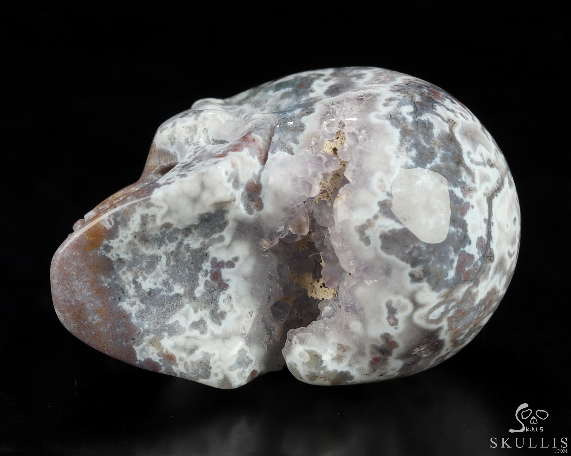 You are looking at a Green Moss Agate skull. The skull is 2 inches from front to back.