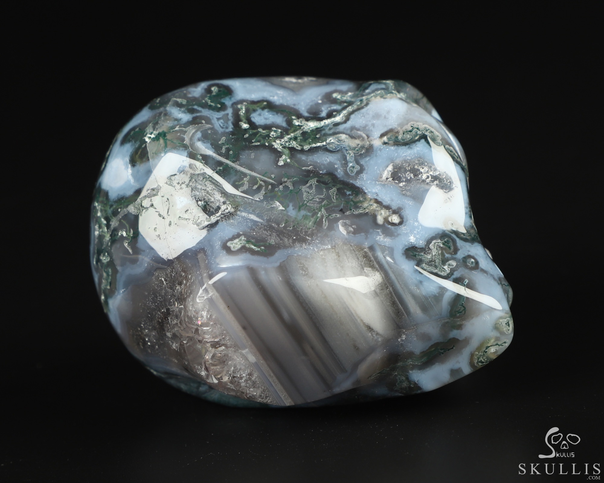 You are looking at a Green Moss Agate skull. The skull is 2 inches from front to back.