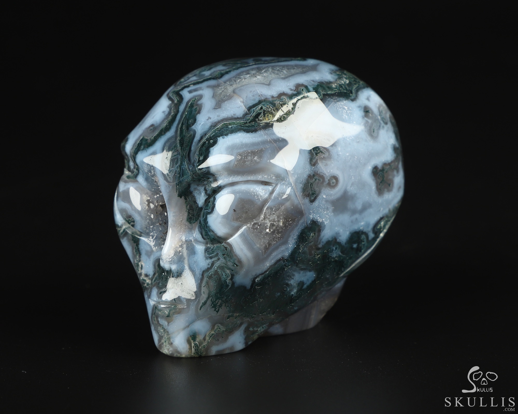 2.0" Green Moss Agate Hand Carved Crystal Skull, Realistic, Crystal Healing