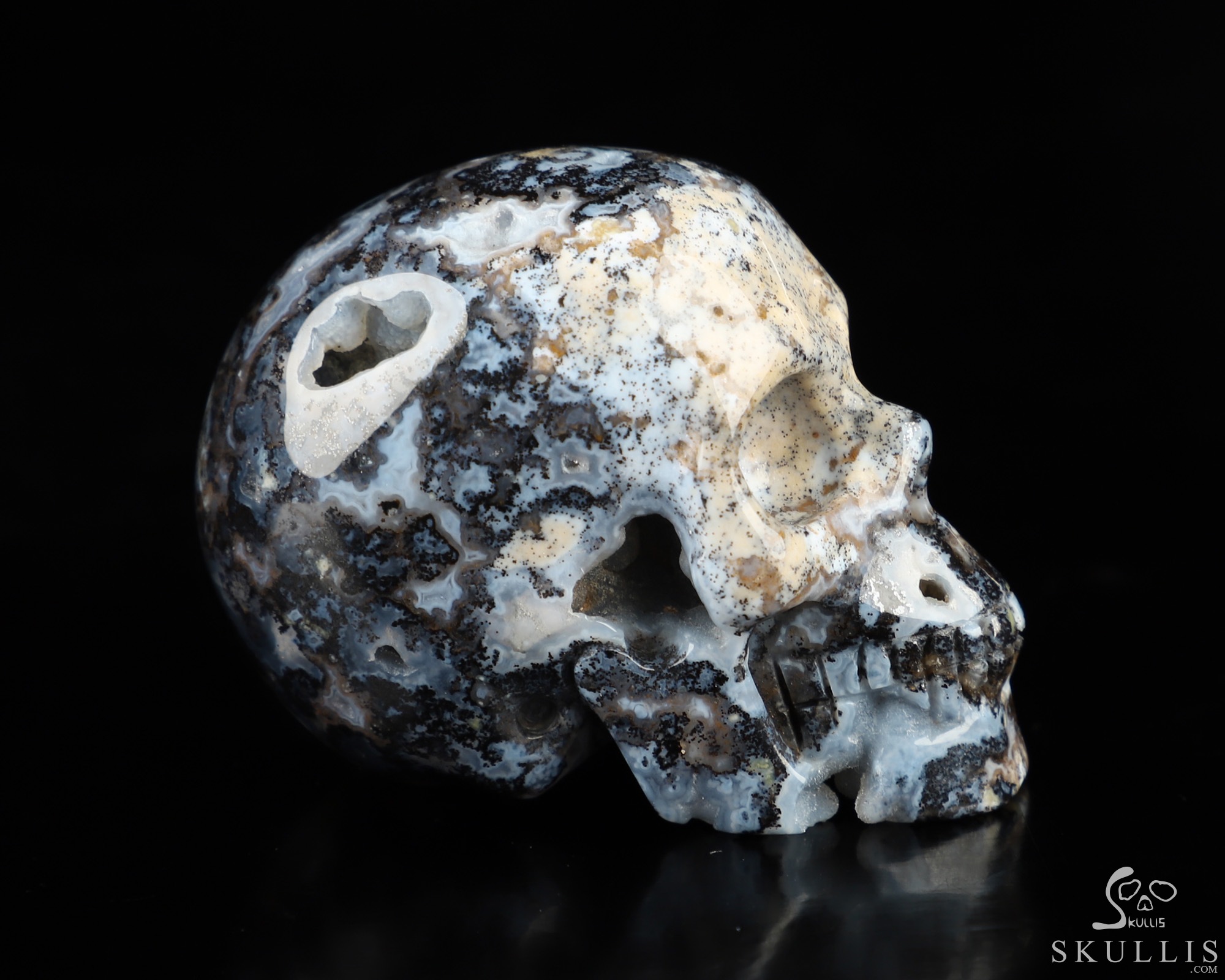 2.0" Indian Agate Hand Carved Crystal Skull, Realistic, Crystal Healing