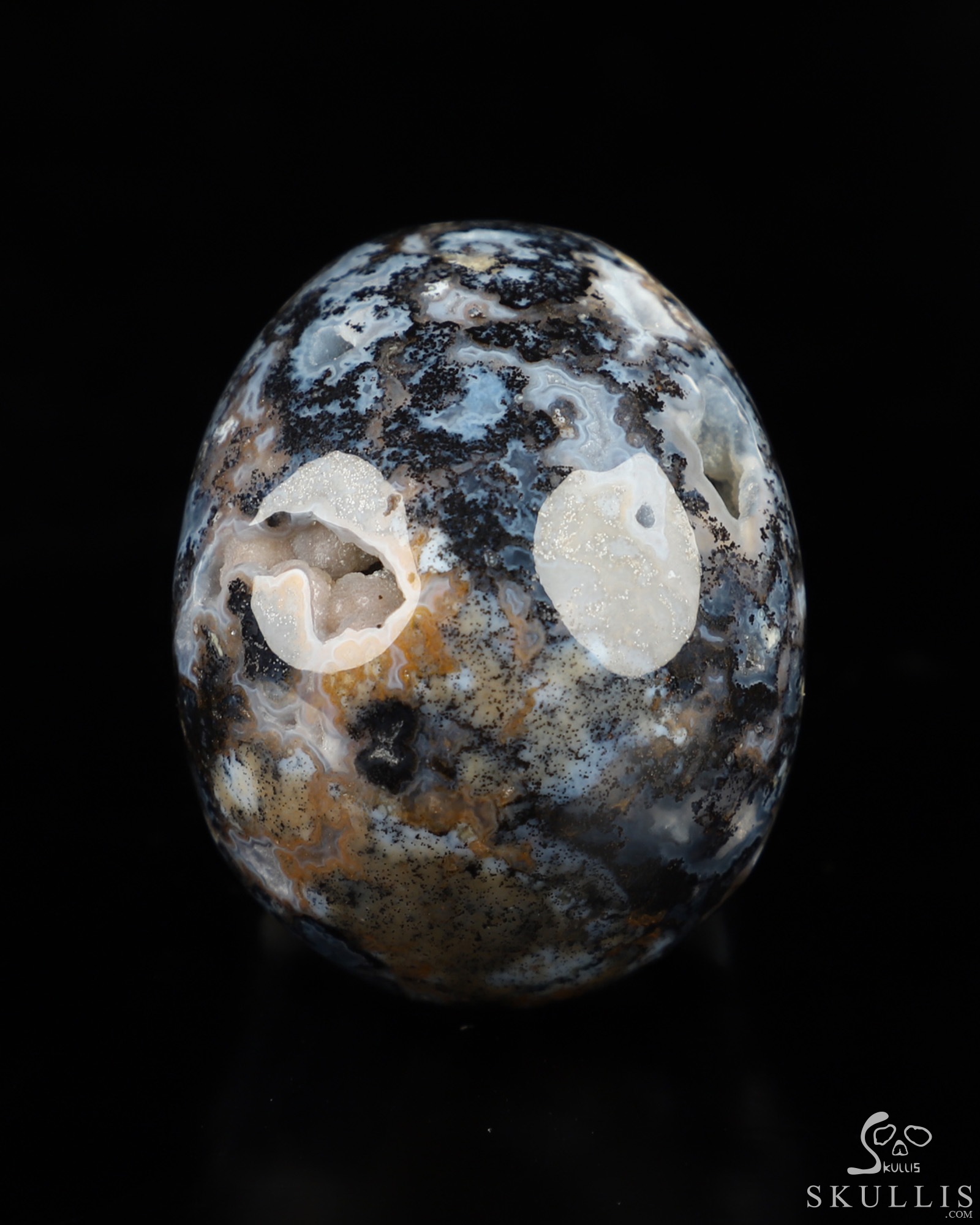 5.9" Indian Agate Hand Carved Guardian Crystal Skull Sculpture, Crystal Healing