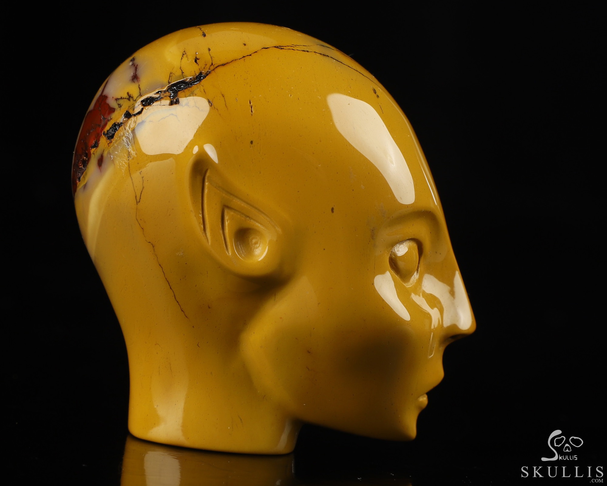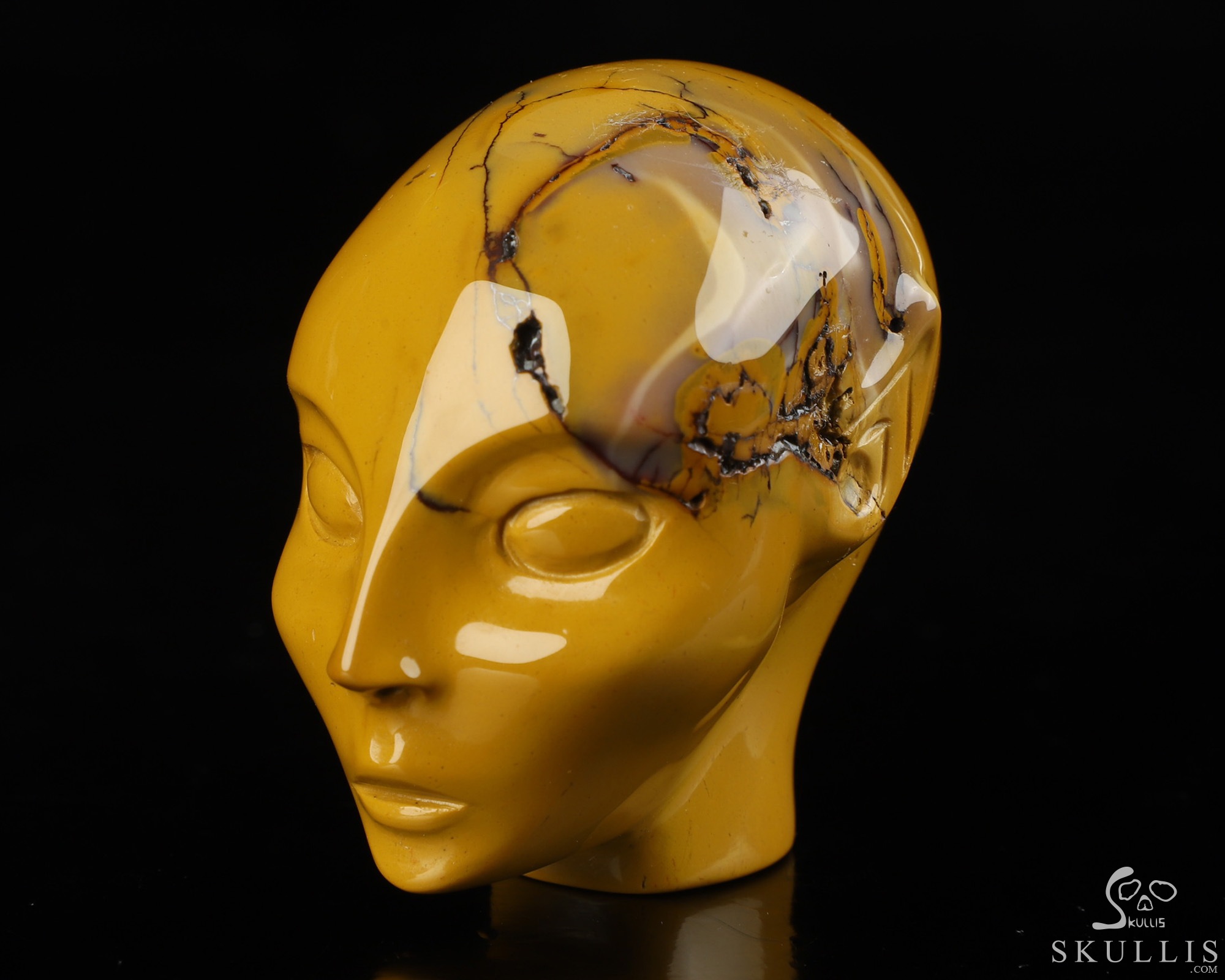 Huge 4.2" Mookaite Jasper Star Being Female Alien Crystal Skull Companion with Black ObsidianEyes, Hand Carved Gemstone Fine Art Sculpture,, Reiki Healing Stone Statue