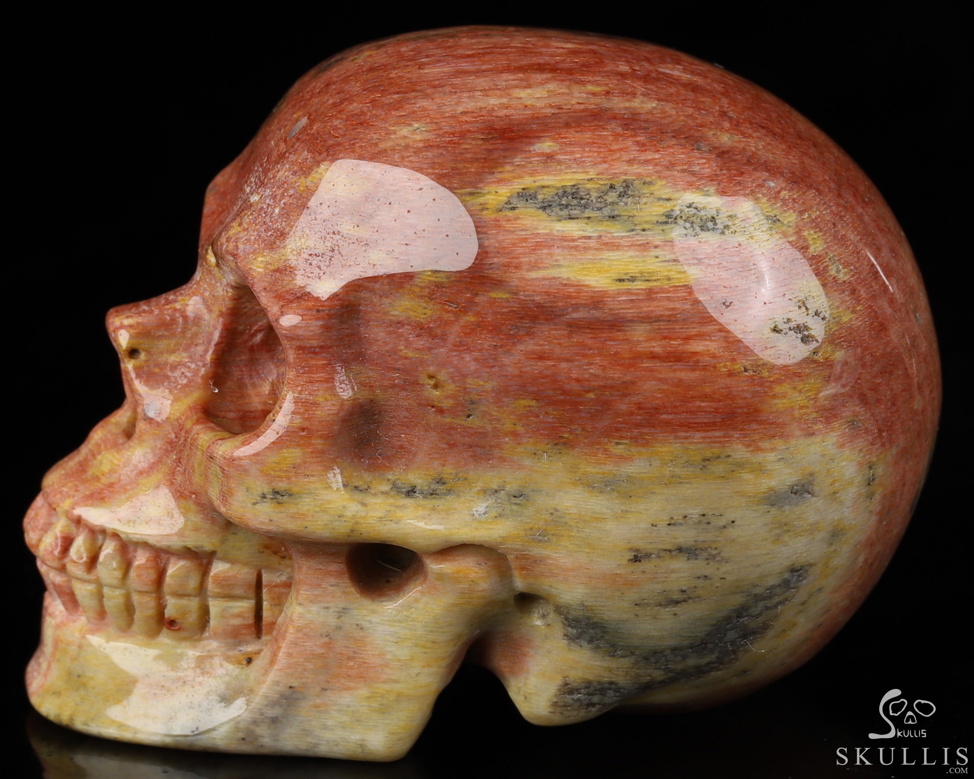 4.6" Petrified Wood Carved Crystal Skull & Butterfly,Realistic, Crystal Healing