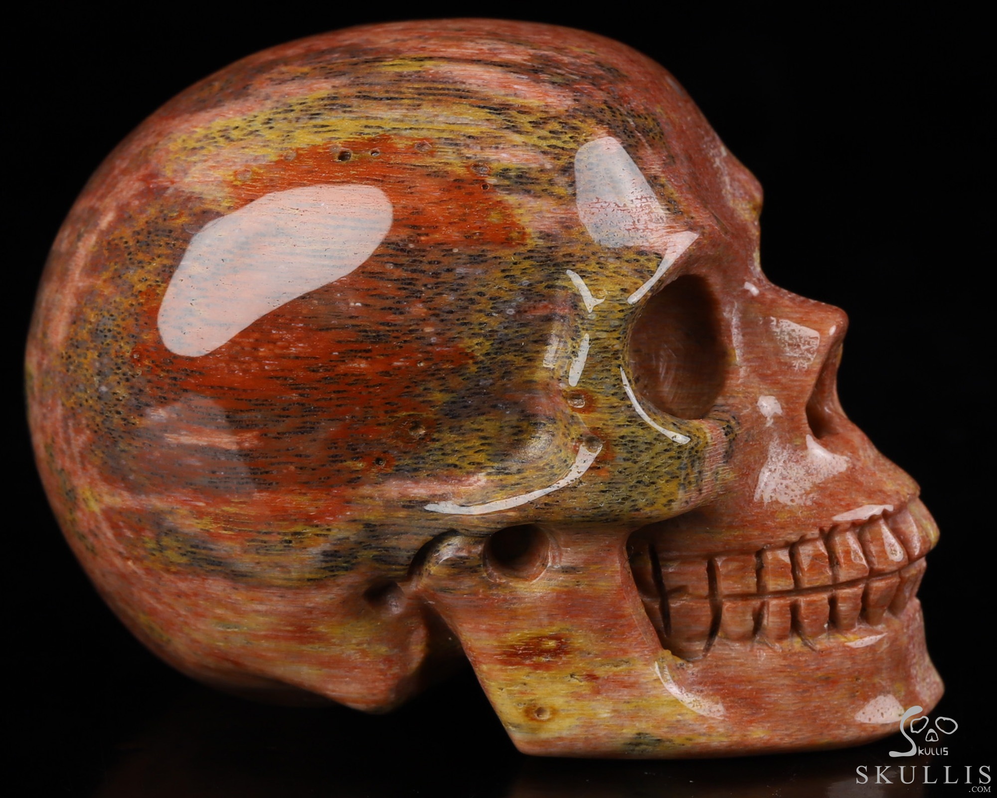 2.0" Petrified Wood Hand Carved Crystal Skull, Realistic, Crystal Healing