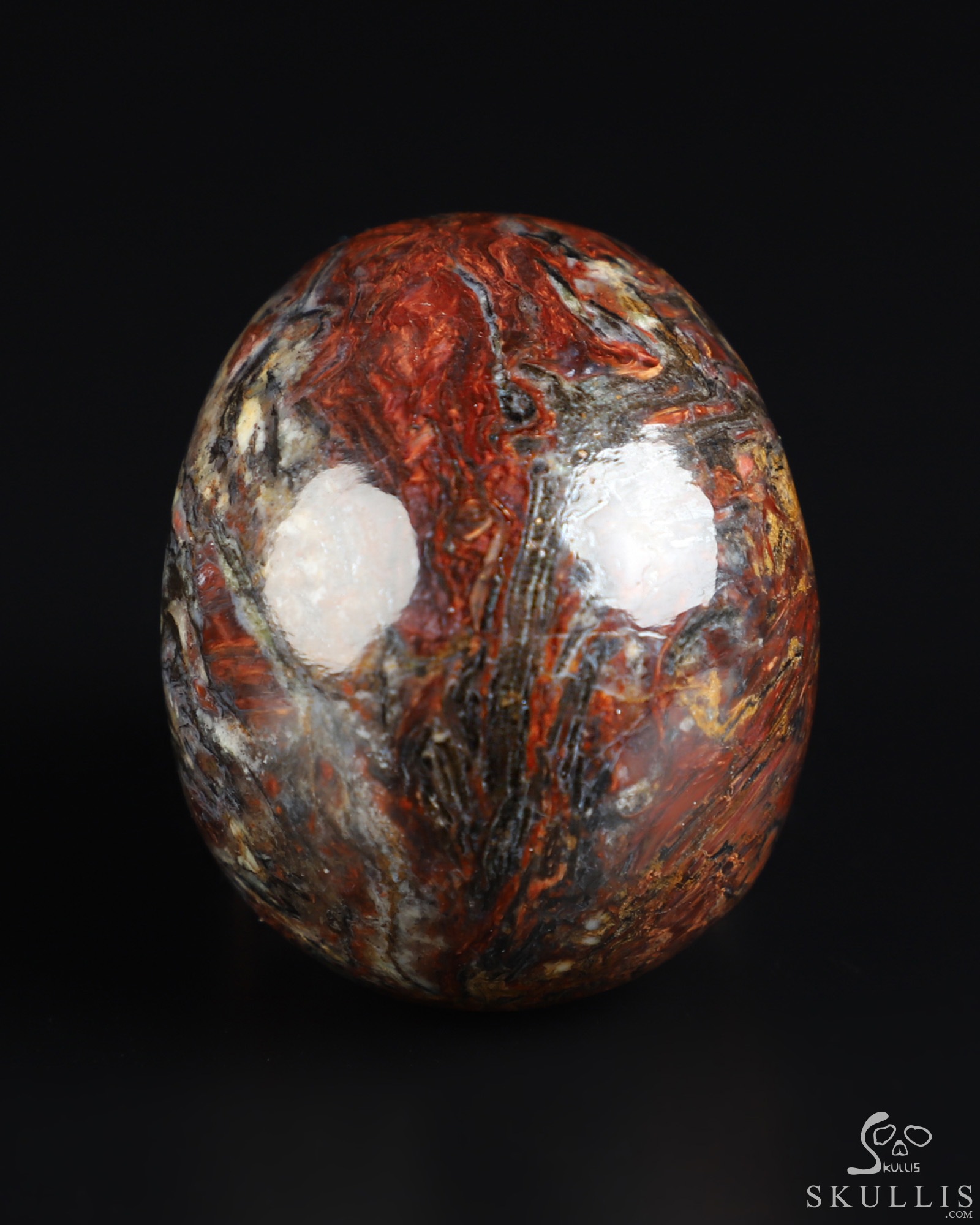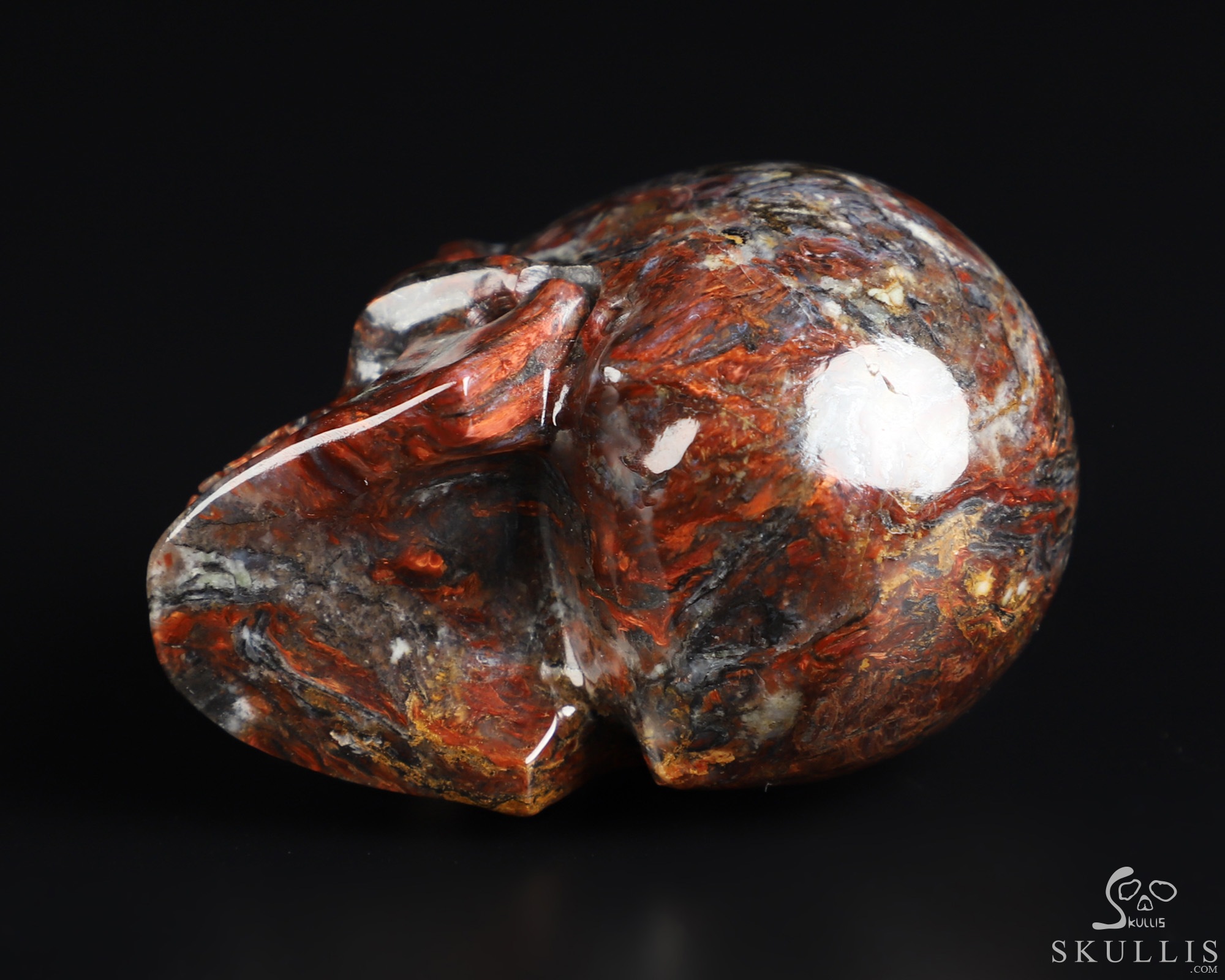 You are looking at a Pietersite skull. The skull is 2 inches from front to back.