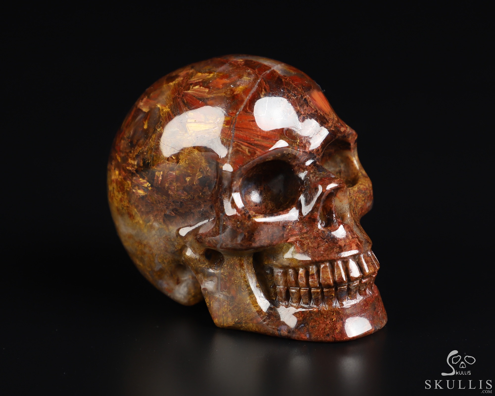 Amazing Flash Gemstone 1.4" Pietersite Carved Crystal Skull