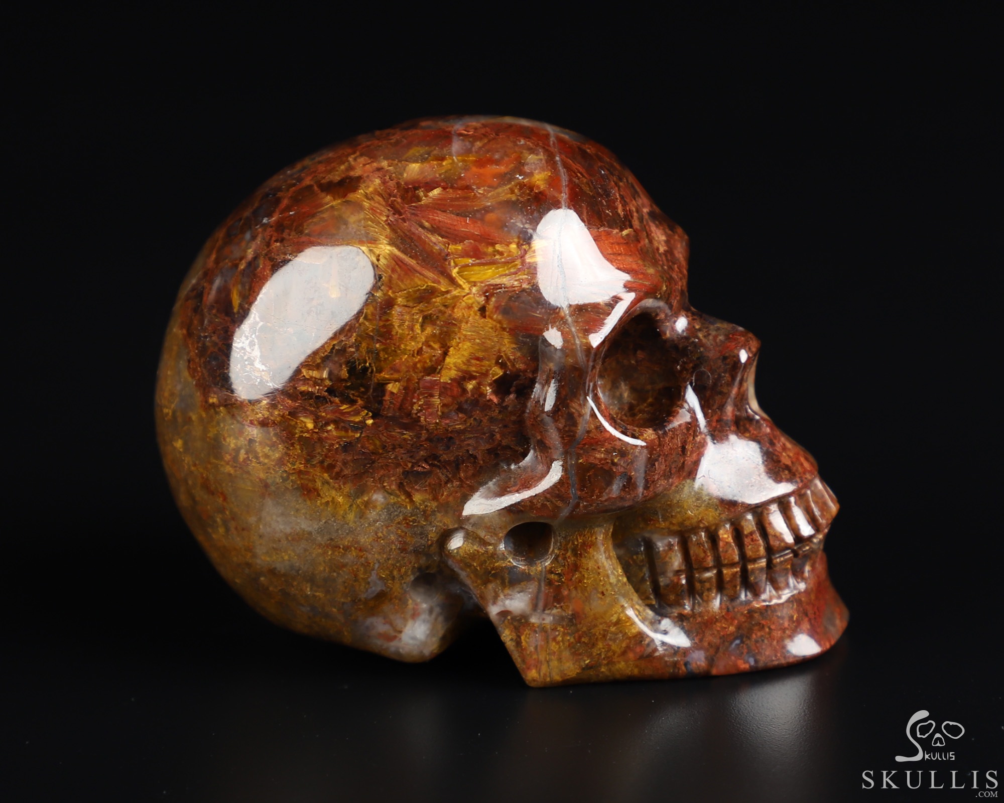 Amazing Flash Gemstone 4.8" Pietersite Carved Crystal Skulls Sculpture