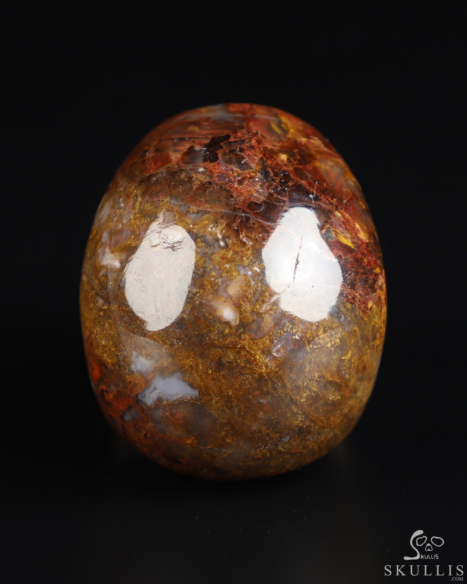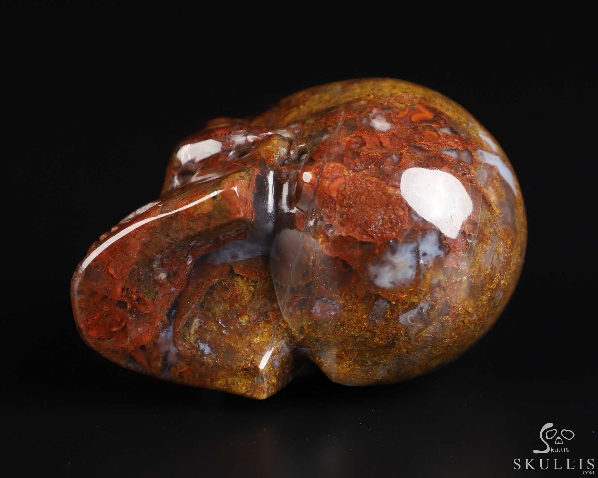 You are looking at a Pietersite skull. The skull is 2 inches from front to back.