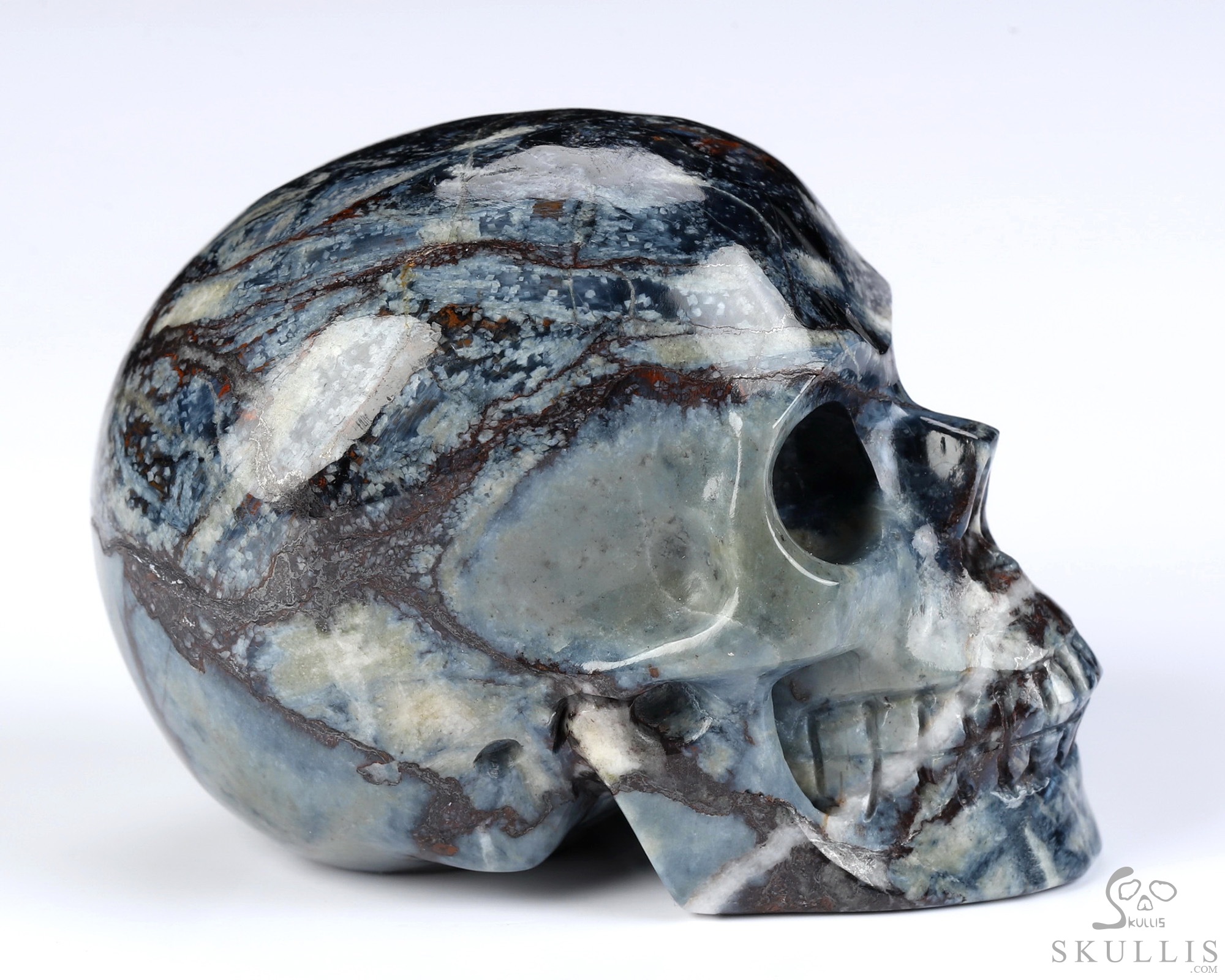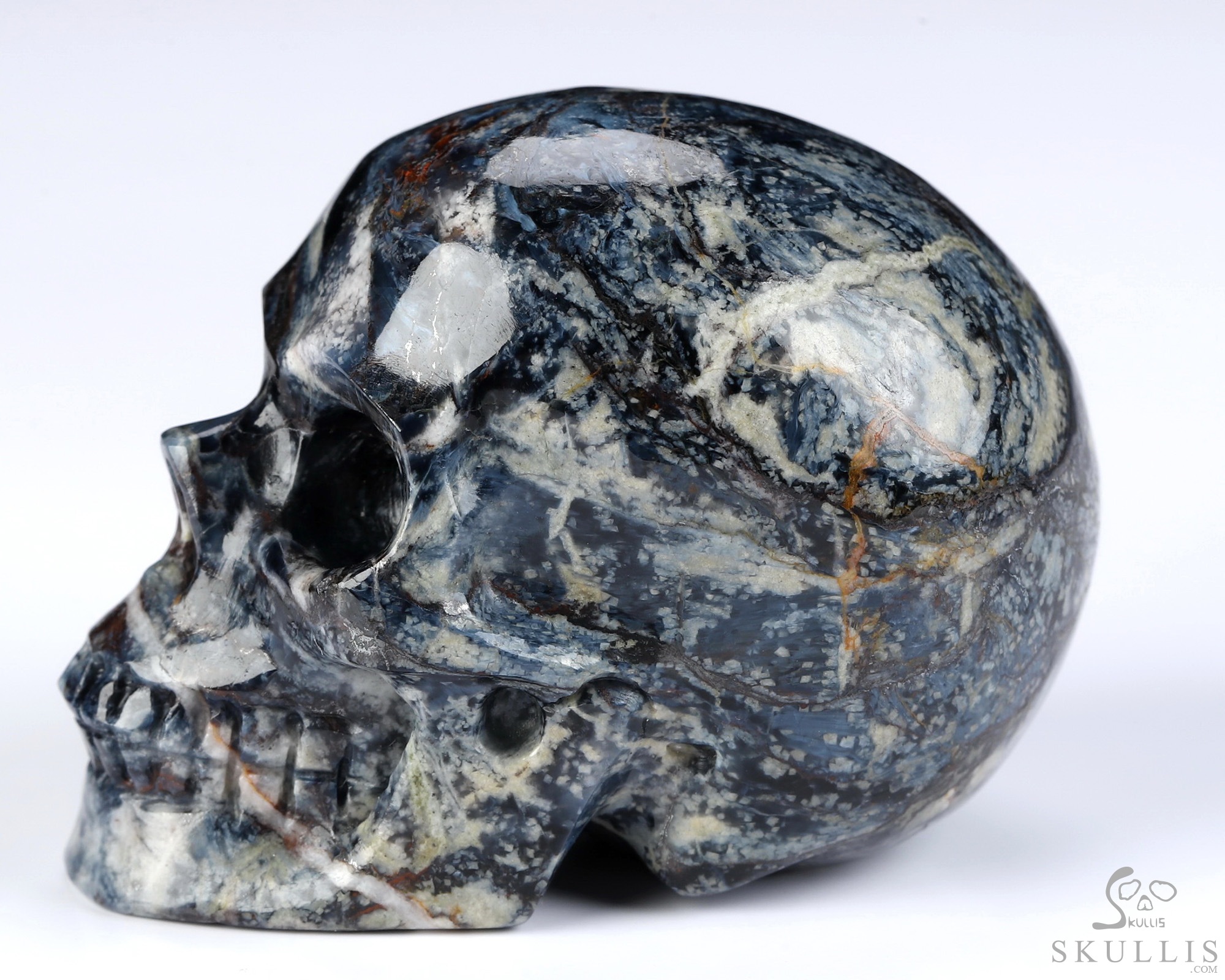 Gemstone Huge 5.6" Pietersite Carved Crystal Skull, Super Realistic