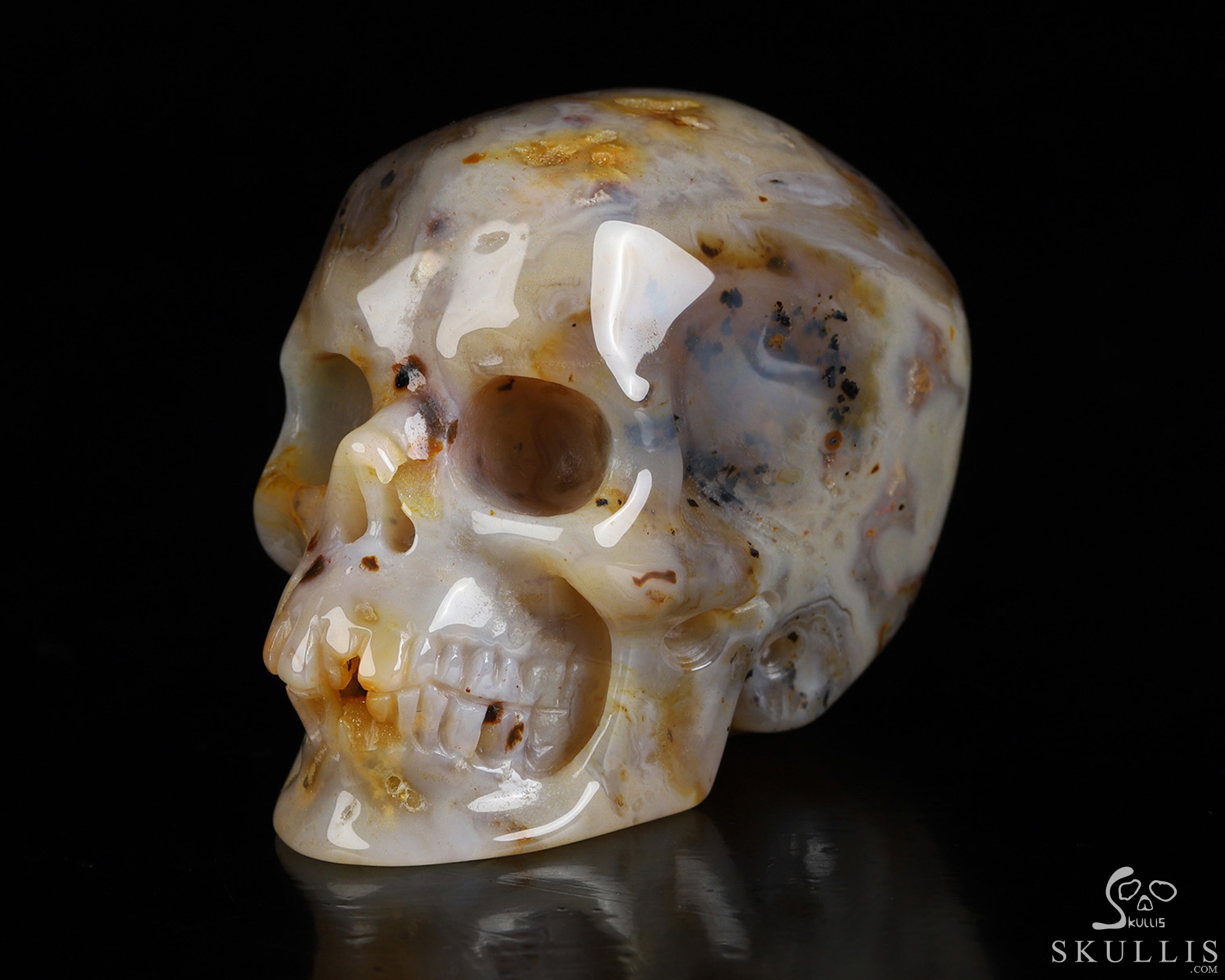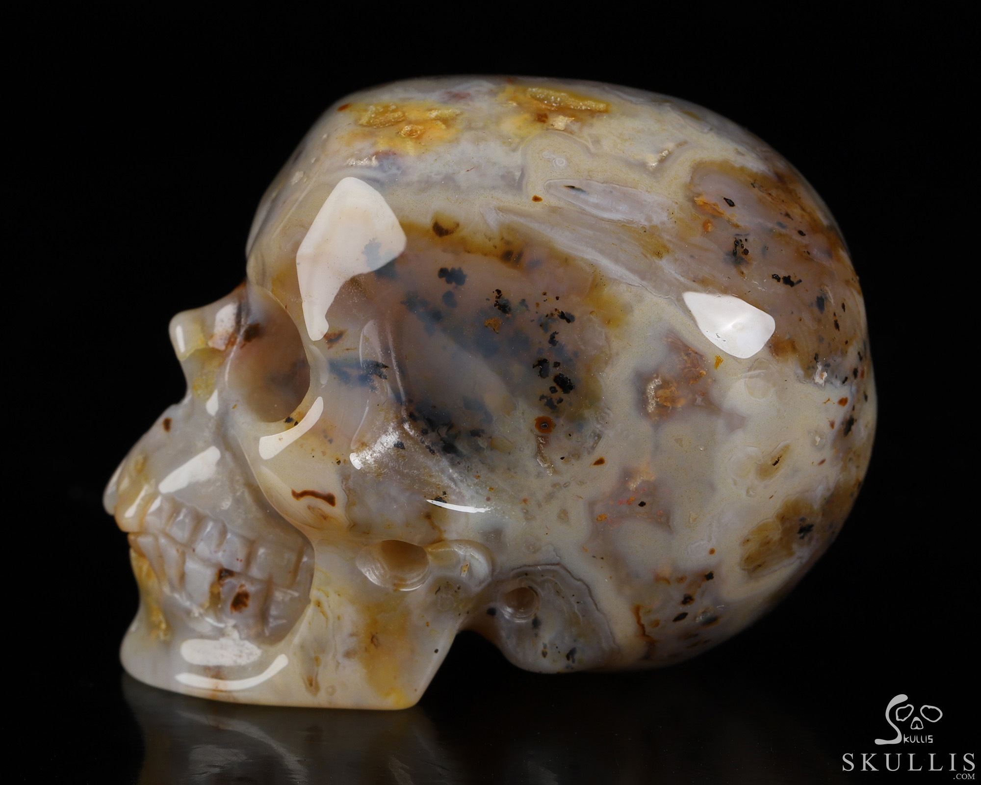 5.1" Premium Brazilian Agate Hand Carved Crystal Skull, Super Realistic, Crystal Healing