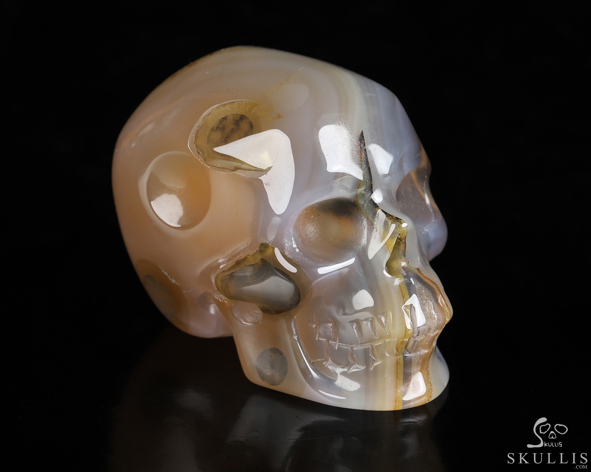 2.0" Premium Brazilian Agate Hand Carved Crystal Skull, Realistic, Crystal Healing