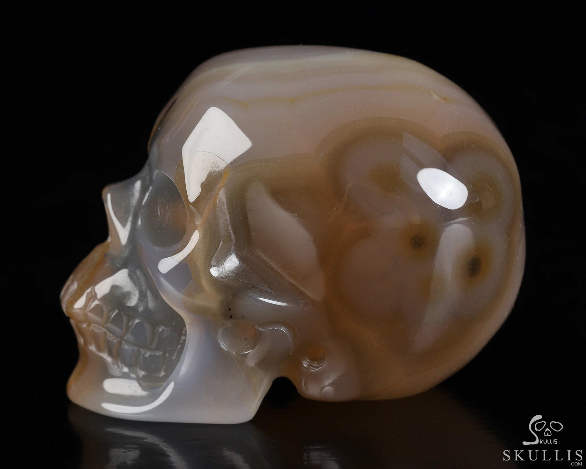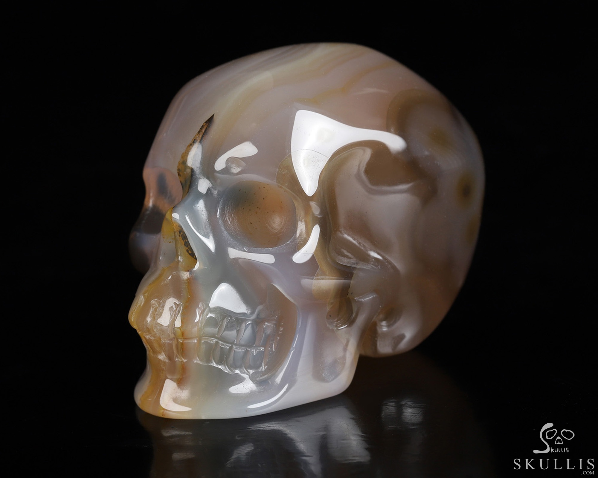5.0" Premium Brazilian Agate Hand Carved Crystal Skull, Realistic, Crystal Healing