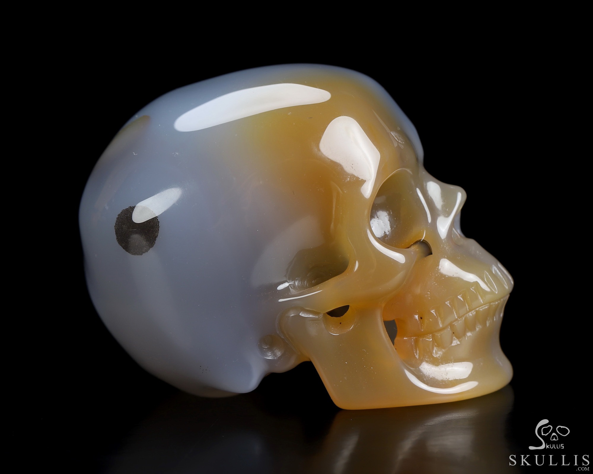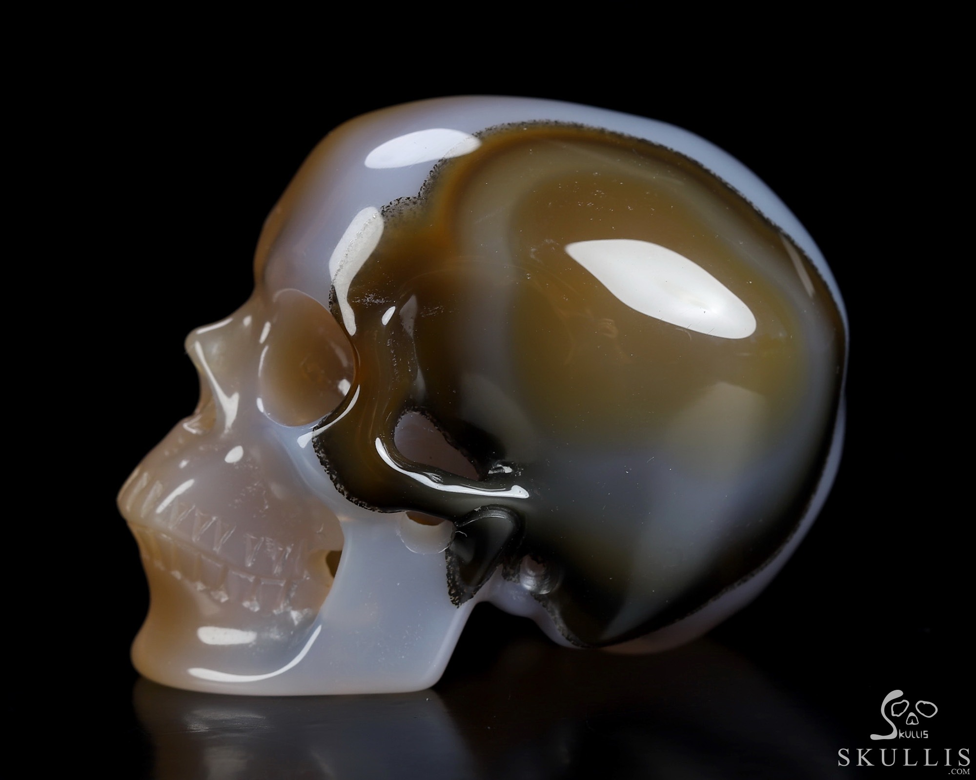 2.0" Premium Brazilian Agate Hand Carved Crystal Skull, Super Realistic, Crystal Healing