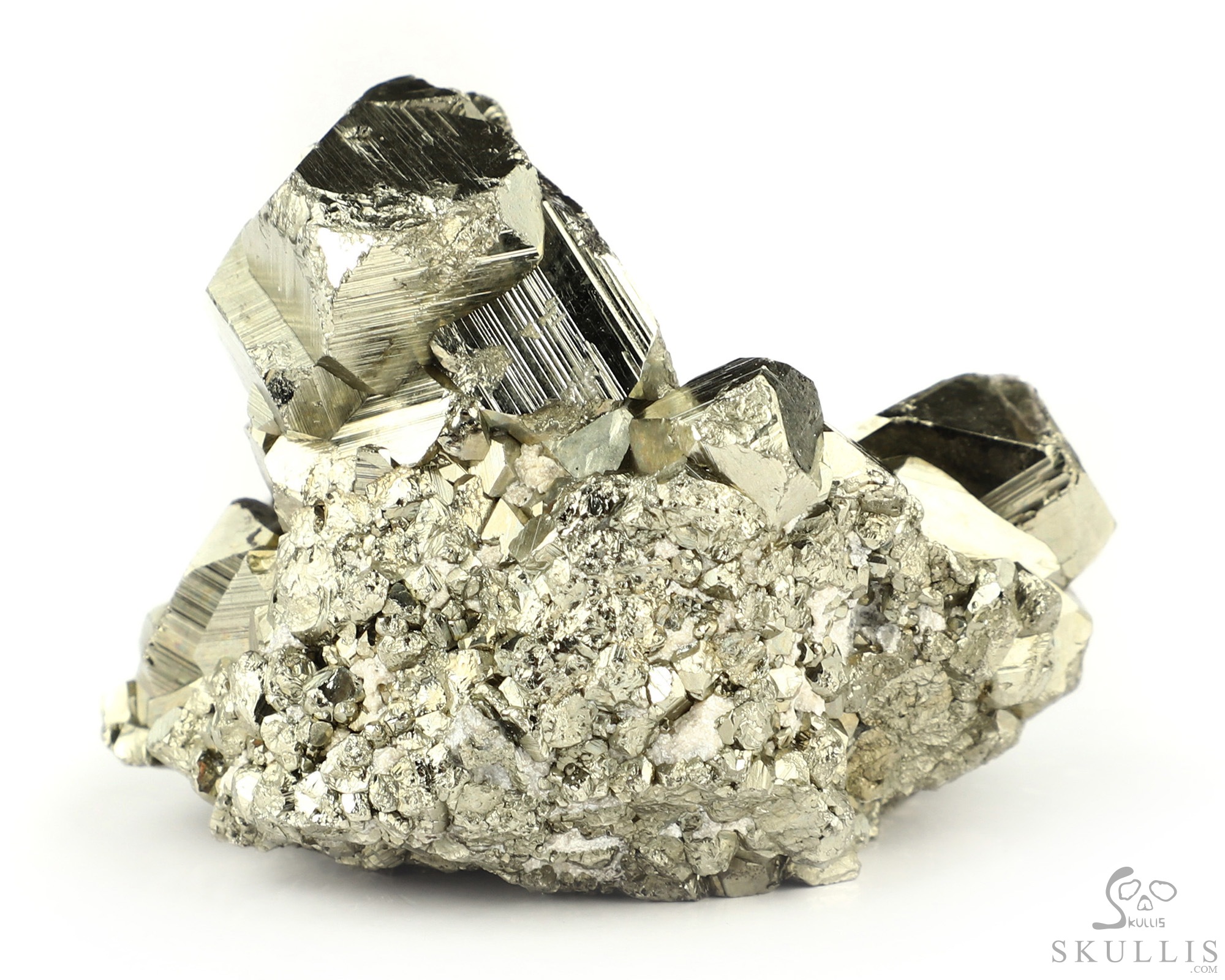 5.0" Pyrite Hand Carved Crystal Skull, Realistic, Crystal Healing