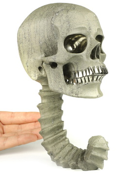 7.6" Pyrite Hand Carved Crystal Skull and Spine Fine Art Sculpture, Crystal Healing