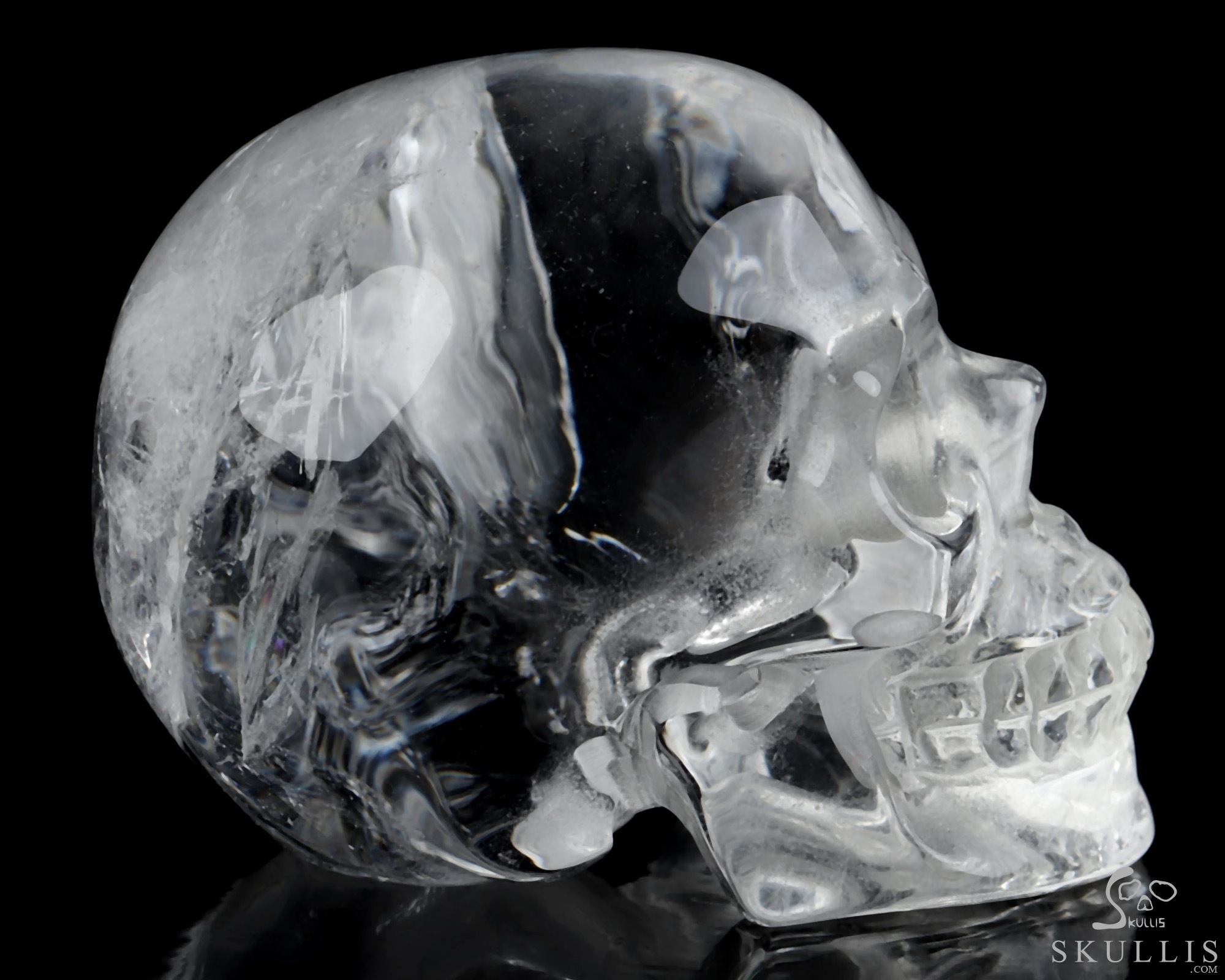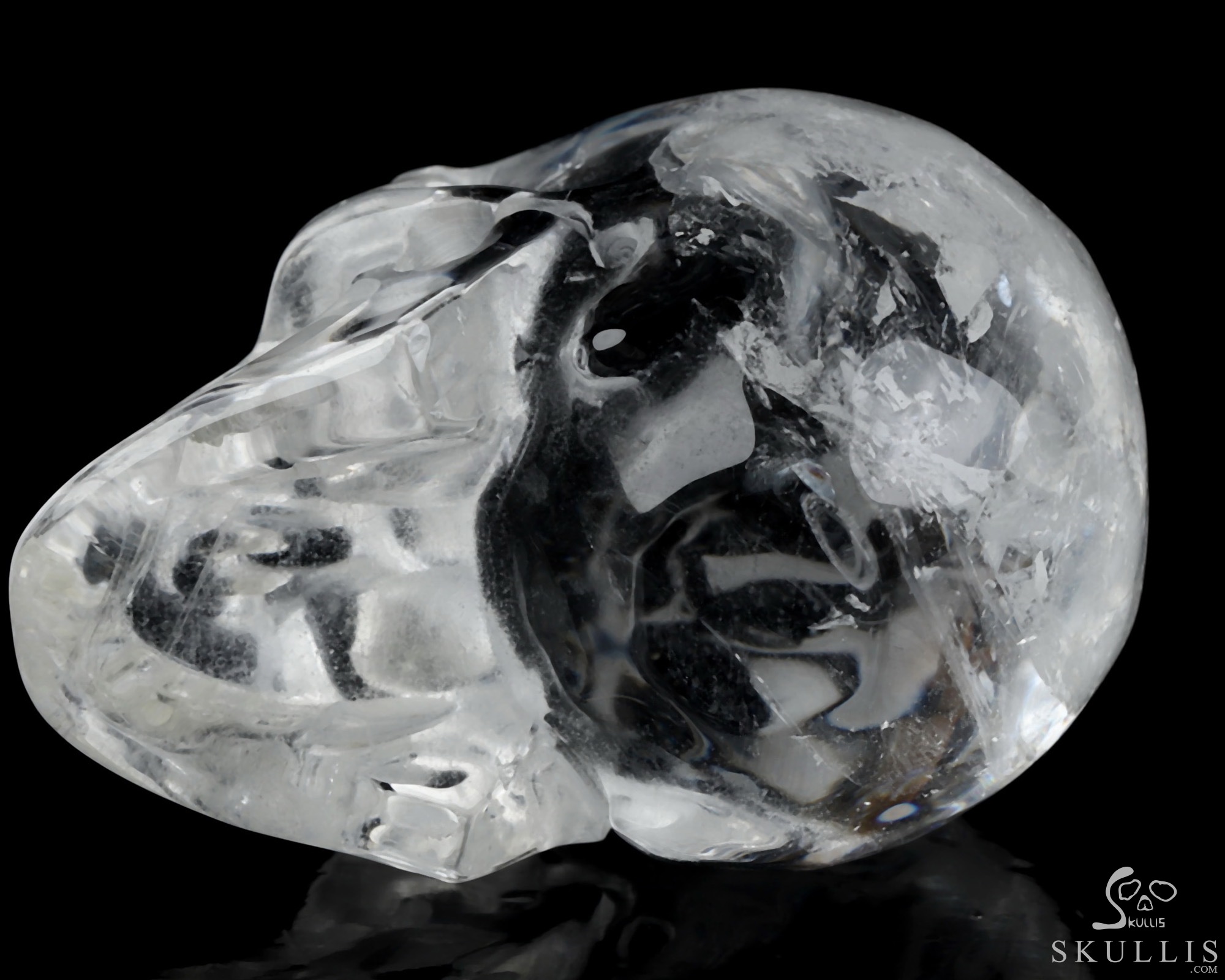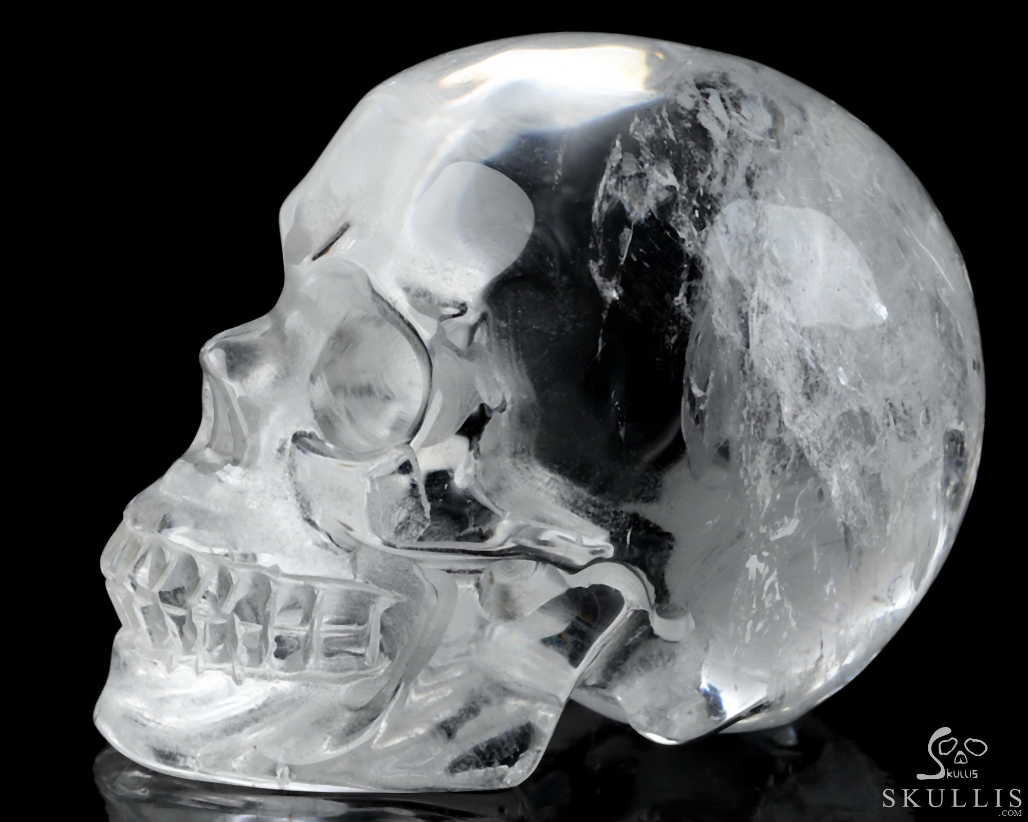 3.3" Clear Quartz Rock Crystal Hand Carved Crystal Skull, Super Realistic, Crystal Healing