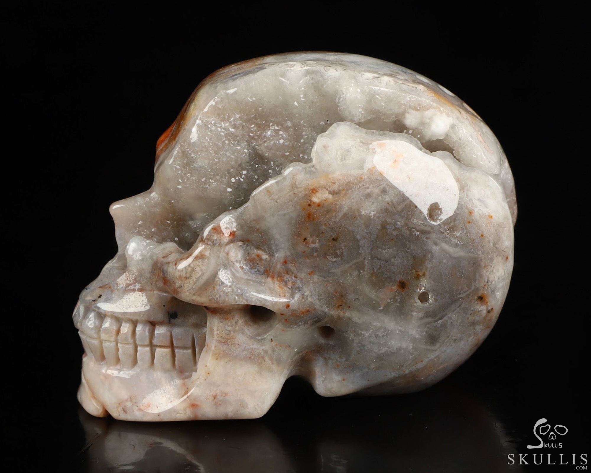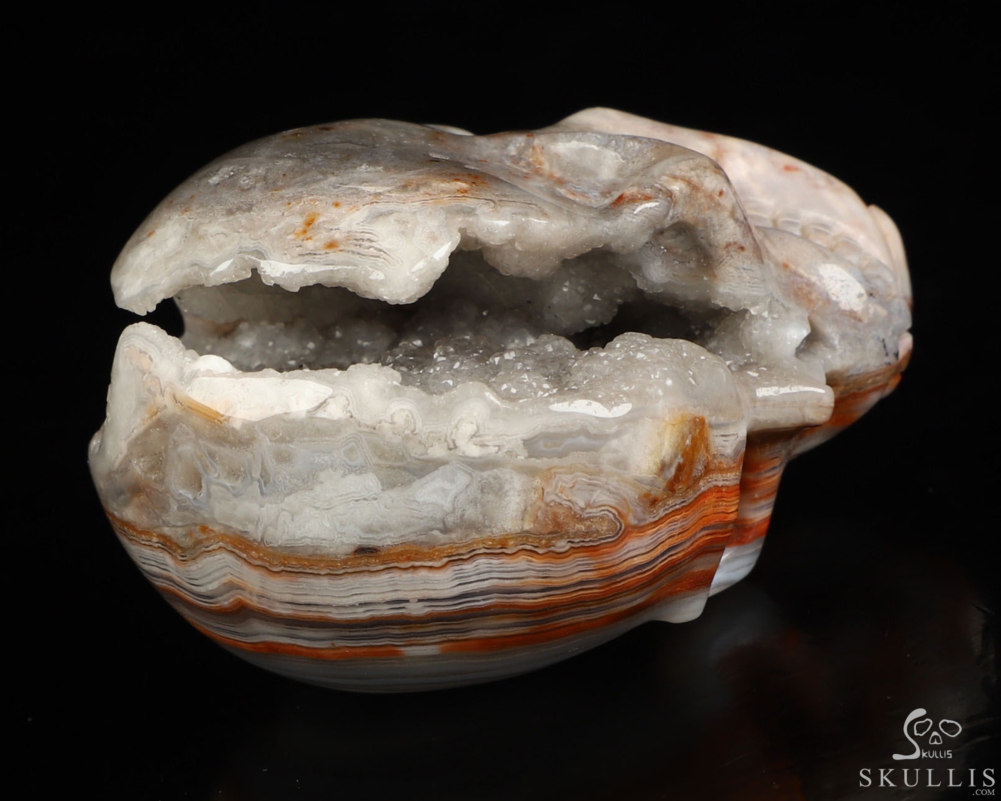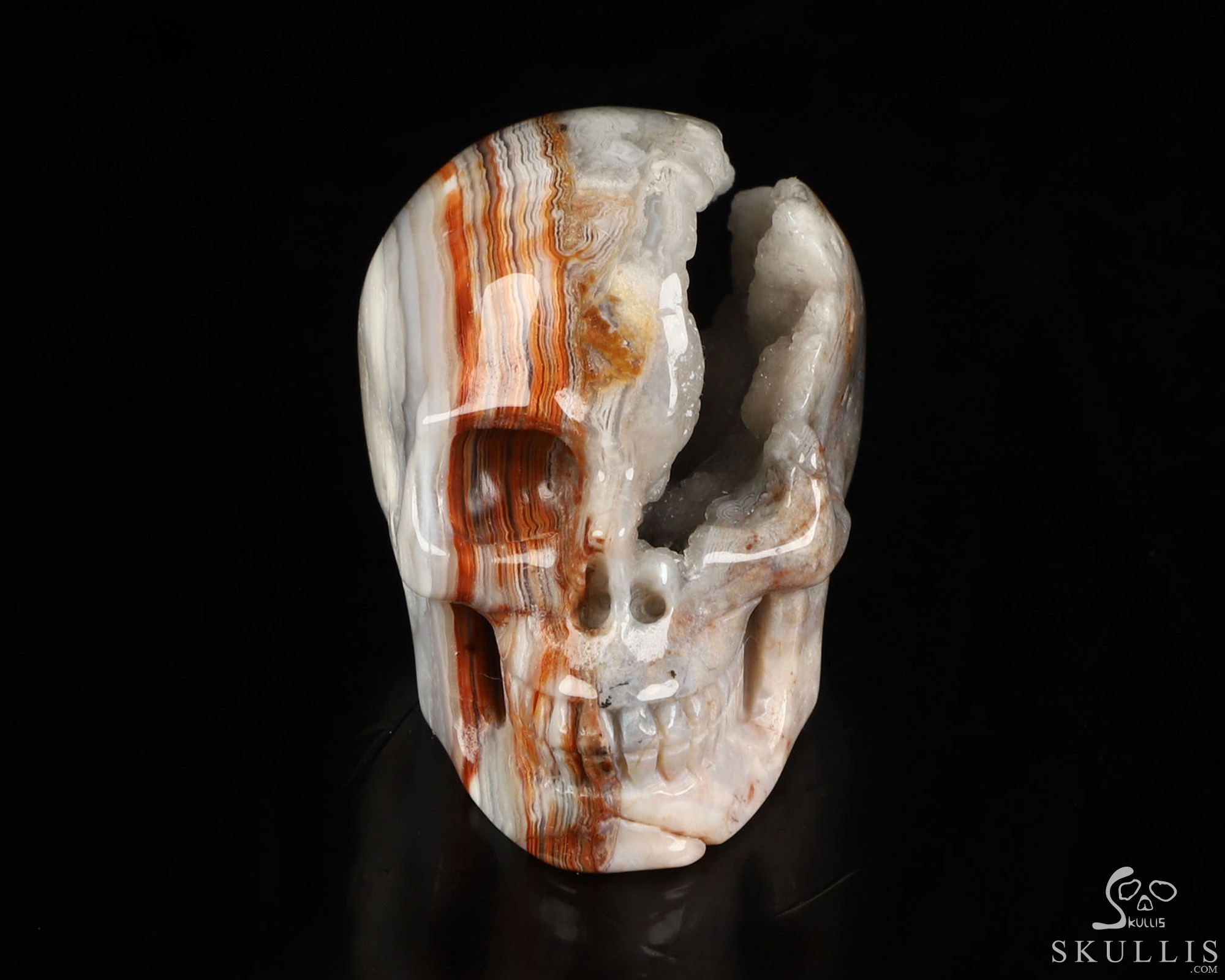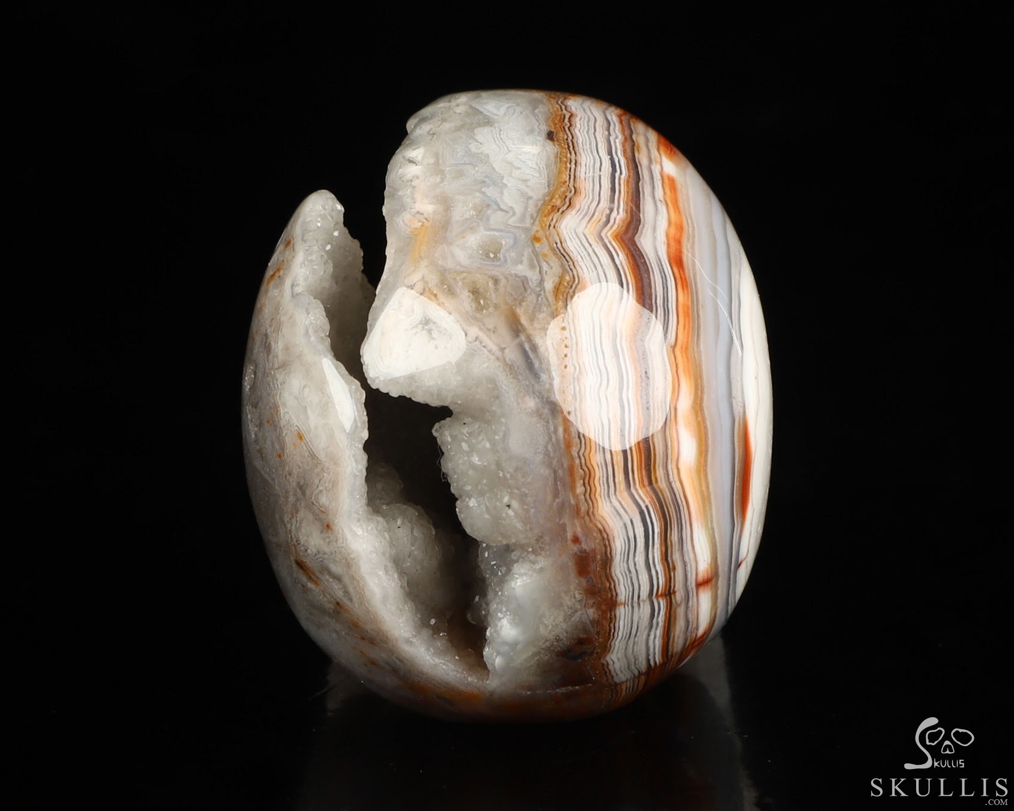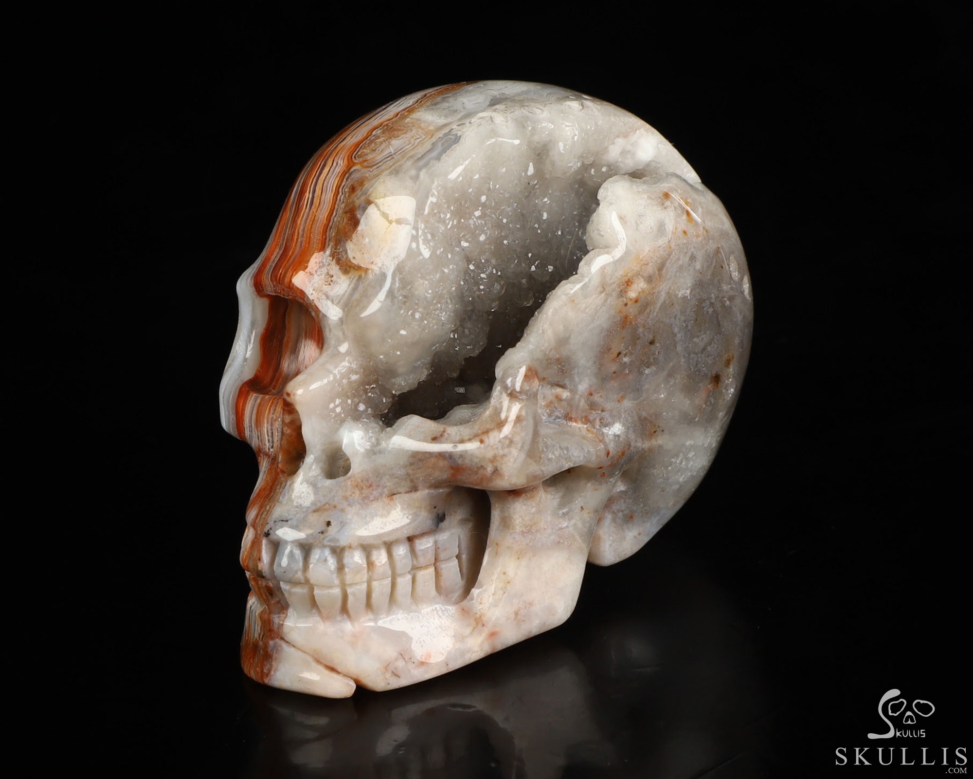 2.0" Red Crazy Lace Agate Geode Hand Carved Crystal Skull, Realistic, Crystal Healing