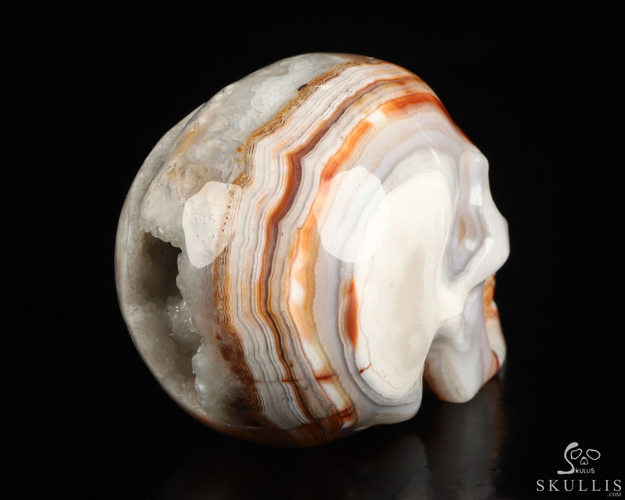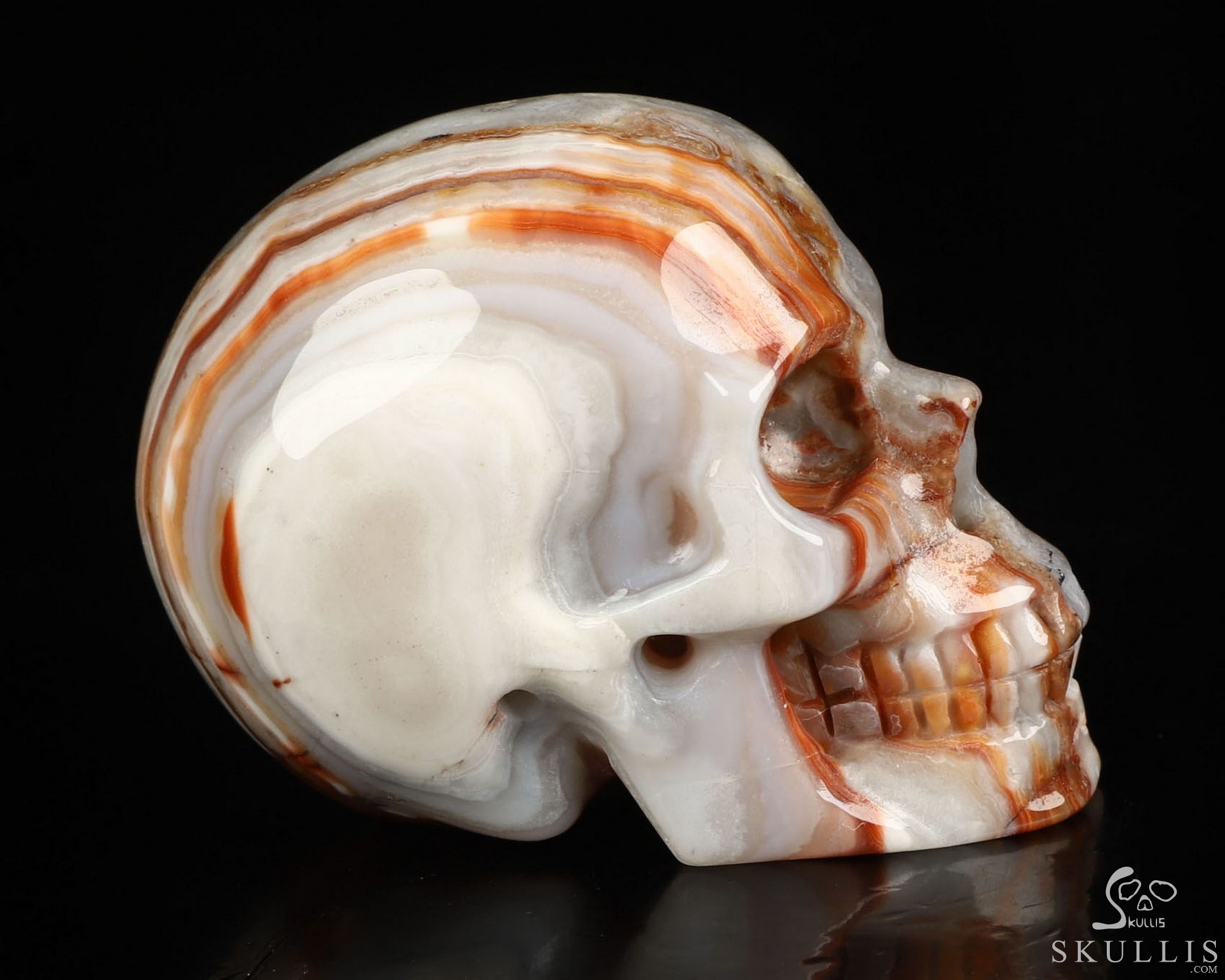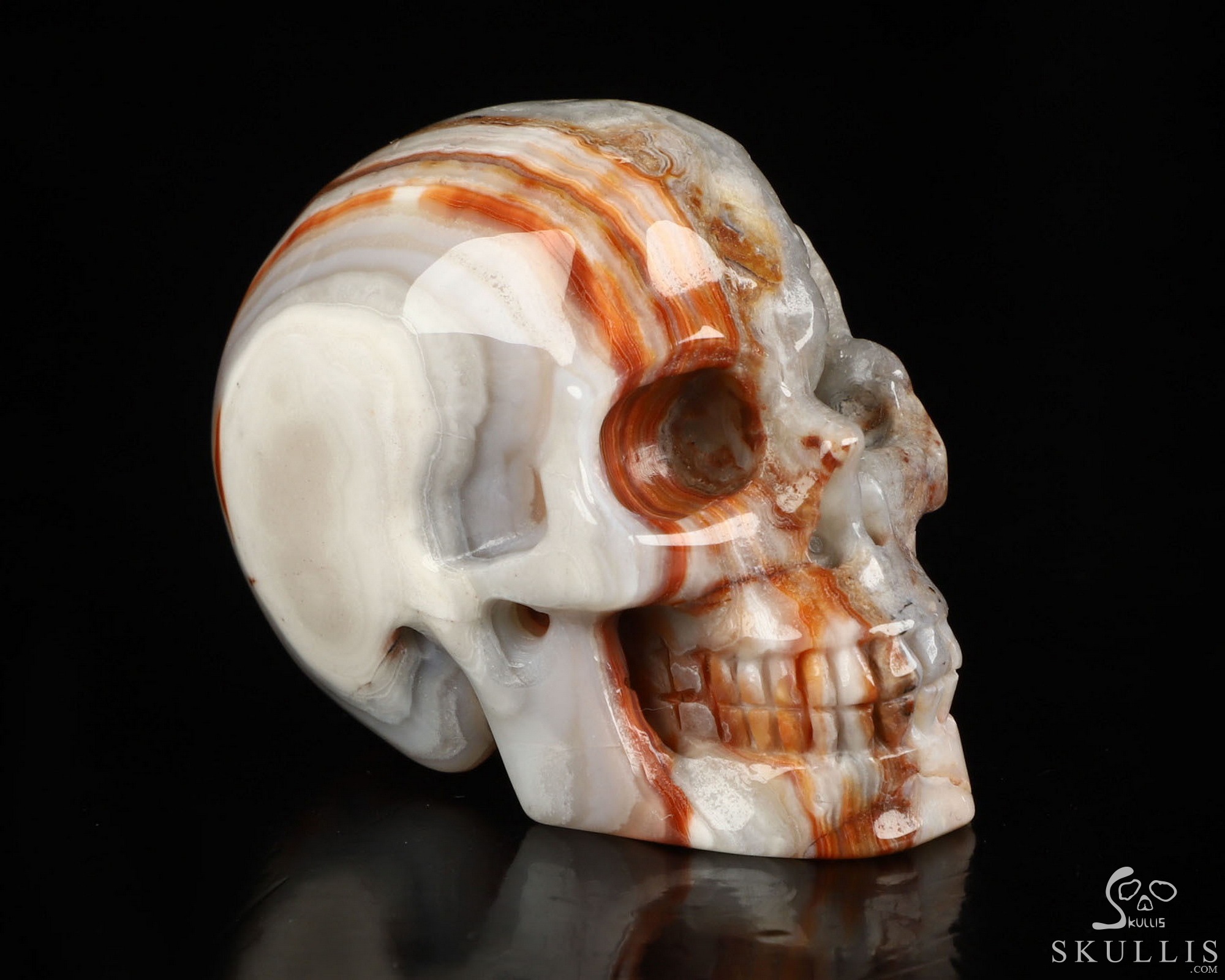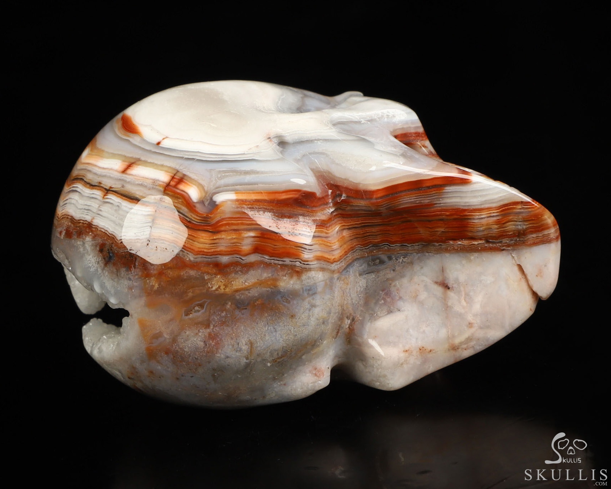 You are looking at a Red Crazy Lace Agate skull. The skull is 2 inches from front to back.