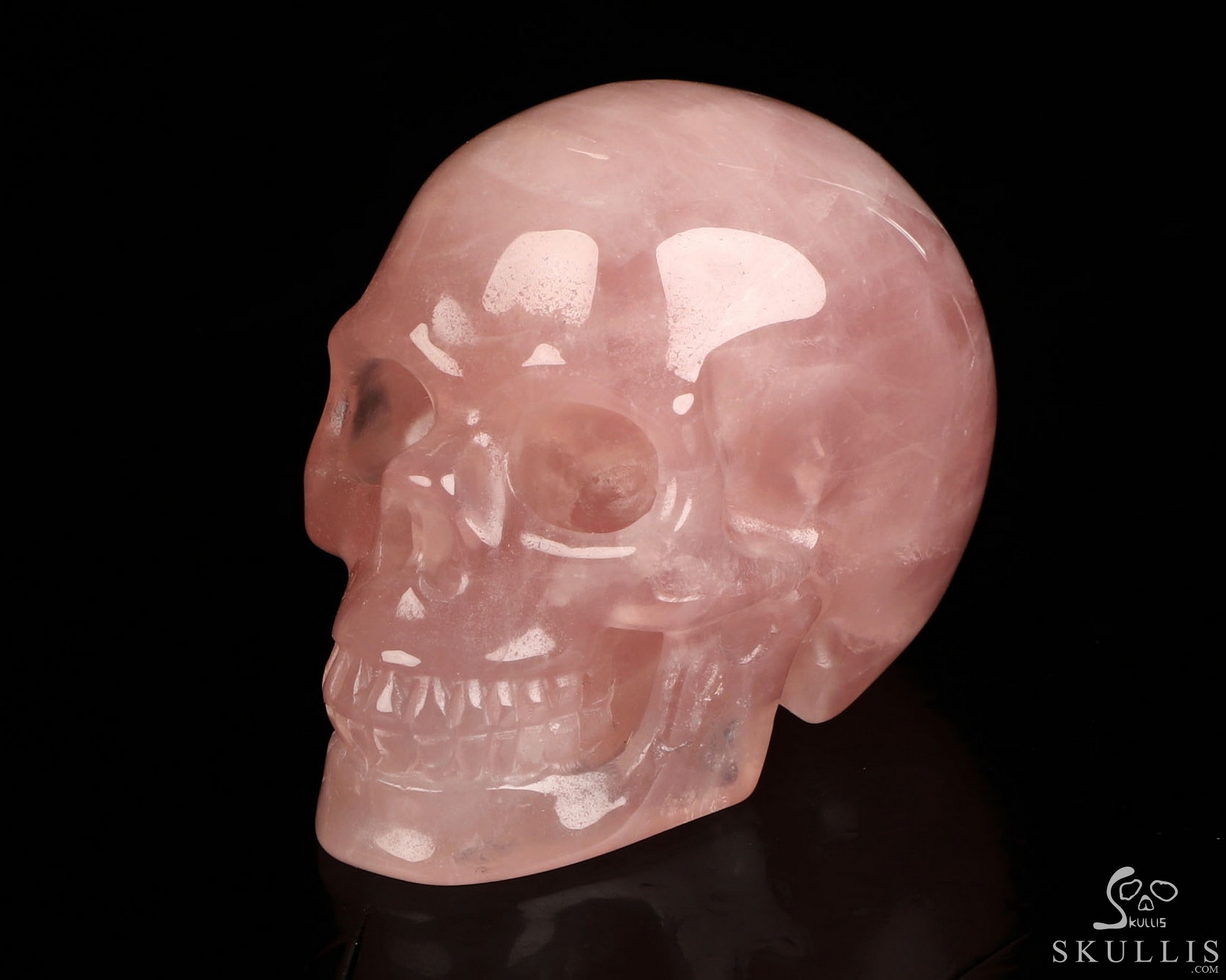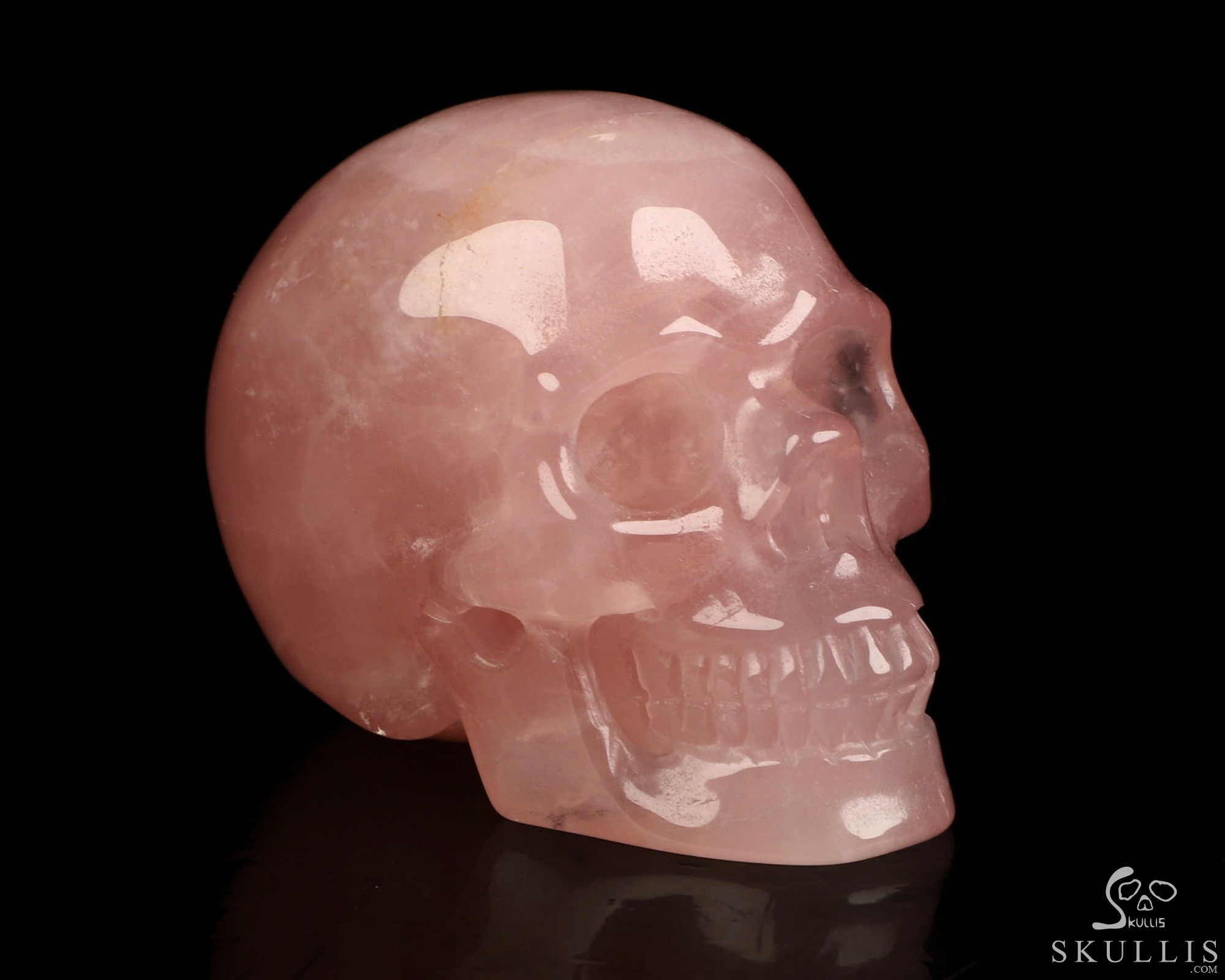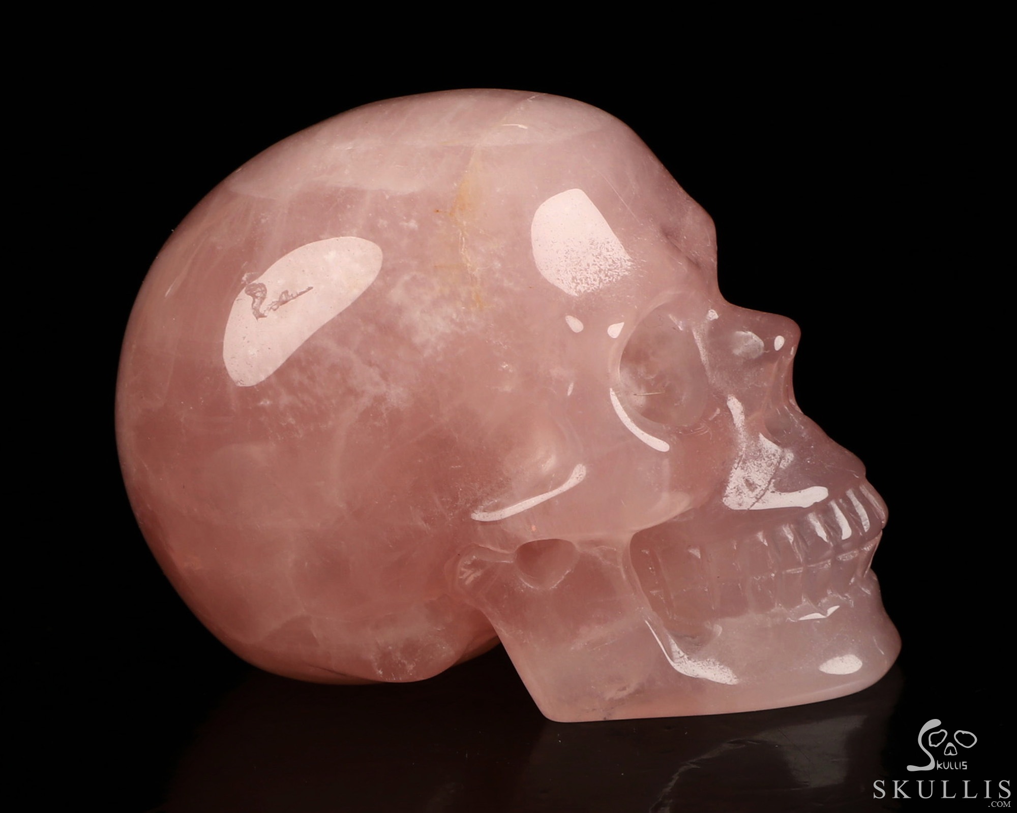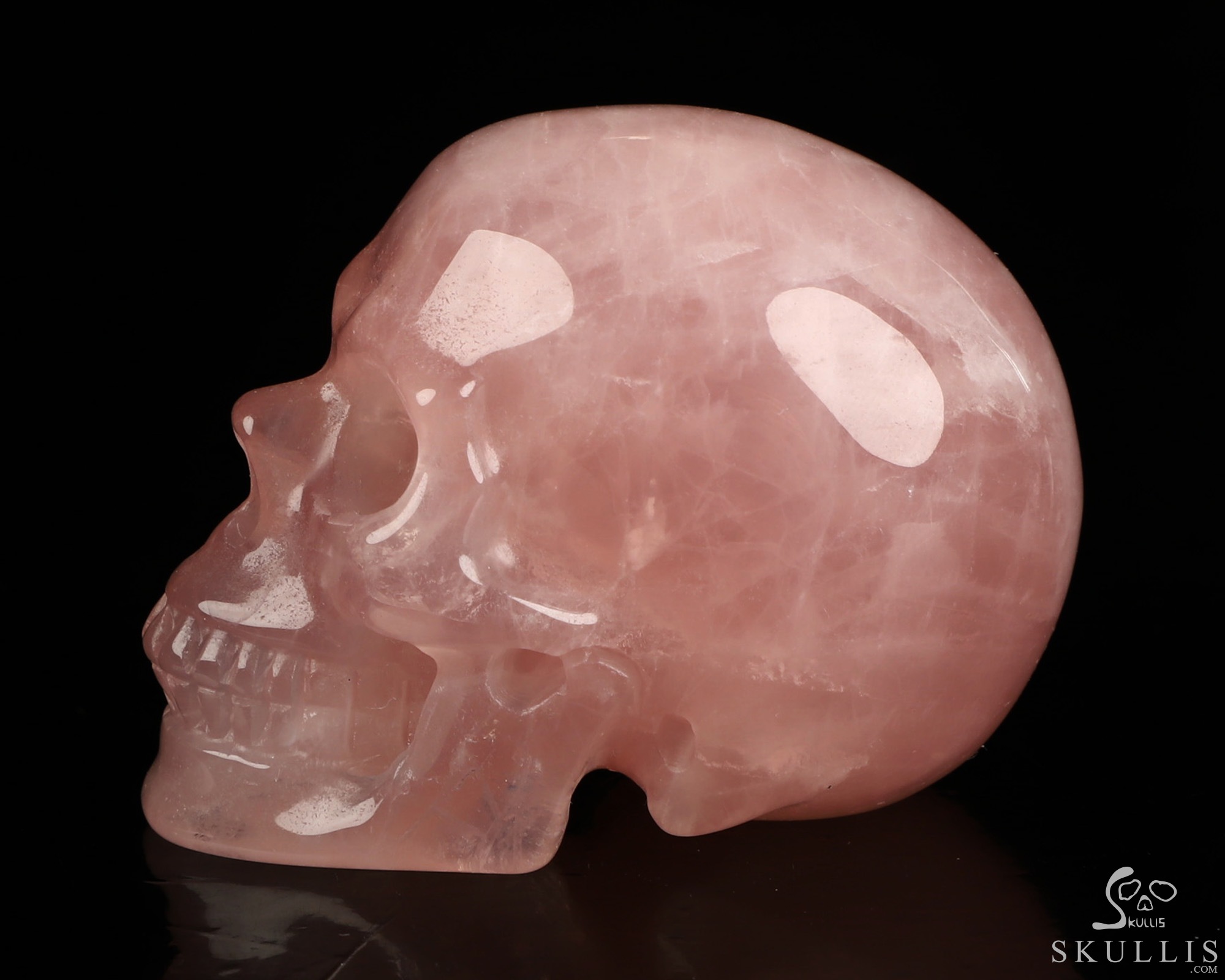 Super Realistic! Lifesized 7.2" Rose Quartz Hand Carved Crystal Skull, Crystal Healing