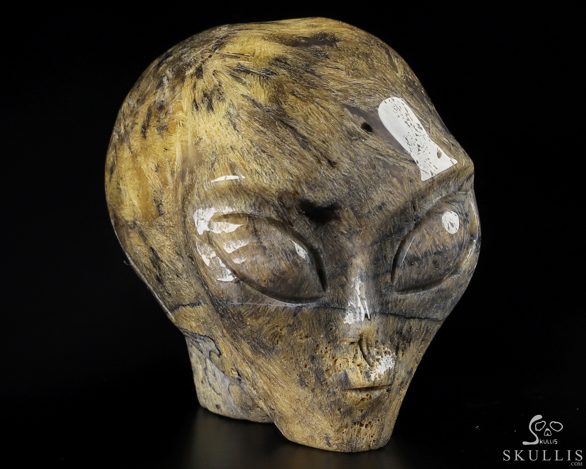 2.0" Sagenitic Japser Star Being Female Alien Crystal Skull Companion, Hand Carved Gemstone Fine Art Sculpture, Reiki Healing Stone Statue