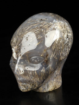 1.7" Sagenitic Japser Hand Carved Fairy Elf Alien Crystal Skull Companion Sculpture, Crystal Healing