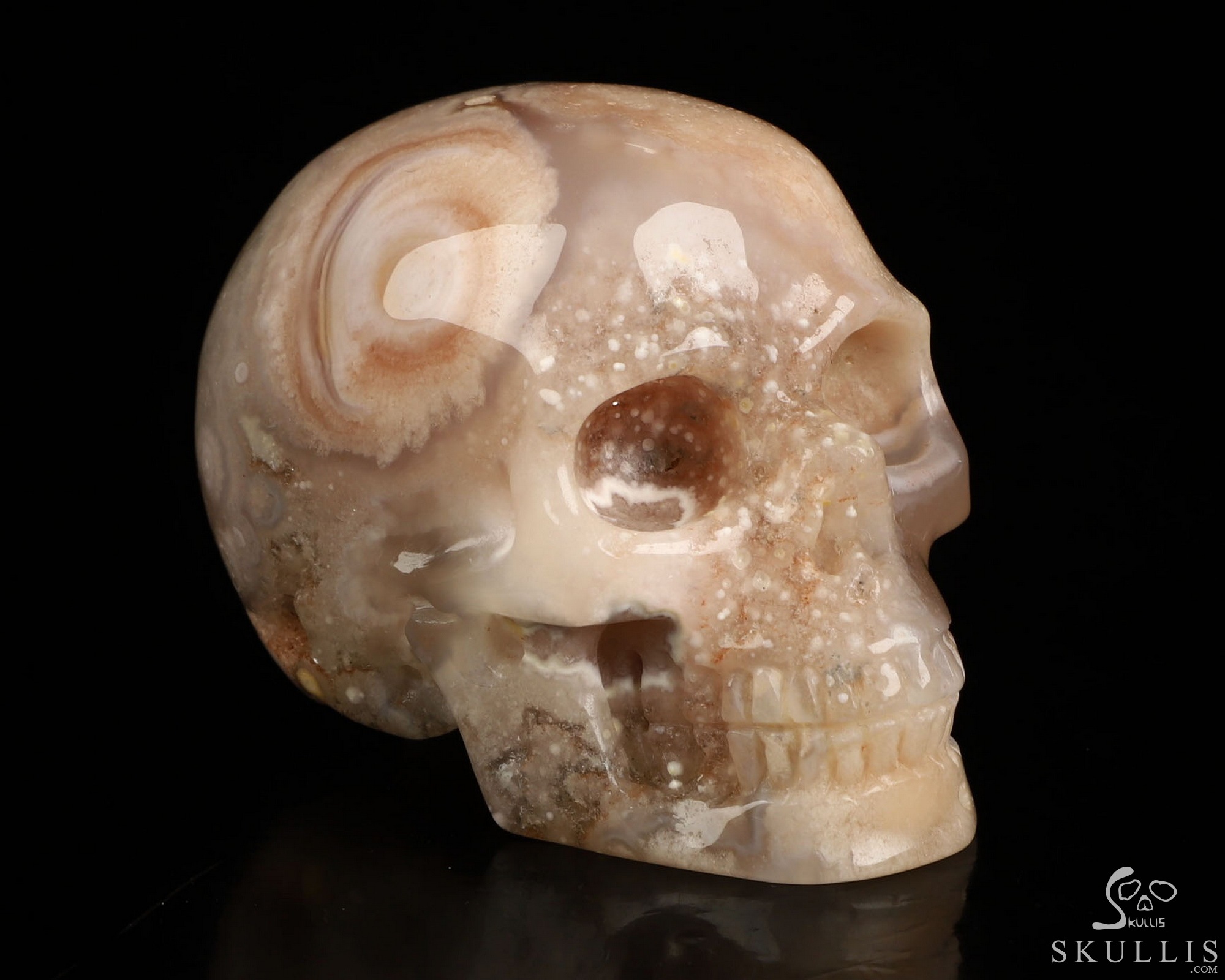 Gemstone 3.5" Sakura Agate Hand Carved Crystal Skull, Realistic, Crystal Healing