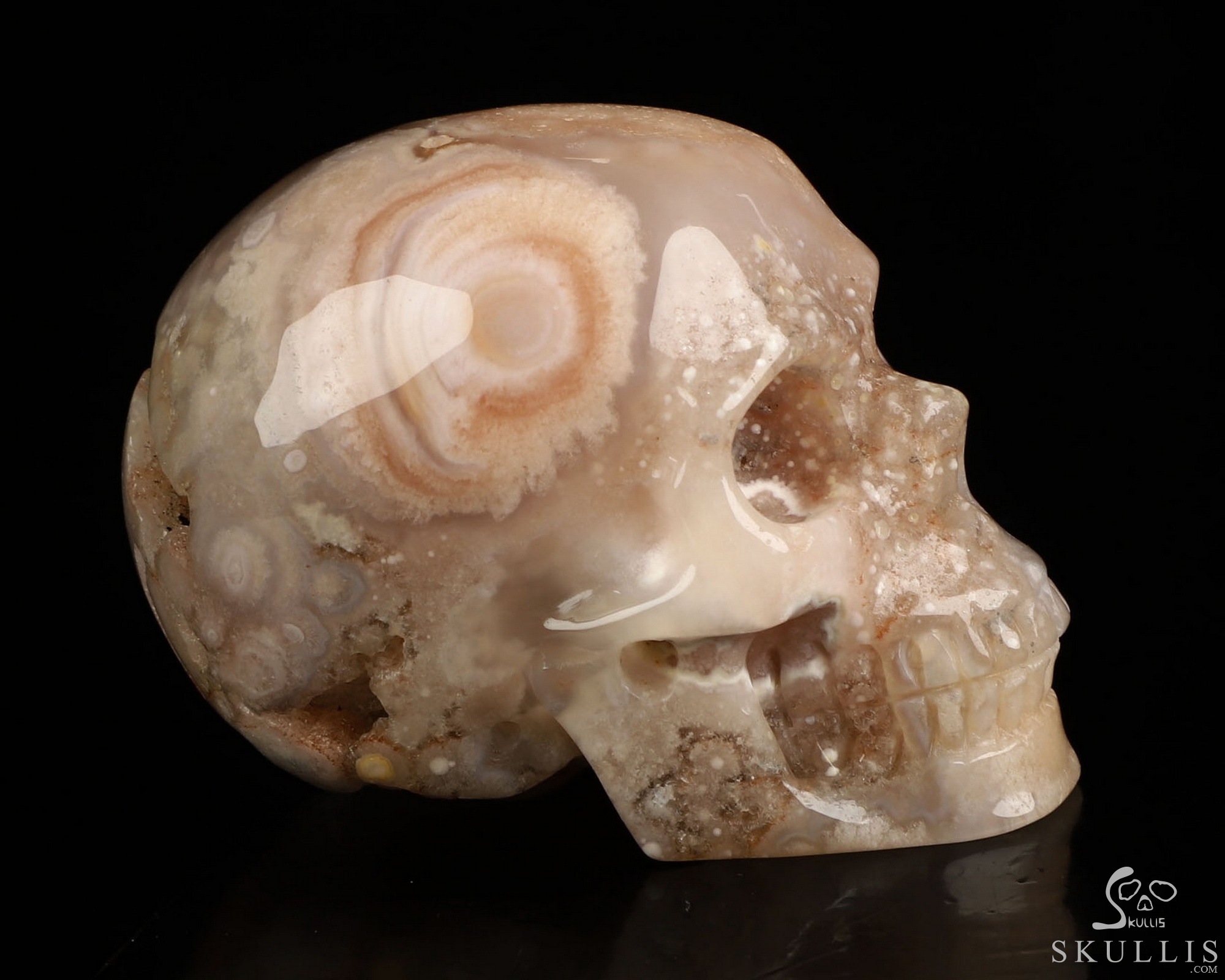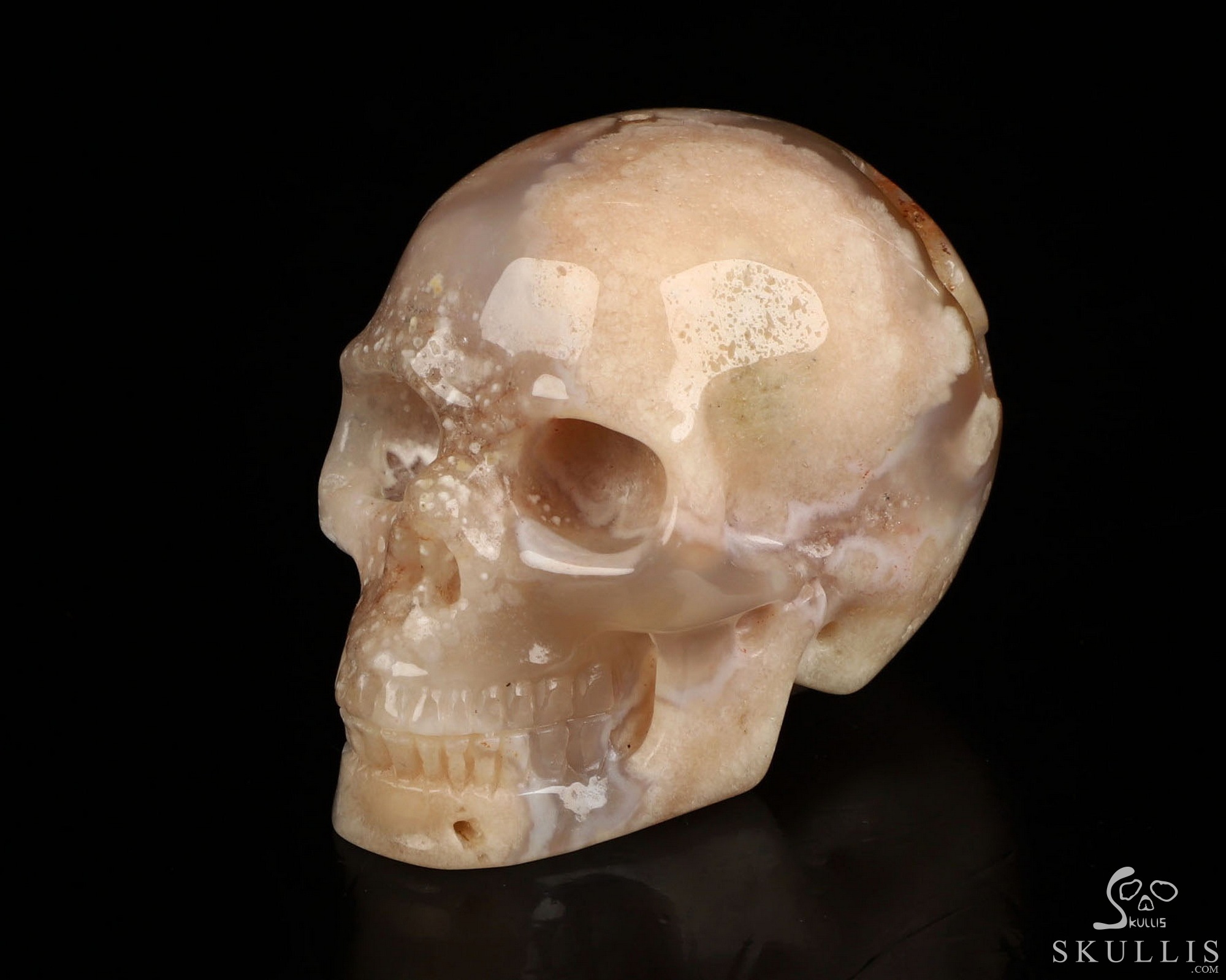 Gemstone Lifesized 6.8" Sakura Agate Hand Carved Crystal Skull, Realistic, Crystal Healing