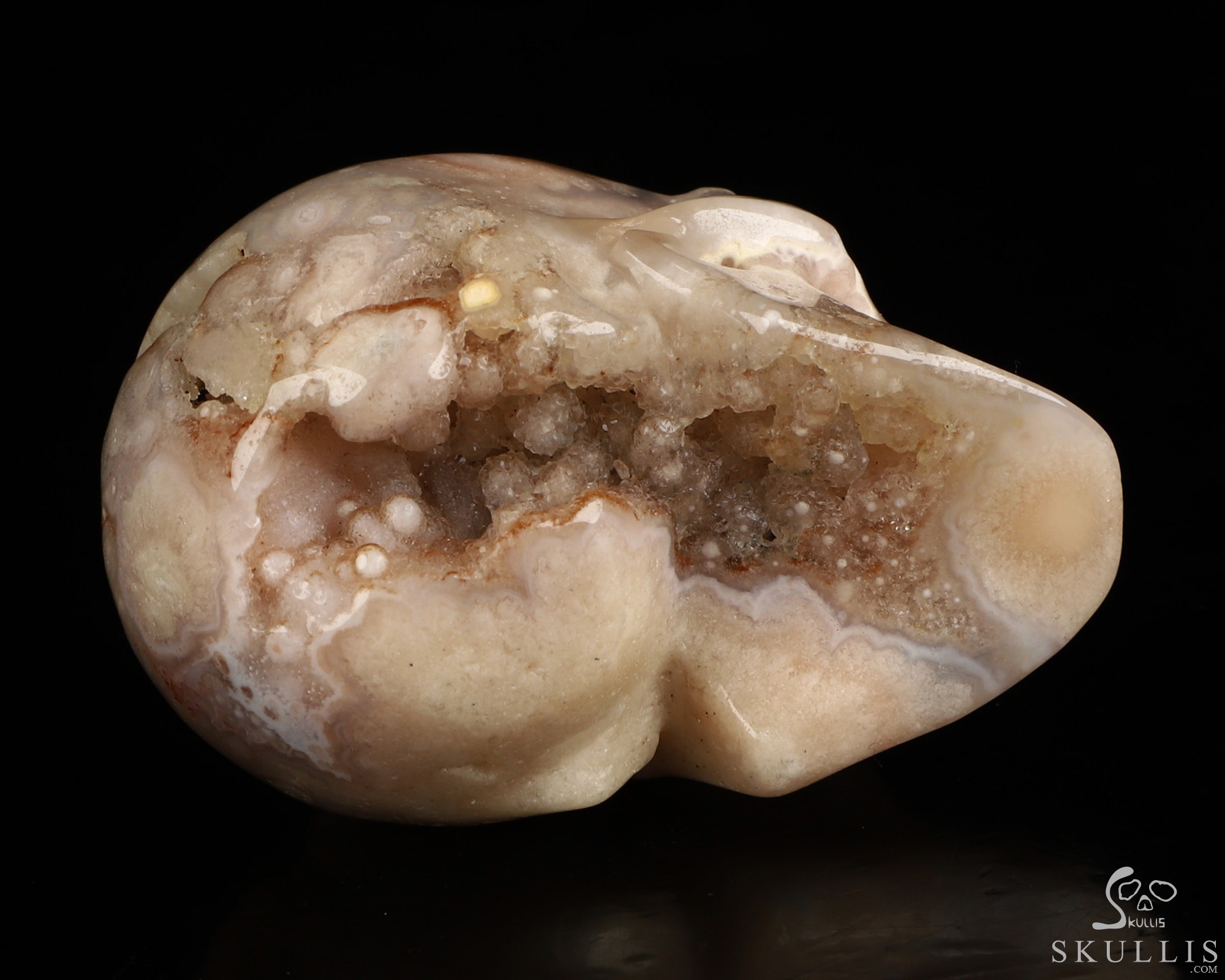 Amazing 5.2" Sakura Agate Carved Crystal Geode Skull, Crystal Healing