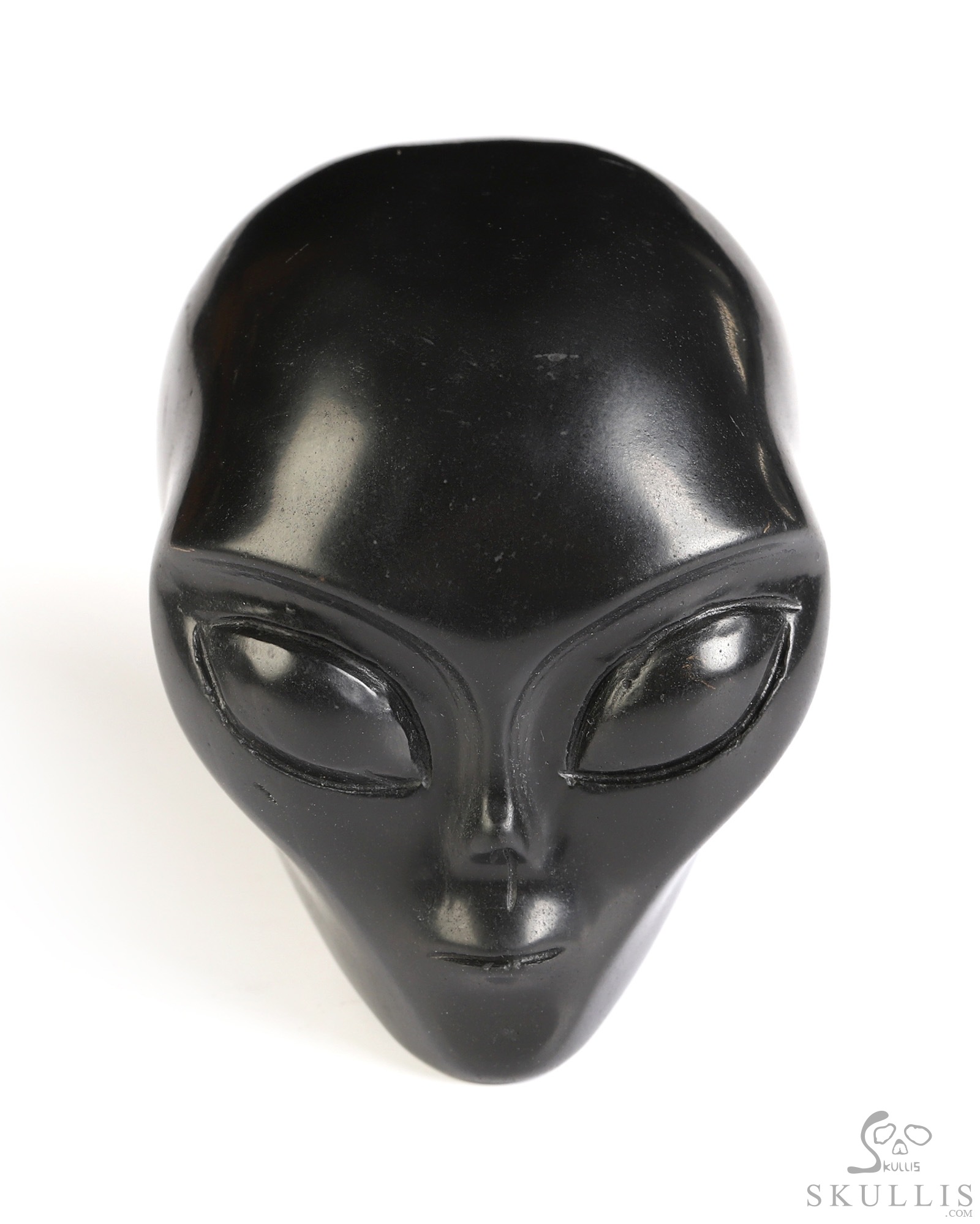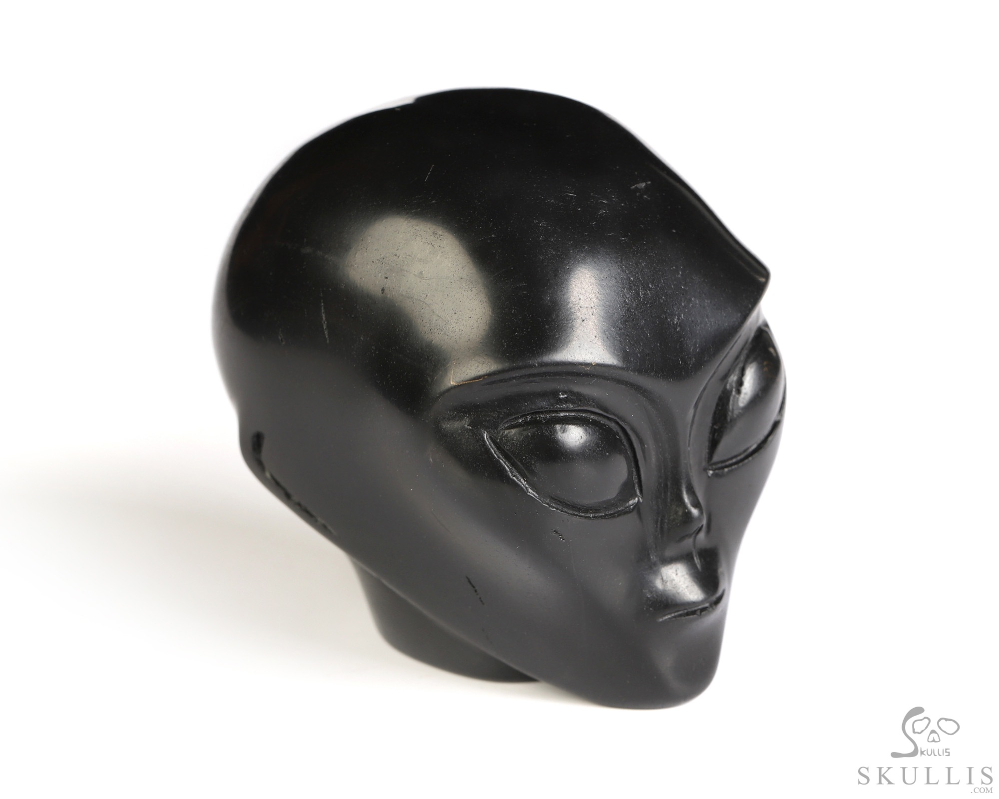 2.0" Shungite Star Being Female Alien Crystal Skull Companion, Hand Carved Gemstone Fine Art Sculpture, Reiki Healing Stone Statue
