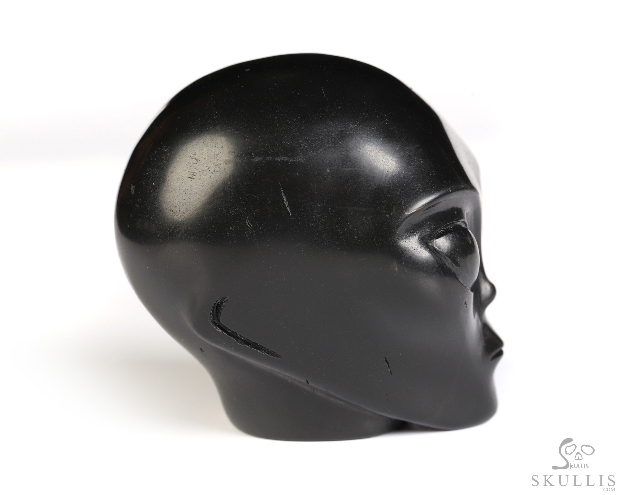5.1" Shungite Hand Carved Crystal Skull, Realistic, Crystal Healing